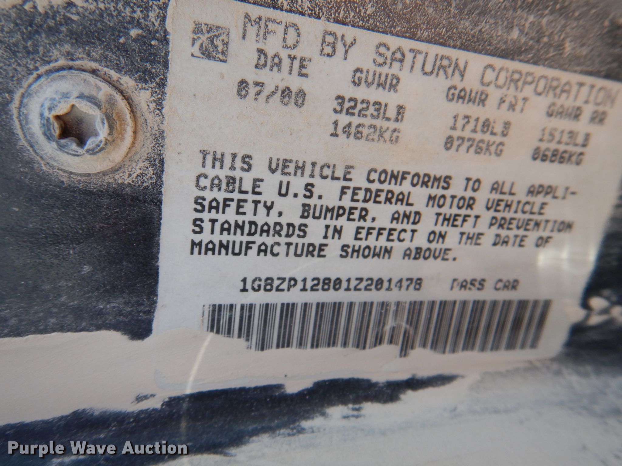 2001 Saturn SC. 170,159 miles on odometer. Engine Displacement: 1.9L L4 SOHC 8V , Cylinders: 4, Fuel type: Gas. Transmission Automatic. Interior AC, Heat, Power windows, Power locks. Tires Size: 185/65R14. Notes Dash warning indicator: ABS, Brake, Windshield chipped or cracked. Iowa title. 1G8ZP12801Z201478. Wiegert Disposal Inc.. 1025 Hwy 28. Martensdale, IA 50160