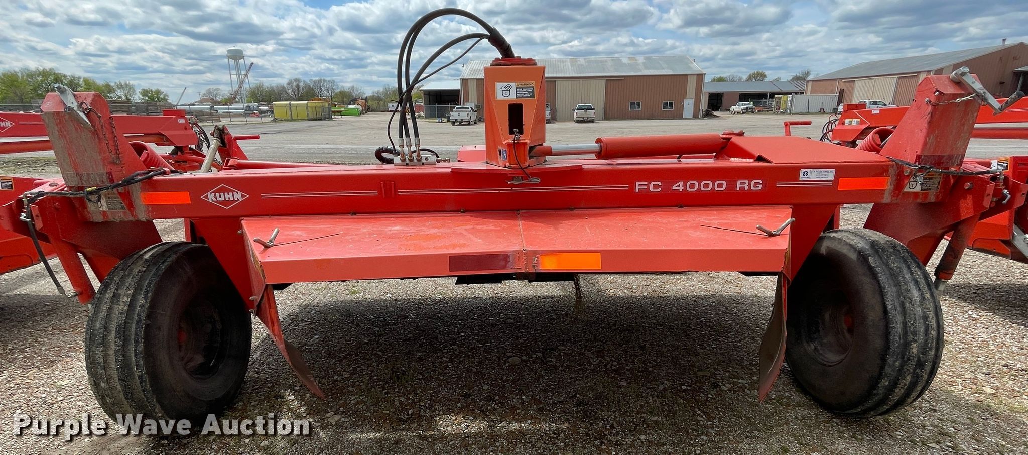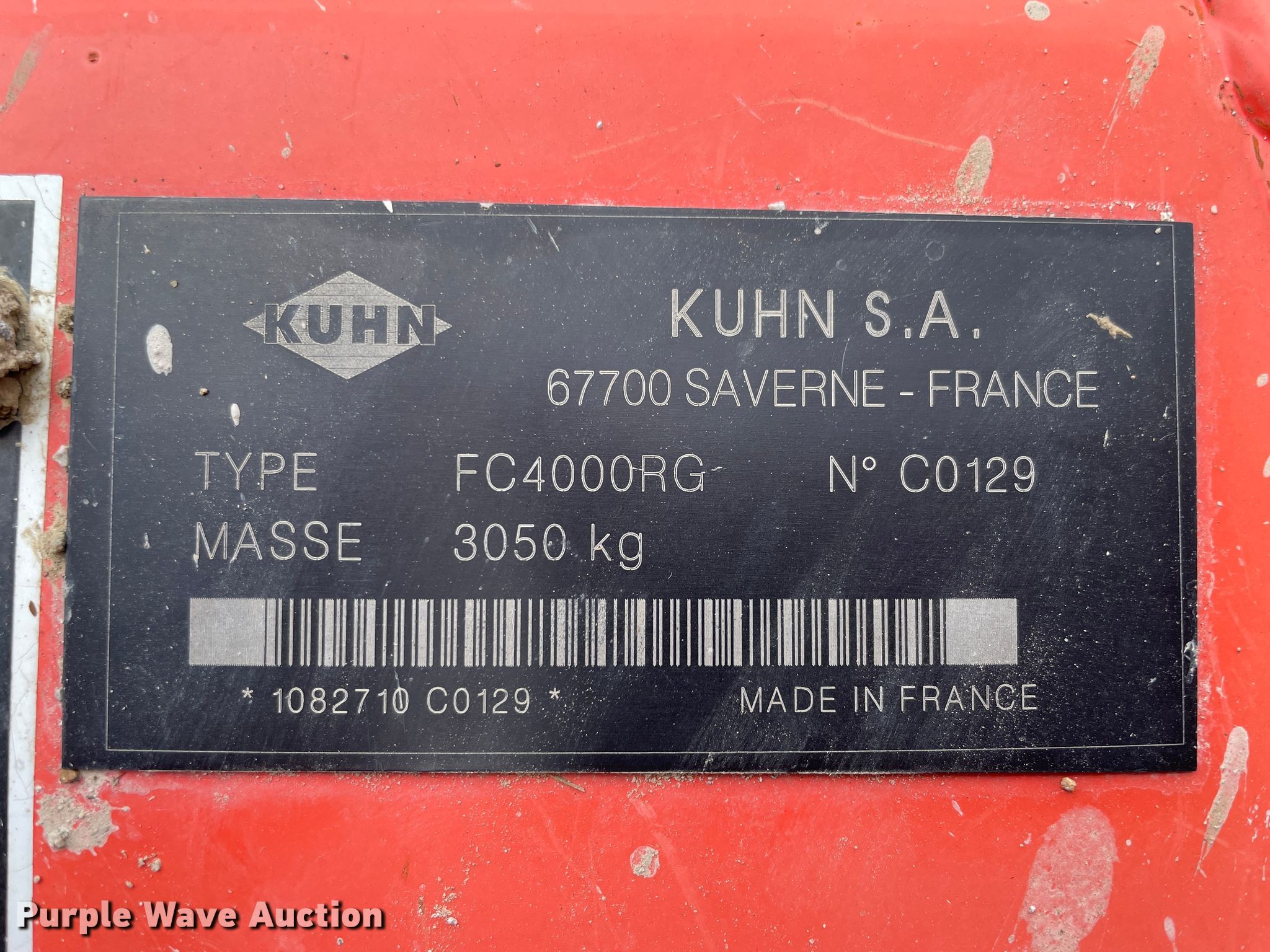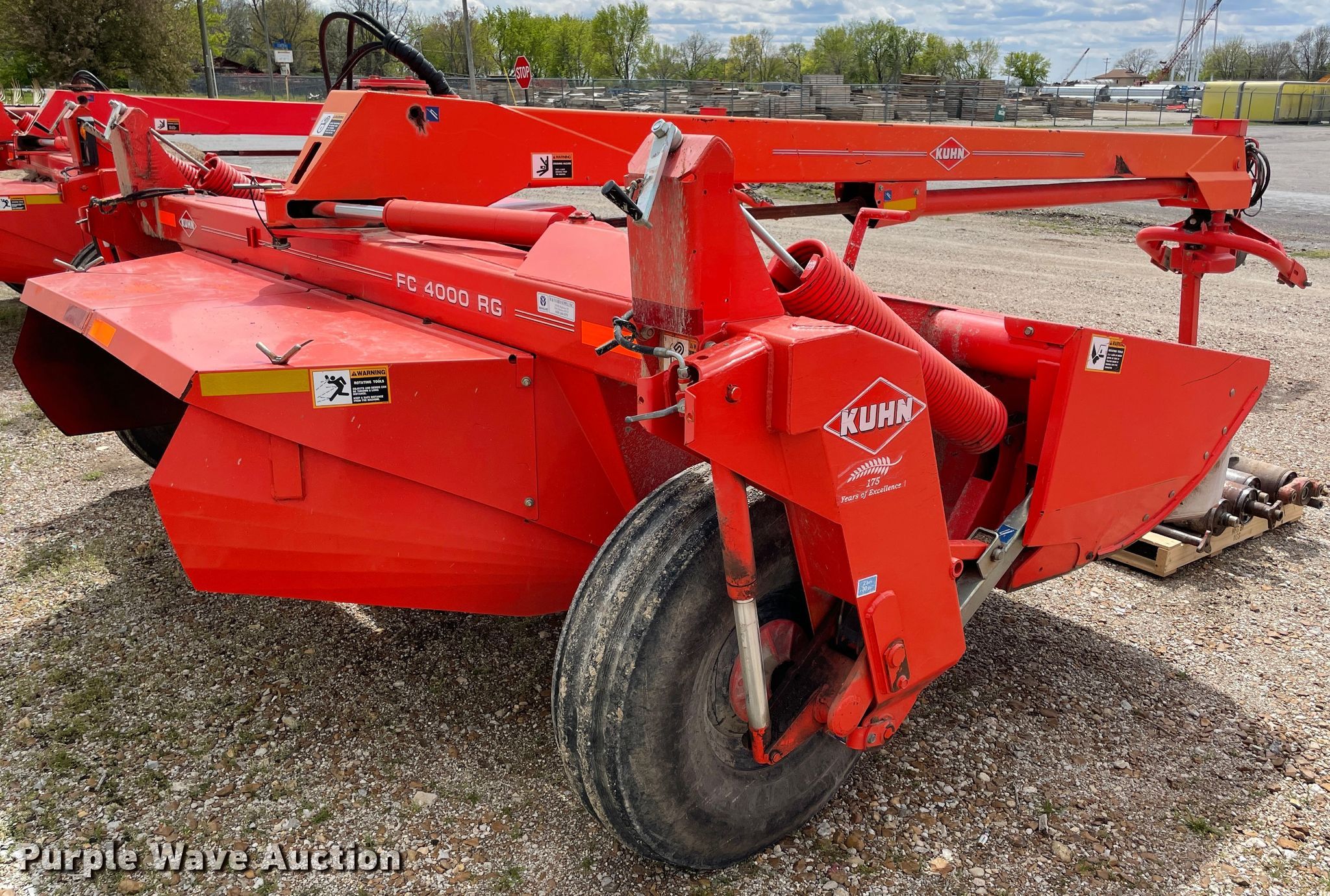 Purple Wave is selling a used Windrower Pull Type in Kansas. This item is a Kuhn FC4000RG disc mower with the following: 160" cutting width, 1000 PTO, Serial: C0129