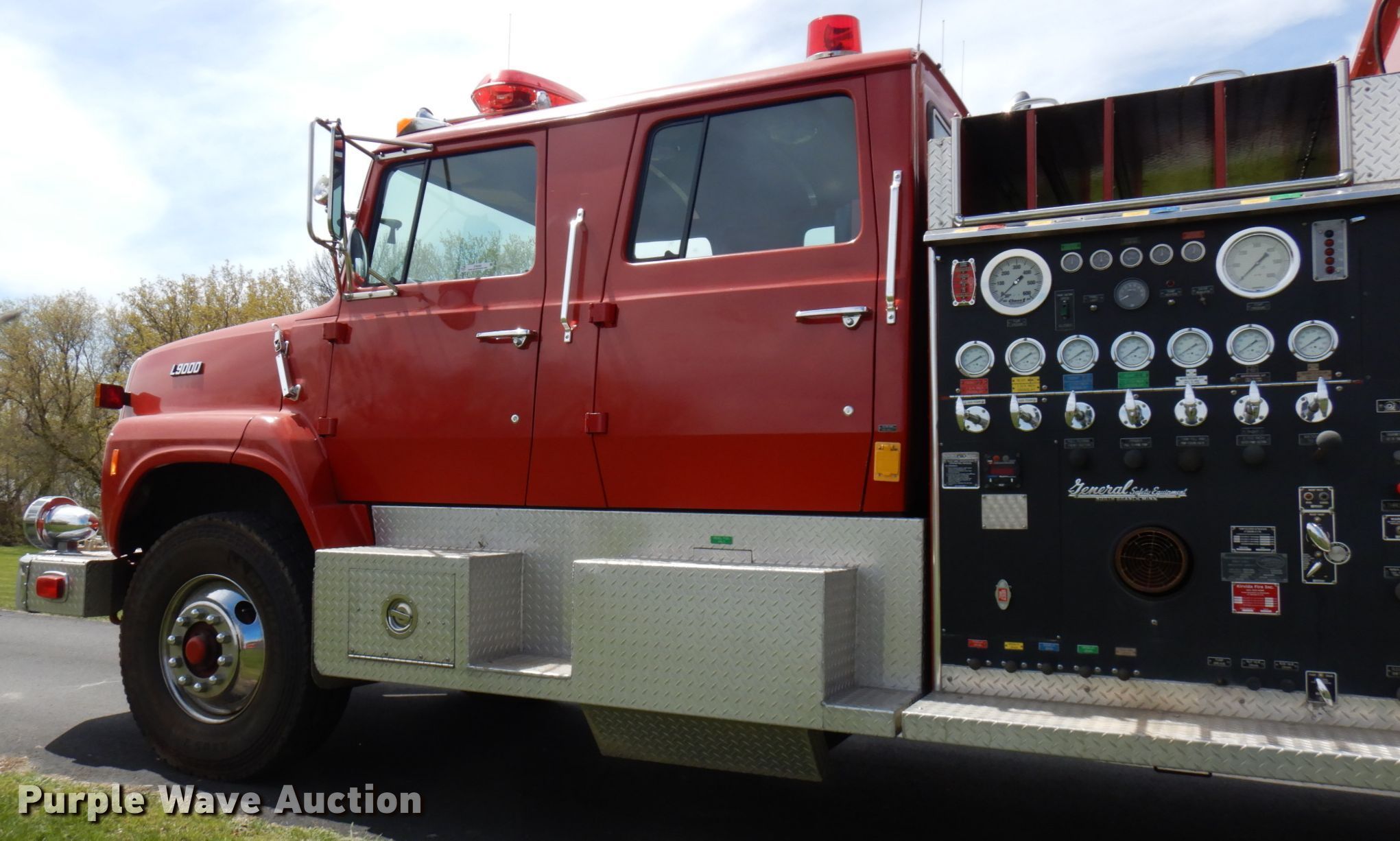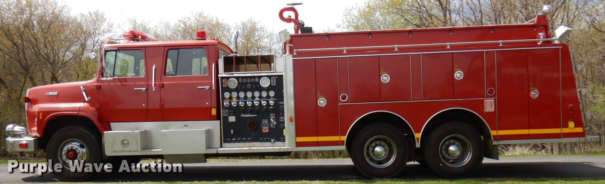 Purple Wave is selling a used Fire Truck or Emergency Vehicle in Minnesota. This item is a 1988 Ford L9000 pumper fire truck with the following: 48,050 miles on odometer, Engine hours: 578