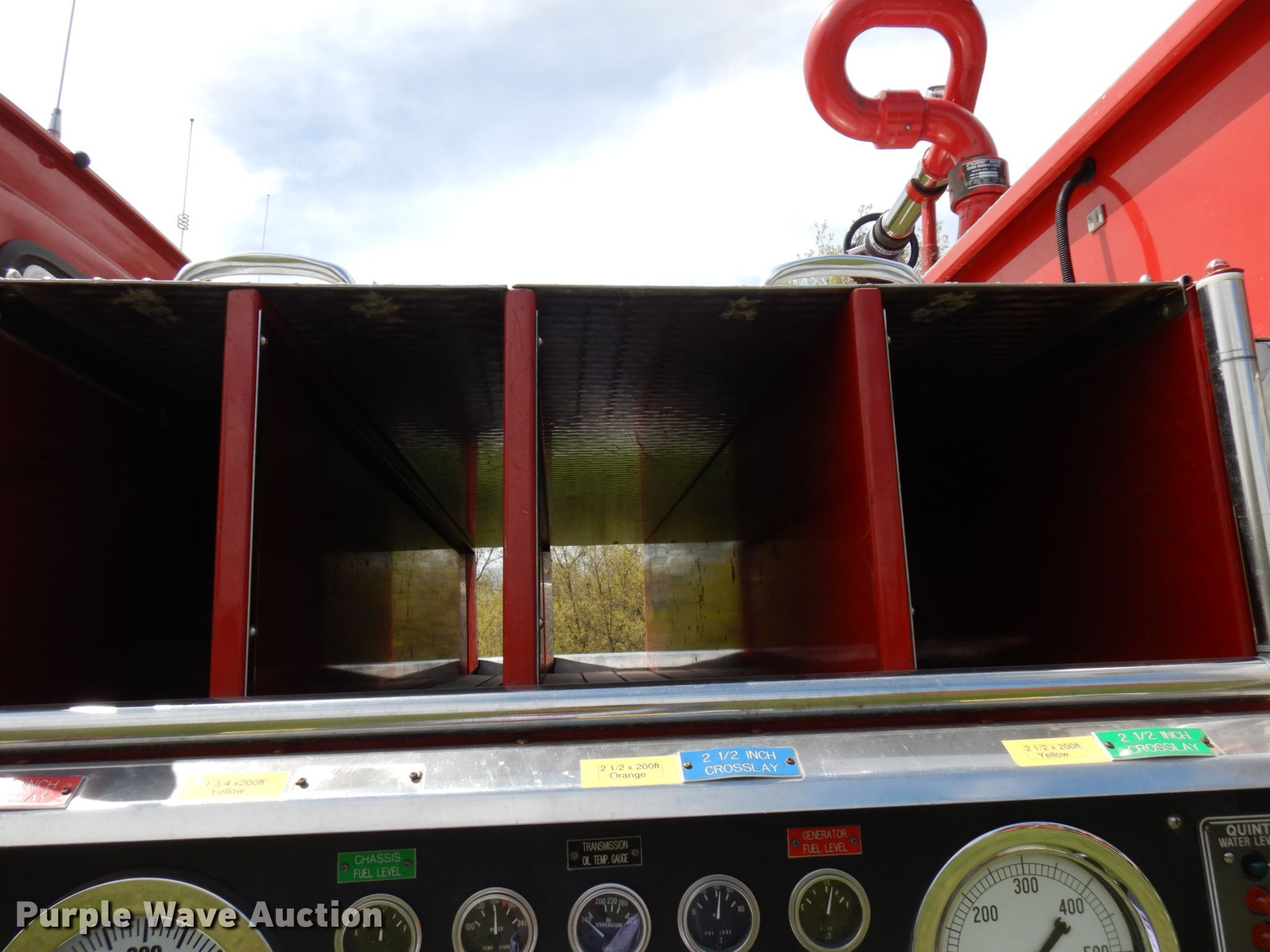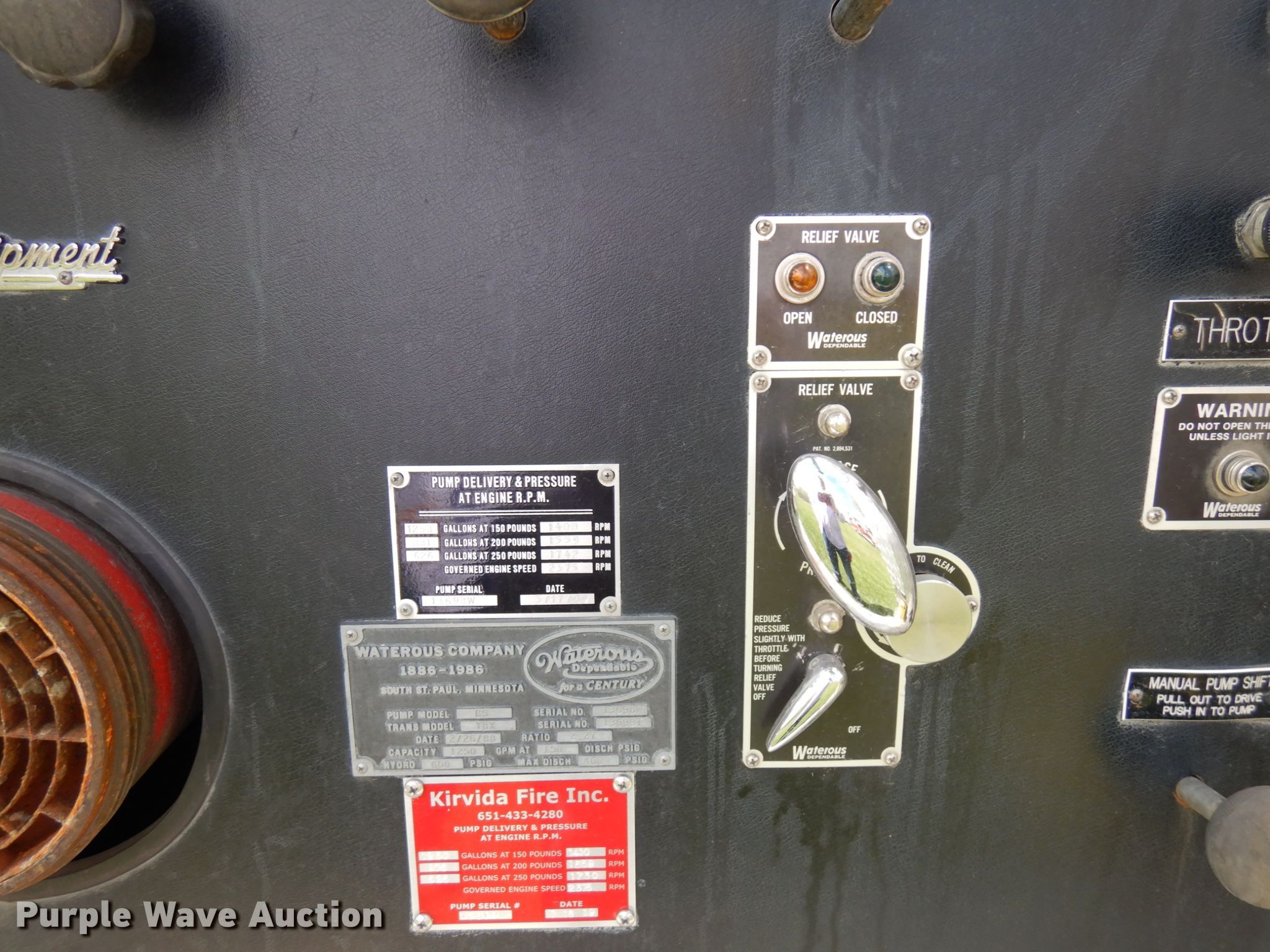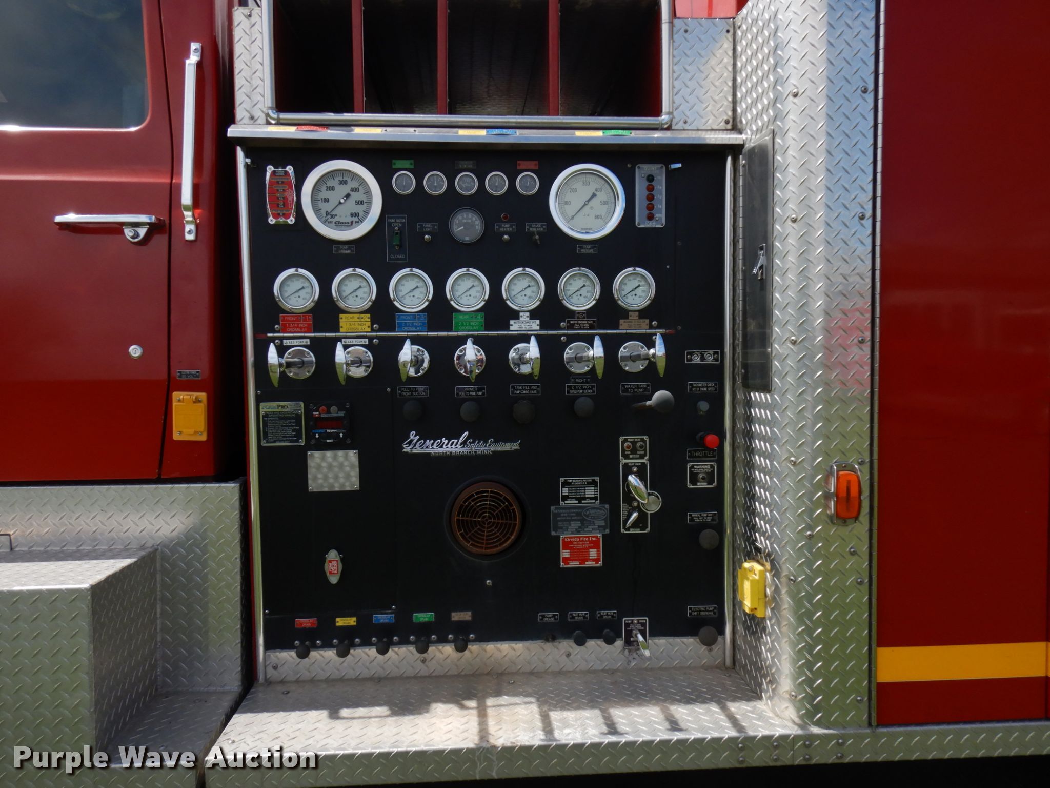 1988 Ford L9000 pumper fire truck. 48,050 miles on odometer, Engine hours: 578. Engine Cummins, Cylinders: 6, Fuel type: Diesel. Transmission Automatic. Chassis Axles: Tandem, Suspension: Spring over walking beam, Brakes: Air. Operational Fire truck Elevated deck gun, Pump 1,258 gpm, 2,000 gallon poly tank. Tires Front: 315/80R22.5, Rear: 11R22.5. Minnesota title. Seller is a Minnesota licensed motor vehicle dealer. The buyer may be required to pay sales tax and/or registration fees to the dealer prior to taking possession. Title will be assigned and distributed by the dealer. Please contact the seller for distribution questions. 1FDYY90W9JVA45667. 14203 230th St. Hutchinson, MN 55350