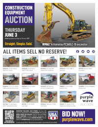 Bids over the amount of $10,000.00 are subject to Purple Wave's qualification process. Verification may include, but is not limited to, providing a bank letter of guarantee, credit references or credit card pre-authorization. Purple Wave may take any or all of these measures at any point during the auction. Purple Wave reserves the right to strike any Internet bid if the bidder refuses or fails to timely cooperate with Purple Wave's efforts to verify the bidder's qualification to bid. By registering to bid in this auction, you authorize all credit references, banks and credit reporting agencies to provide complete information about your credit to Purple Wave. For questions regarding Purple Wave's bid qualification process, please contact Gretchen Hedrick, Credit Specialist, at [email protected] or call 785.229.0361.