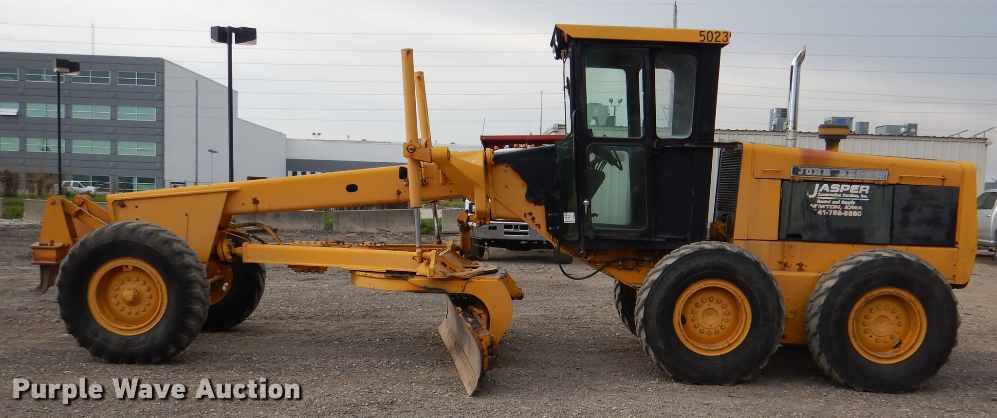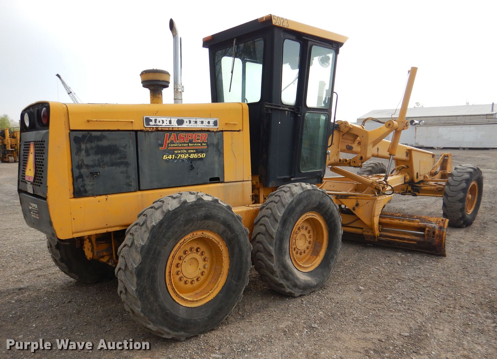 1990 John Deere 770 motor grader. Unknown hours on meter, Serial: 0034951. Engine John Deere, Serial: 6561TT0229295, Cylinders: 6, Fuel type: Diesel. Transmission Powershift, 8F - 8R. Chassis Differential lock. Operators station Enclosed cab, Heat, Hydraulic control valves: 8. Operational Moldboard: Tip control, Side shift, Moldboard total length: 12', Front mounted lift group, Scarifier Scarifier type: Front Mounted Teeth: 5.. Tires Size: 14.00-24. Jasper Construction Services. 928 N 19th Ave E. Newton, IA 50208