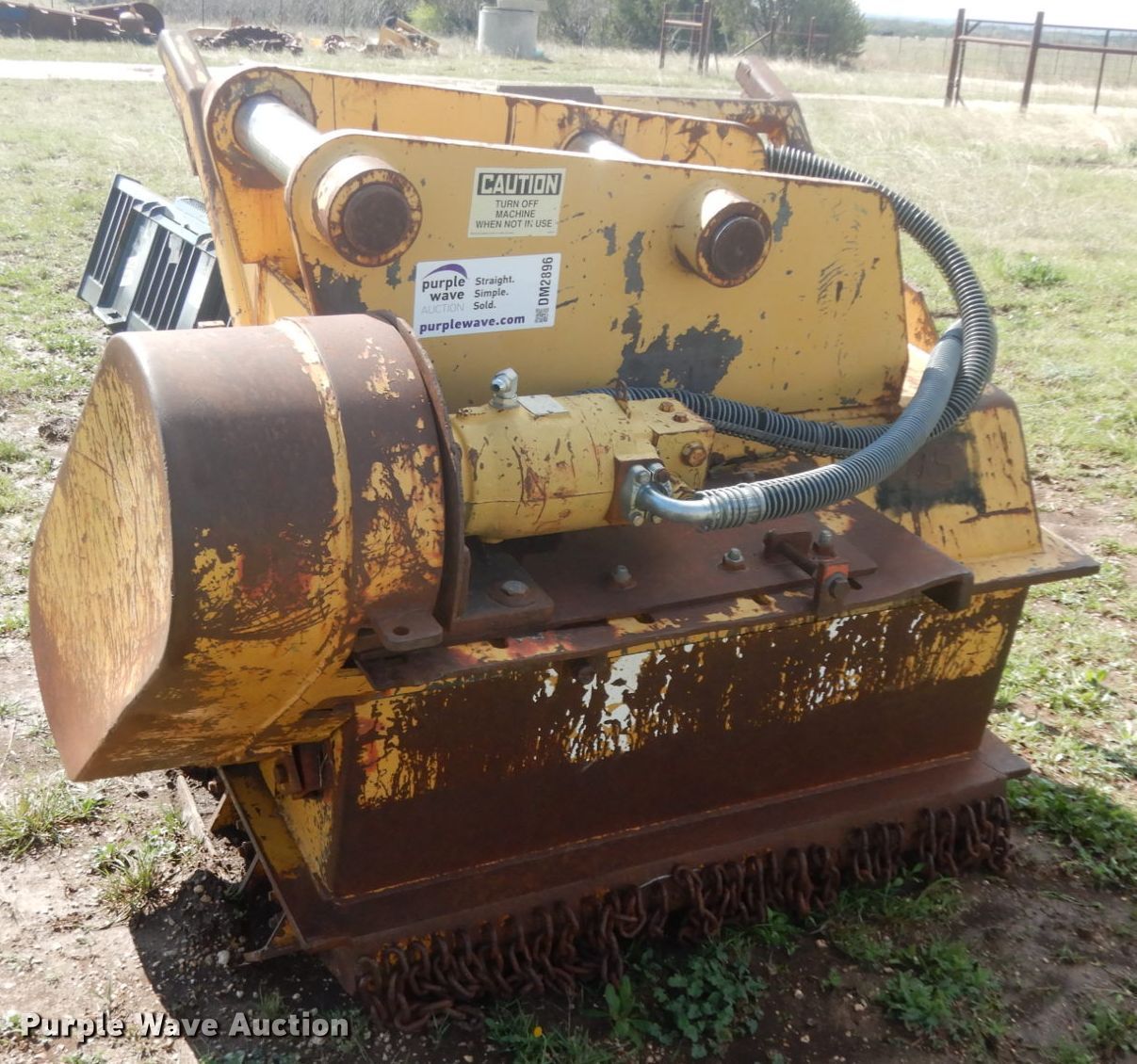 Purple Wave is selling a used Excavator Attach. in Texas. This item is a Brown Brontosaurus 42"W mulcher with the following: Cutting capacity: 10" diameter, Cutting blades: 40, 2.75" pin diameter, Unknown operating condition