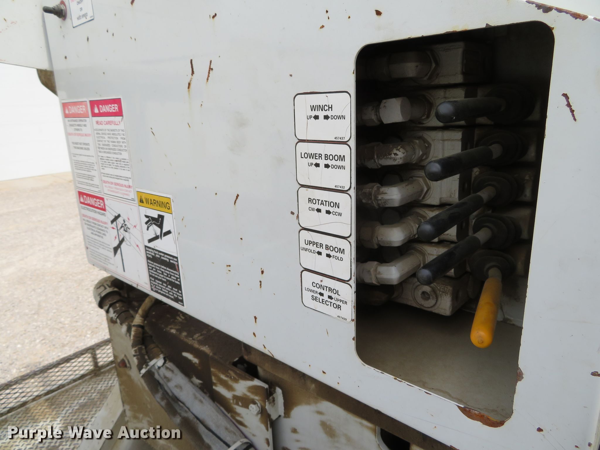 Purple Wave is selling a used Bucket Truck in Missouri. This item is a 2002 Freightliner FL80 bucket truck with the following: 56,502 miles on odometer, Engine hours: 5,600, Unit #: 42