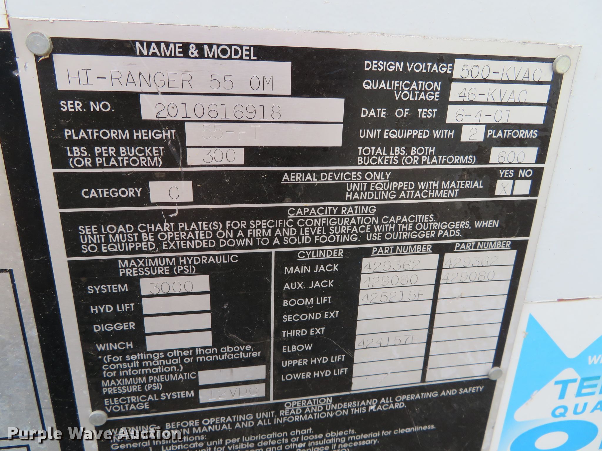 - 2001 Terex Hi-Ranger 55 0M