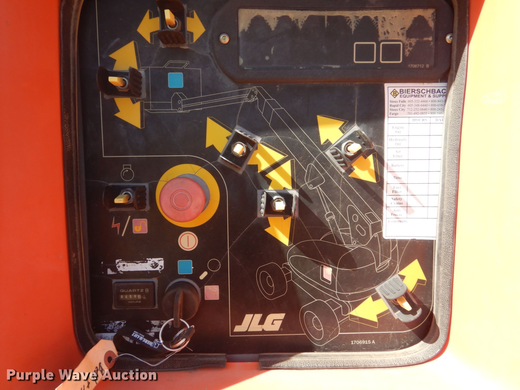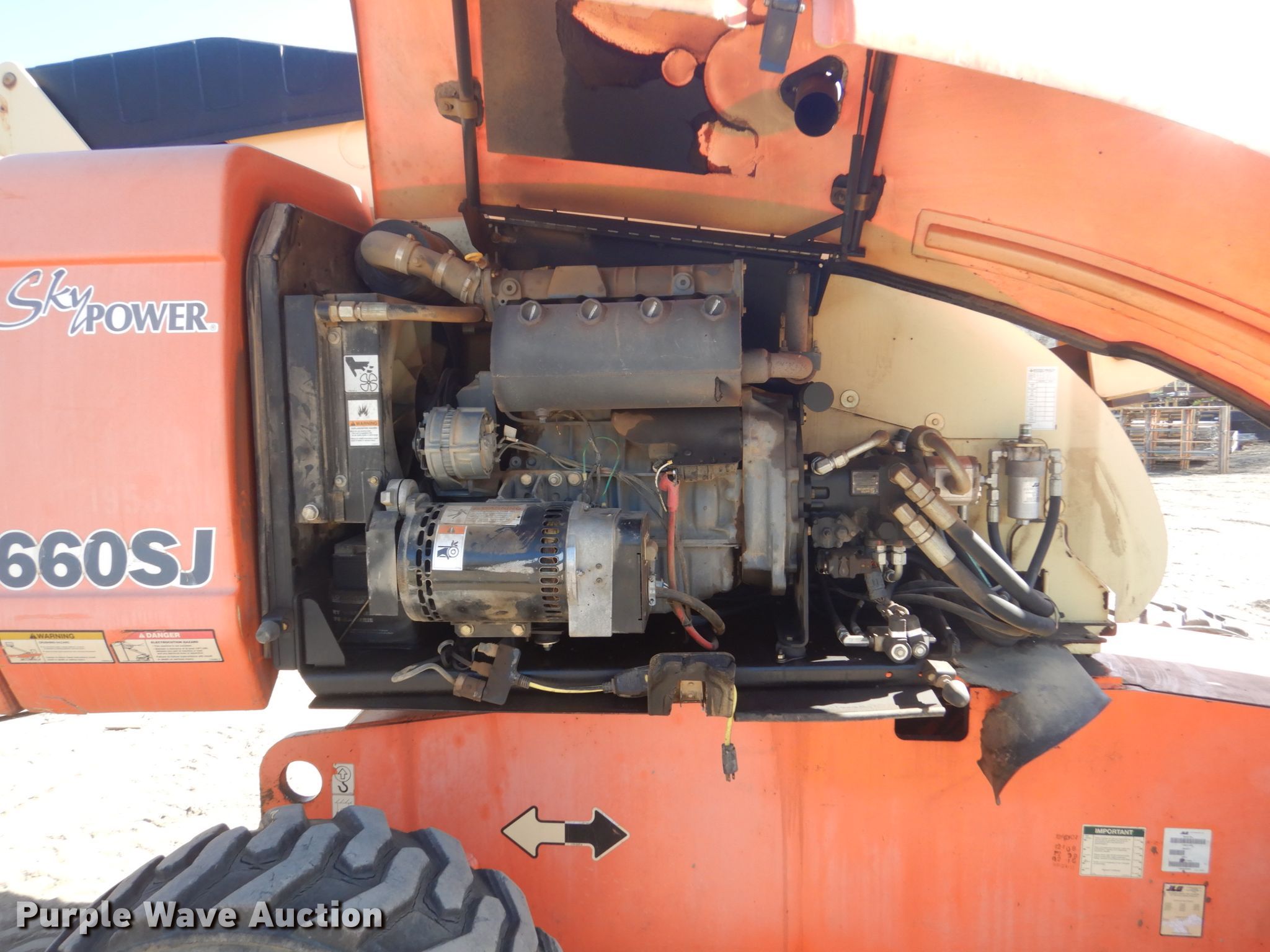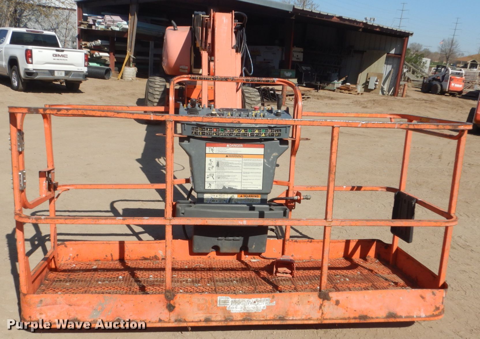 2008 JLG 660SJ boom lift. 8,459 hours on meter, Serial: 0300121460. Engine Cylinders: 4, Fuel type: Diesel. Chassis All wheel drive. Operational Rough terrain, Hydraulic leveling, Platform: 96" L x 35" W, AC power outlet, Air outlet, Controls: Platform, Ground, Platform rotation: Hydraulic, Safety alarm. Tires Tire size: 15-19.5. Notes Hydraulic leaks. Beck & Hofer Construction. 618 E Maple St. Sioux Falls, SD 57104