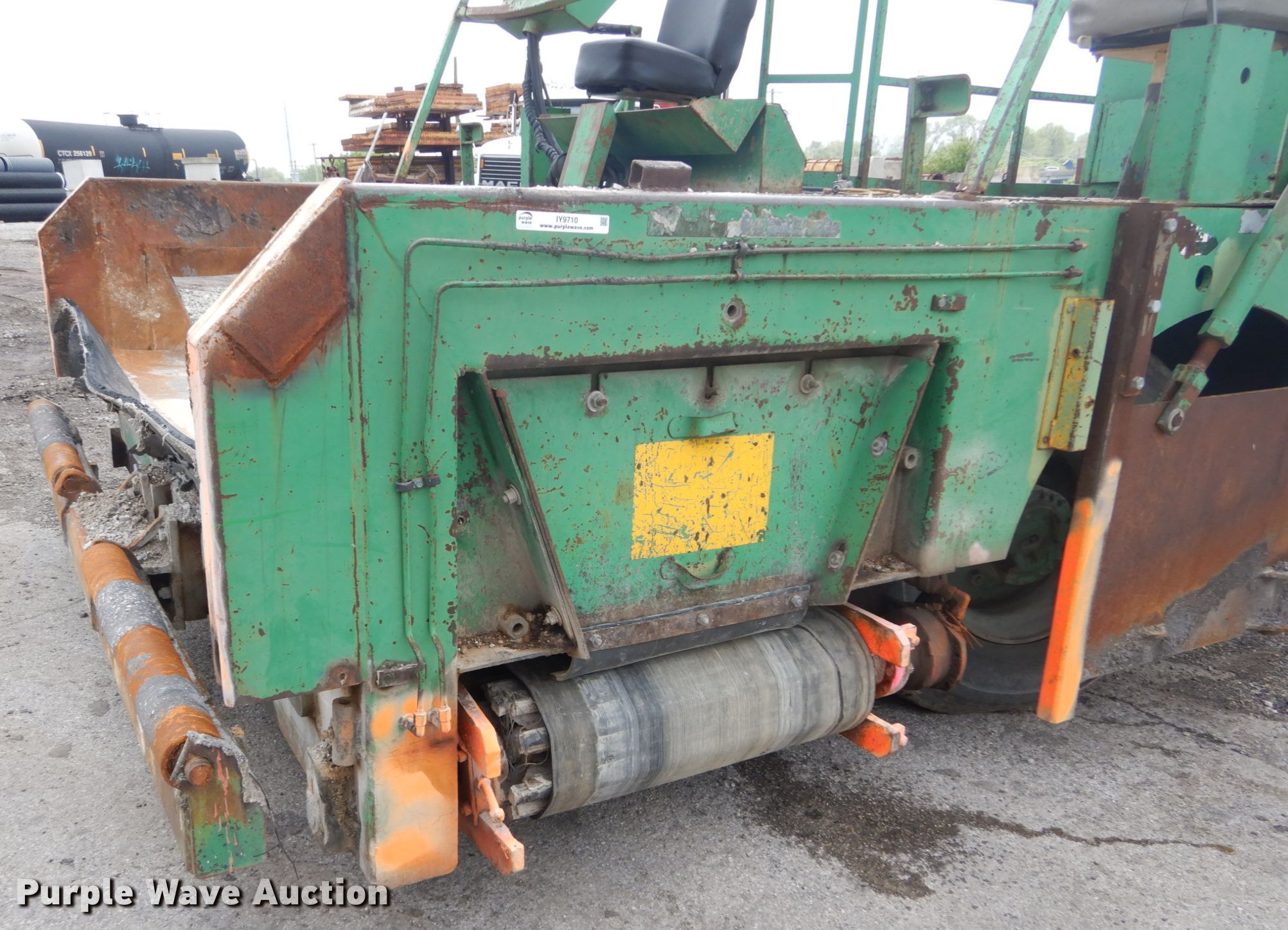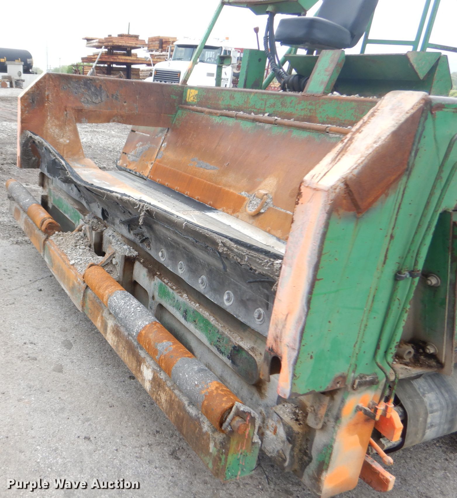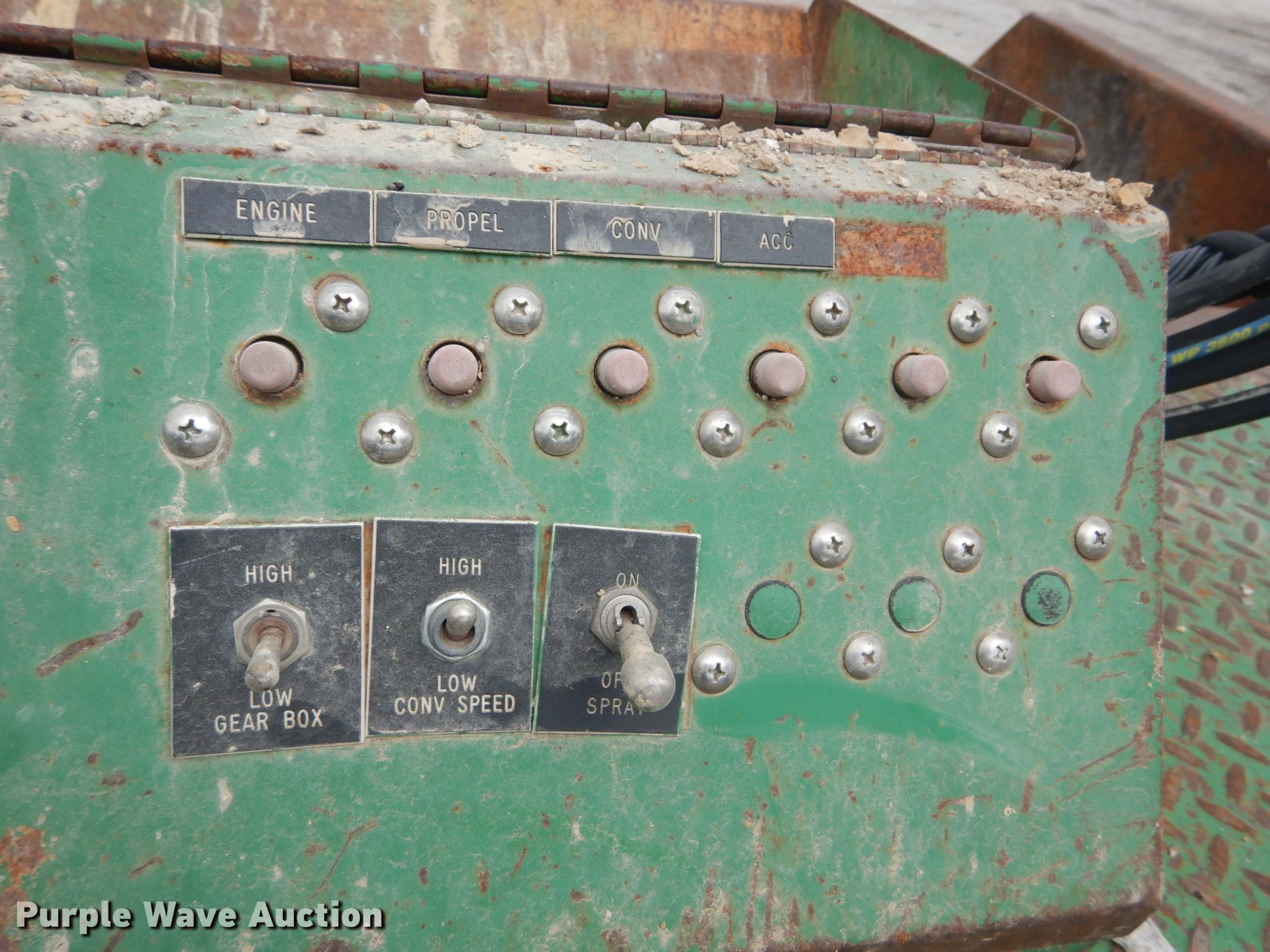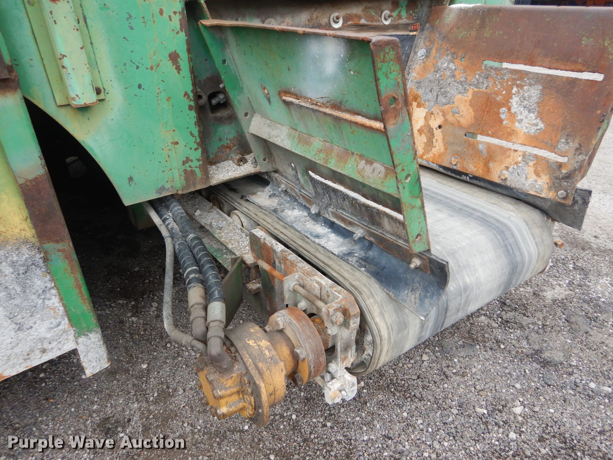 1990 Barber Greene BG750 road widener. 9,570 hours on meter, Serial: BG750X137, Unit #: 475230. Engine John Deere 6059T, Cylinders: 6, Fuel type: Diesel, HP: 155. Transmission Hydrostatic. Operational Laydown width: 1' to 14', Extensions, Front spread hopper width: 9', Material conveyor Width: 30", Grade and slope controls, 12" blade end strike off, 24" blade end strike off, 36" blade end strike off, (2) 72" blade end strike off. Tires Size: 425/65R22.5. Notes Dead battery, Serial BG750X137. Lionmark Construction Companies. 1620 Woodson Rd. Saint Louis, MO 63114
