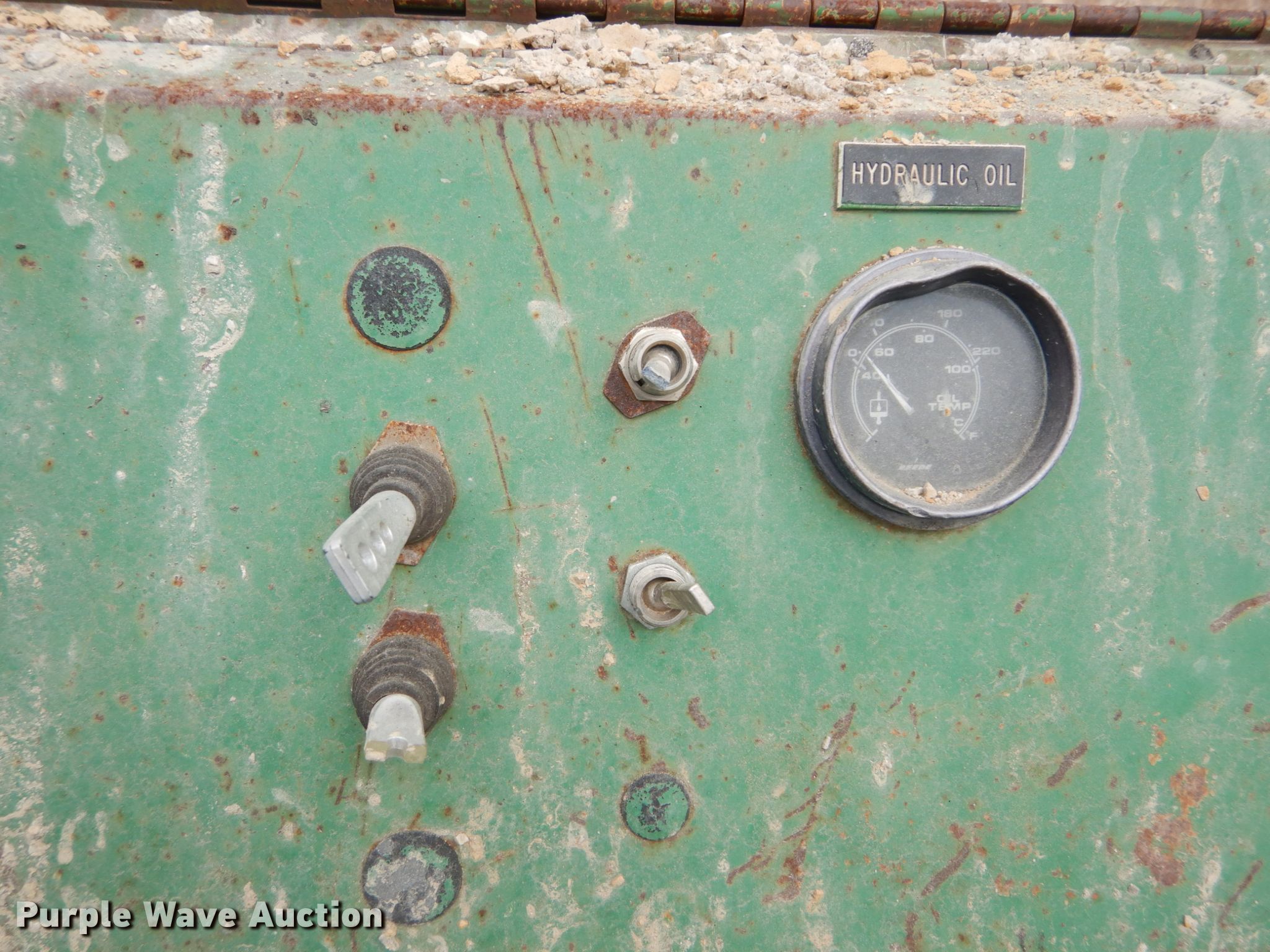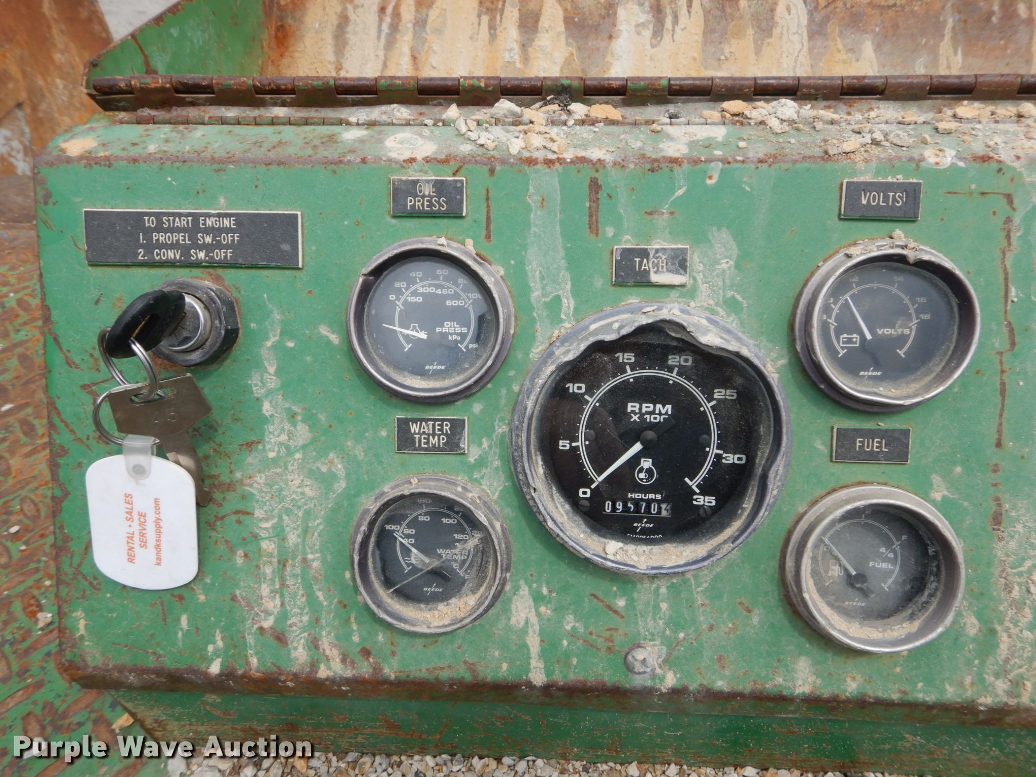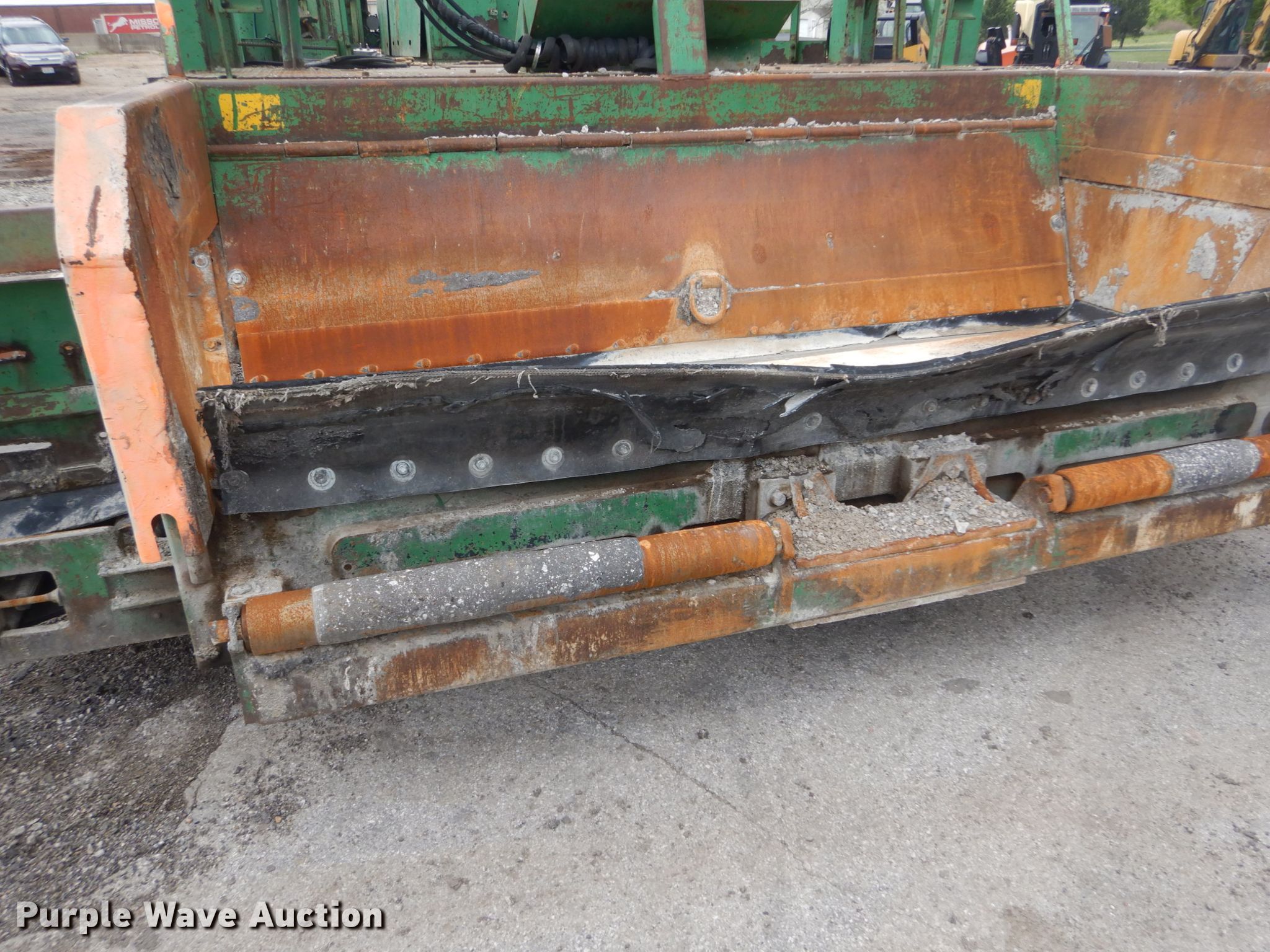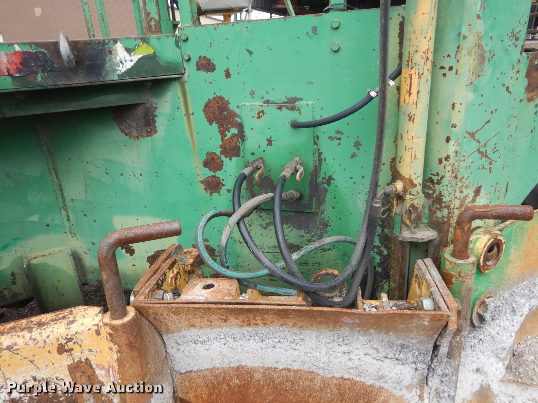 1990 Barber Greene BG750 road widener. 9,570 hours on meter, Serial: BG750X137, Unit #: 475230. Engine John Deere 6059T, Cylinders: 6, Fuel type: Diesel, HP: 155. Transmission Hydrostatic. Operational Laydown width: 1' to 14', Extensions, Front spread hopper width: 9', Material conveyor Width: 30", Grade and slope controls, 12" blade end strike off, 24" blade end strike off, 36" blade end strike off, (2) 72" blade end strike off. Tires Size: 425/65R22.5. Notes Dead battery, Serial BG750X137. Lionmark Construction Companies. 1620 Woodson Rd. Saint Louis, MO 63114