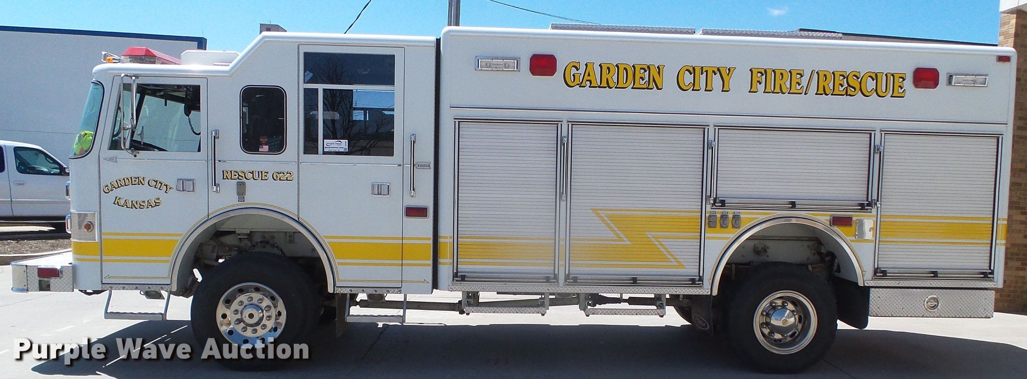 Purple Wave is selling a used Fire Truck or Emergency Vehicle in Kansas. This item is a 1997 Pierce rescue vehicle with the following: 58,923 miles on odometer, Engine hours: 5,211, Unit #: 622