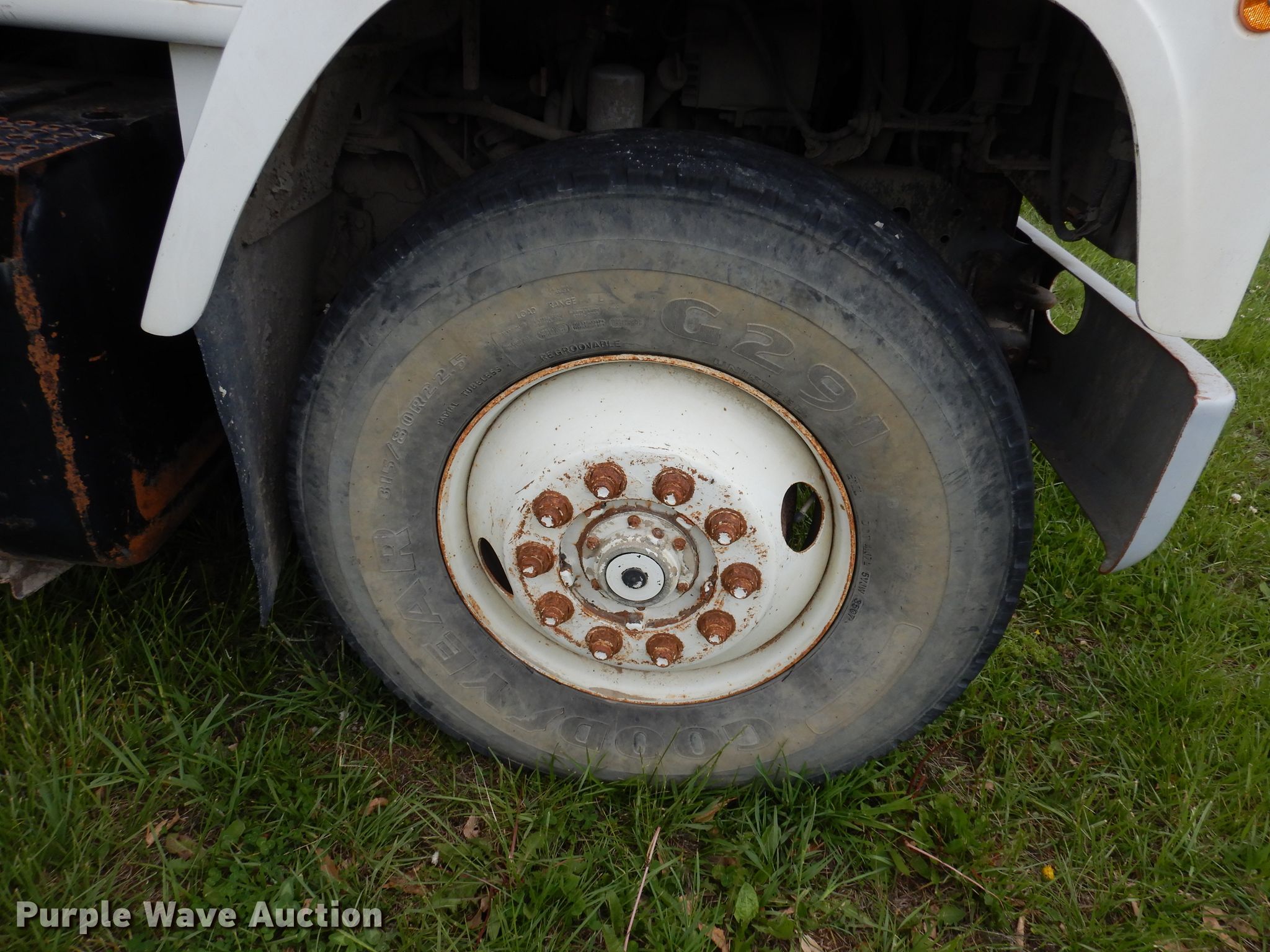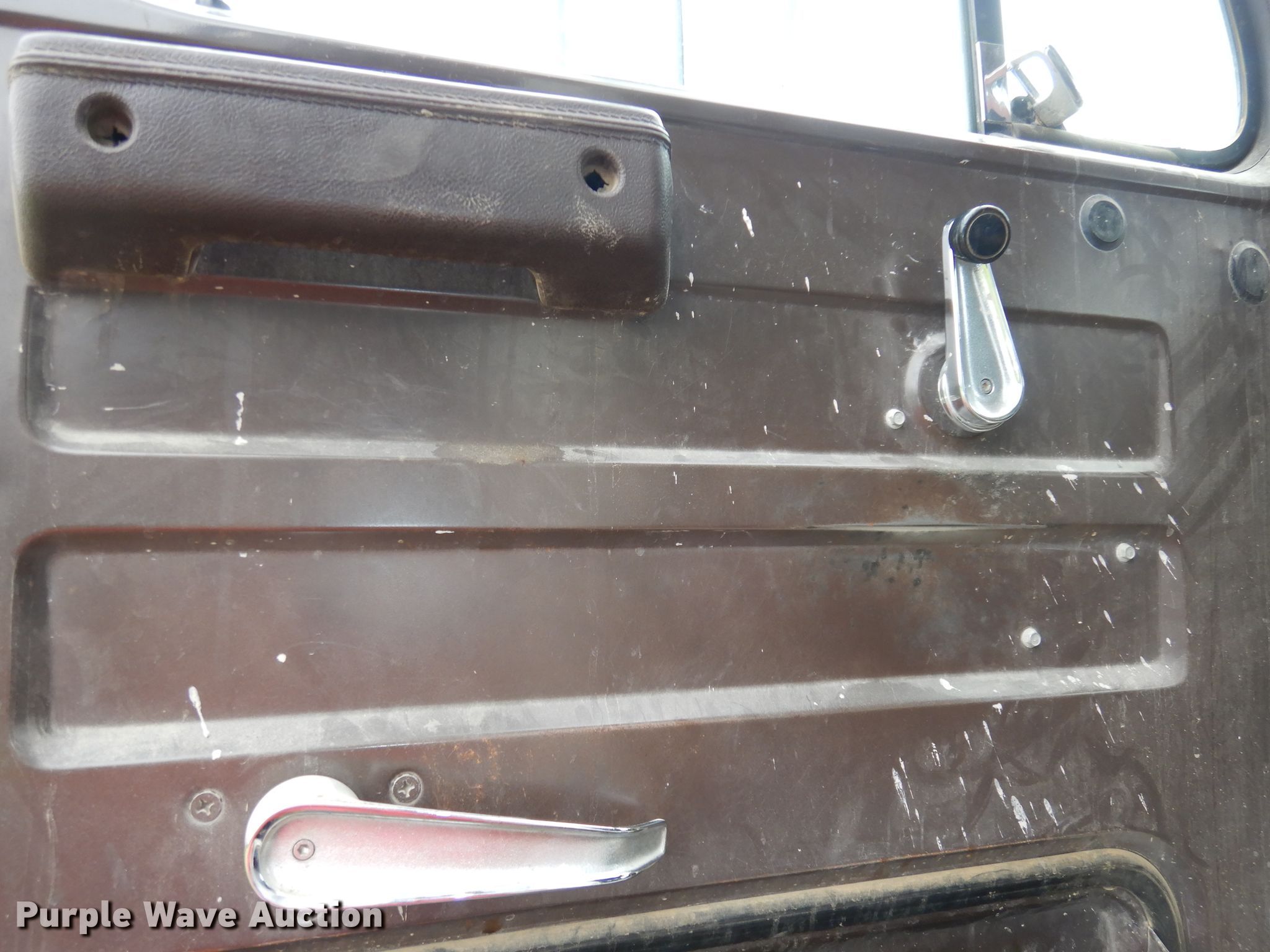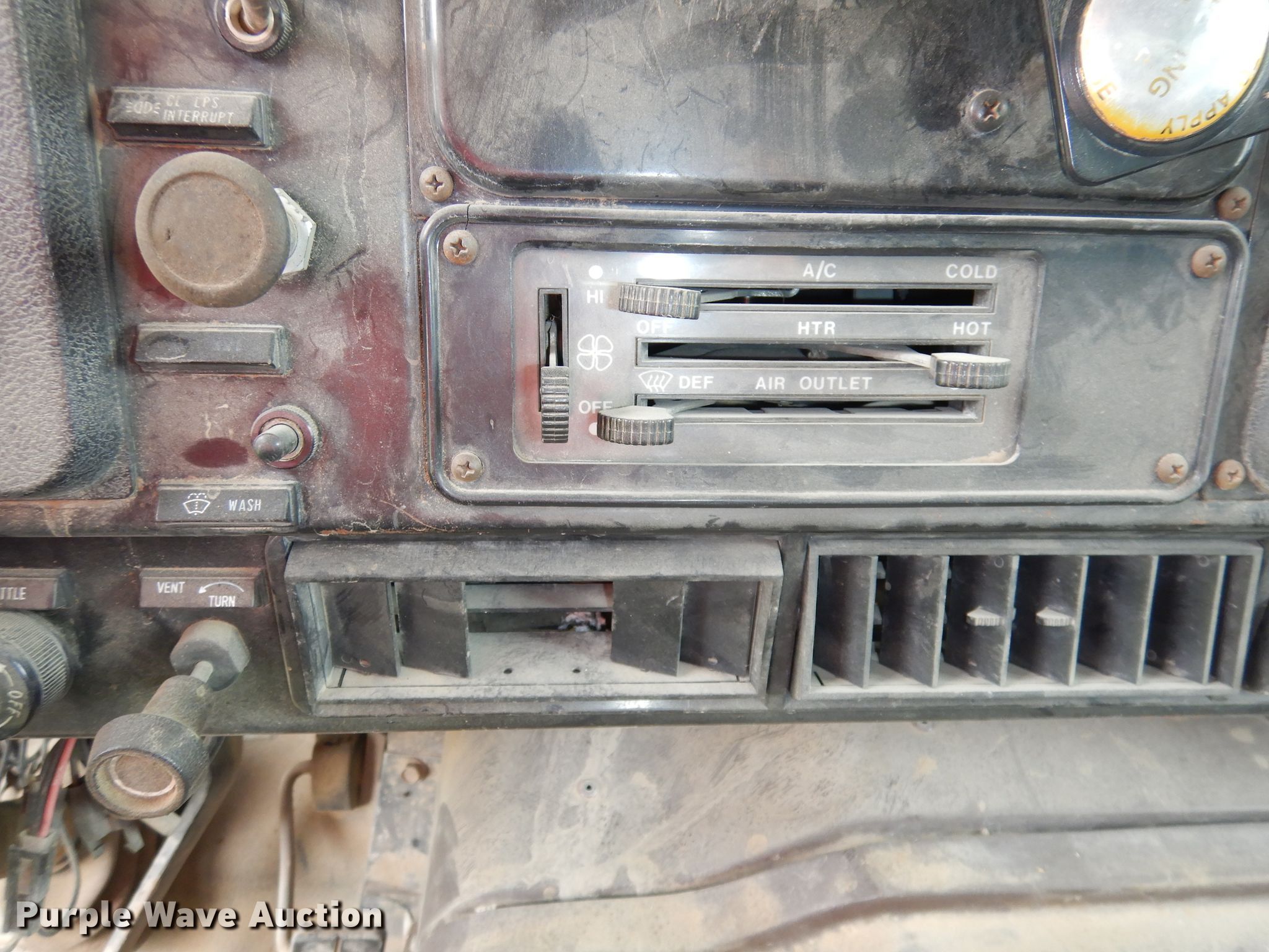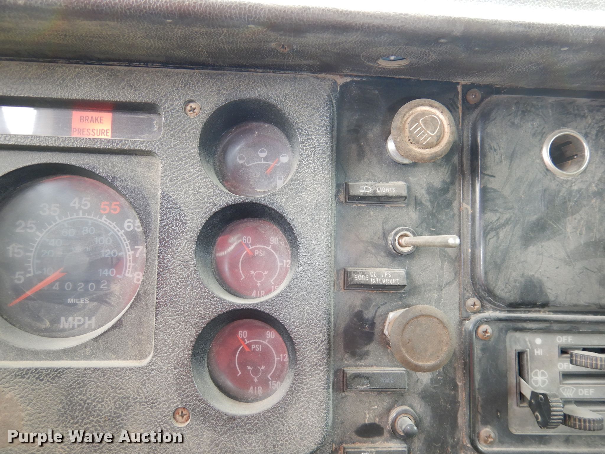 1988 International F2375 dump truck. 140,202 miles on odometer. Engine Cummins L10, Displacement: 10.0L, Cylinders: 6, Fuel type: Diesel. Transmission Eaton Fuller Road Ranger, Manual, Speed: 9. Chassis Axles: Tandem, Suspension: Spring, Brakes: Air. Interior AC, Heat, Heated mirrors. Operational Dump bed Galion 502F-2, 16' L x 96" W, Side height: 40", Side board height: 12", Bed type: Steel, Roll tarp, Ram: Single , End gate: Air operated. Tires Front: 315/80R22.5, Rear: 11R22.5. Notes Non-operational passenger door latch, Windshield chipped or cracked. Kansas title. 1HTZEGFRXJH572349. Atchison, KS 66002