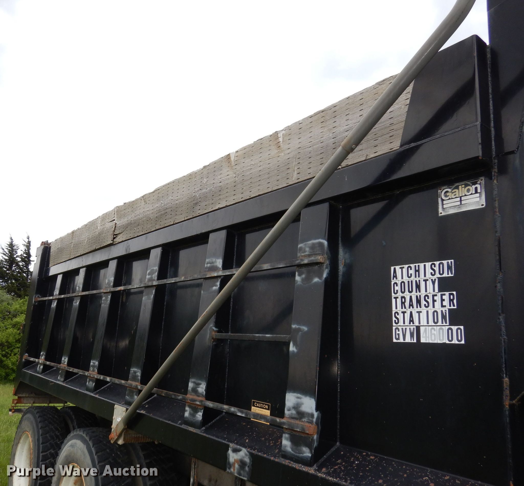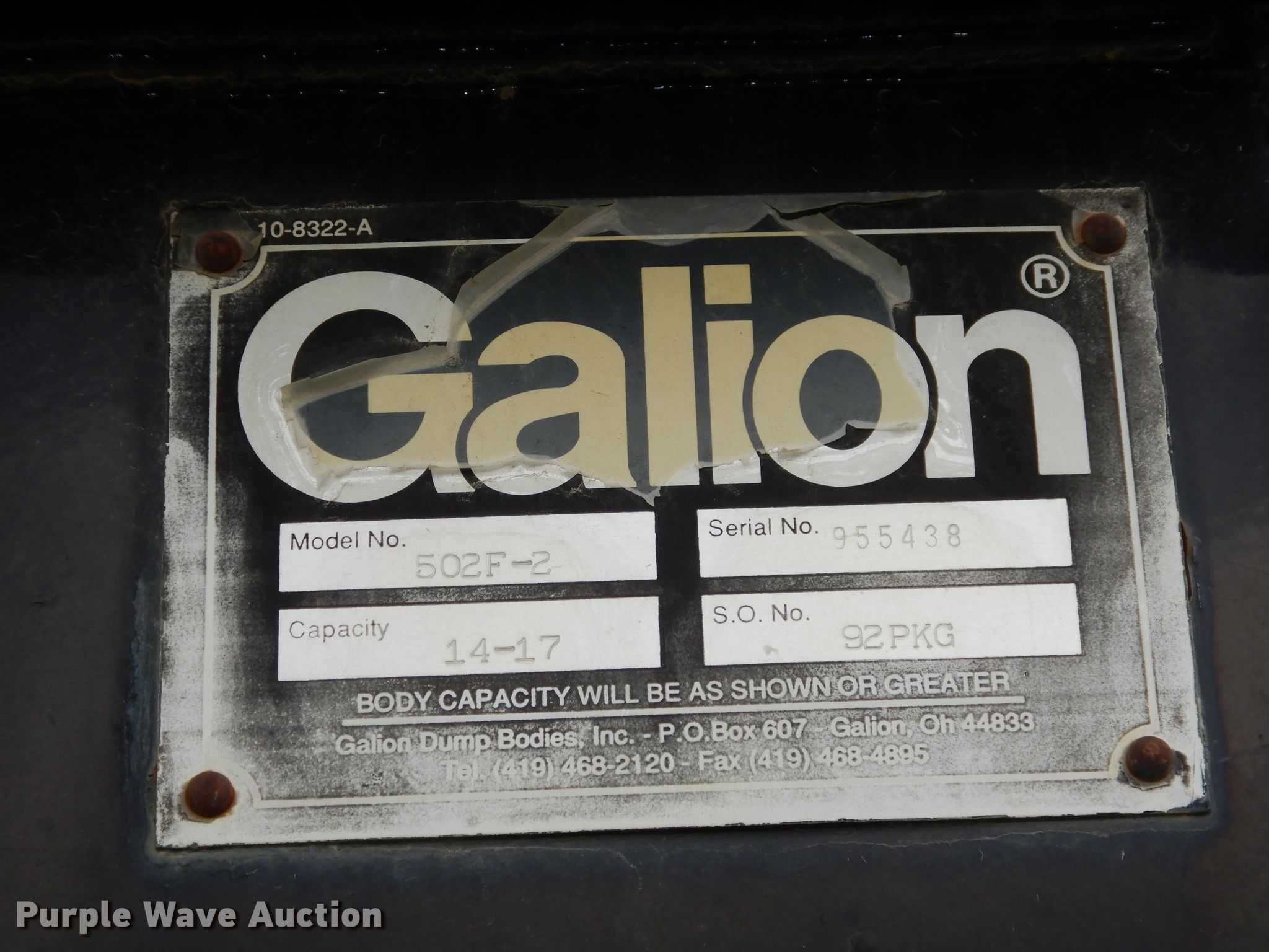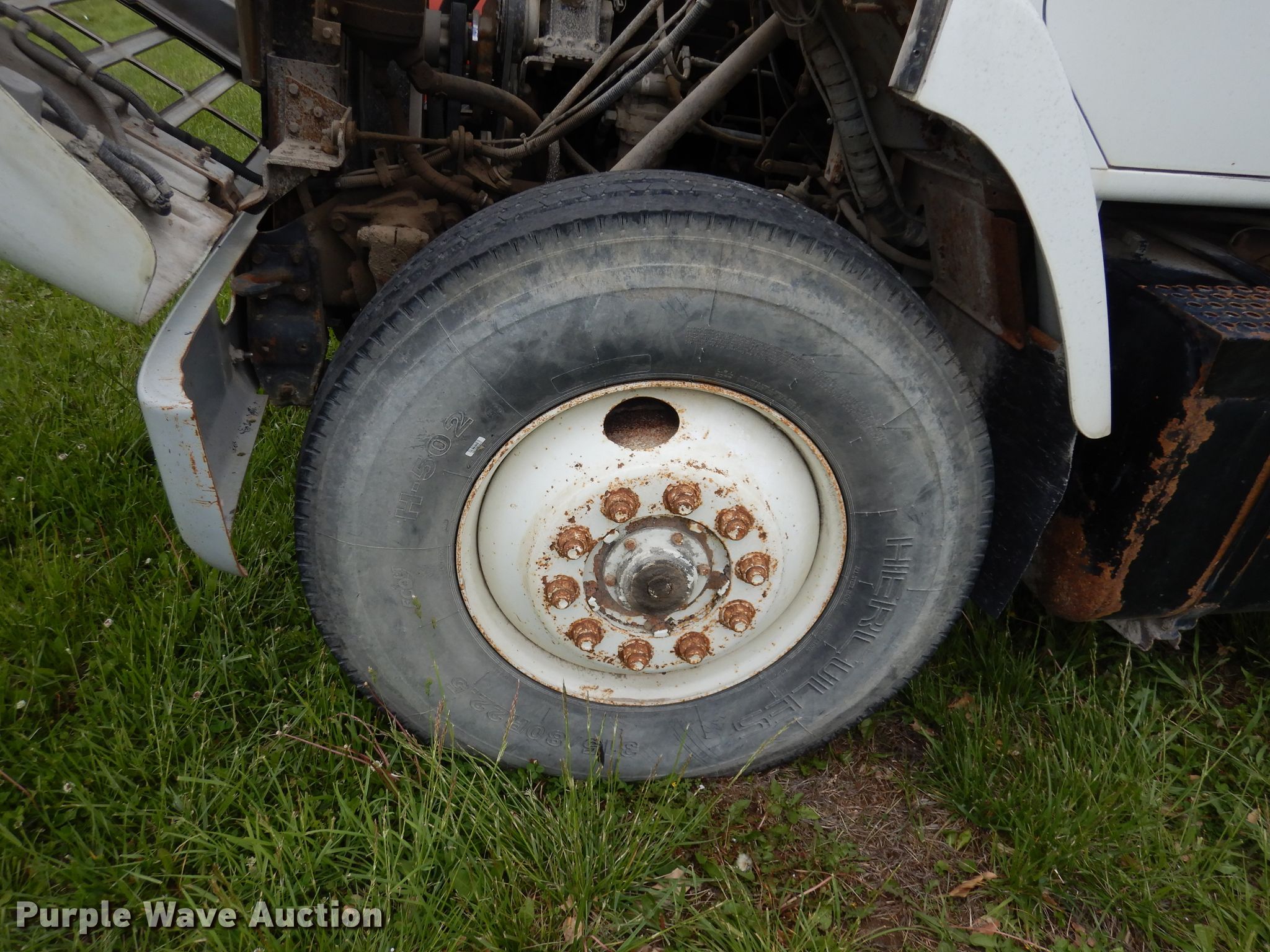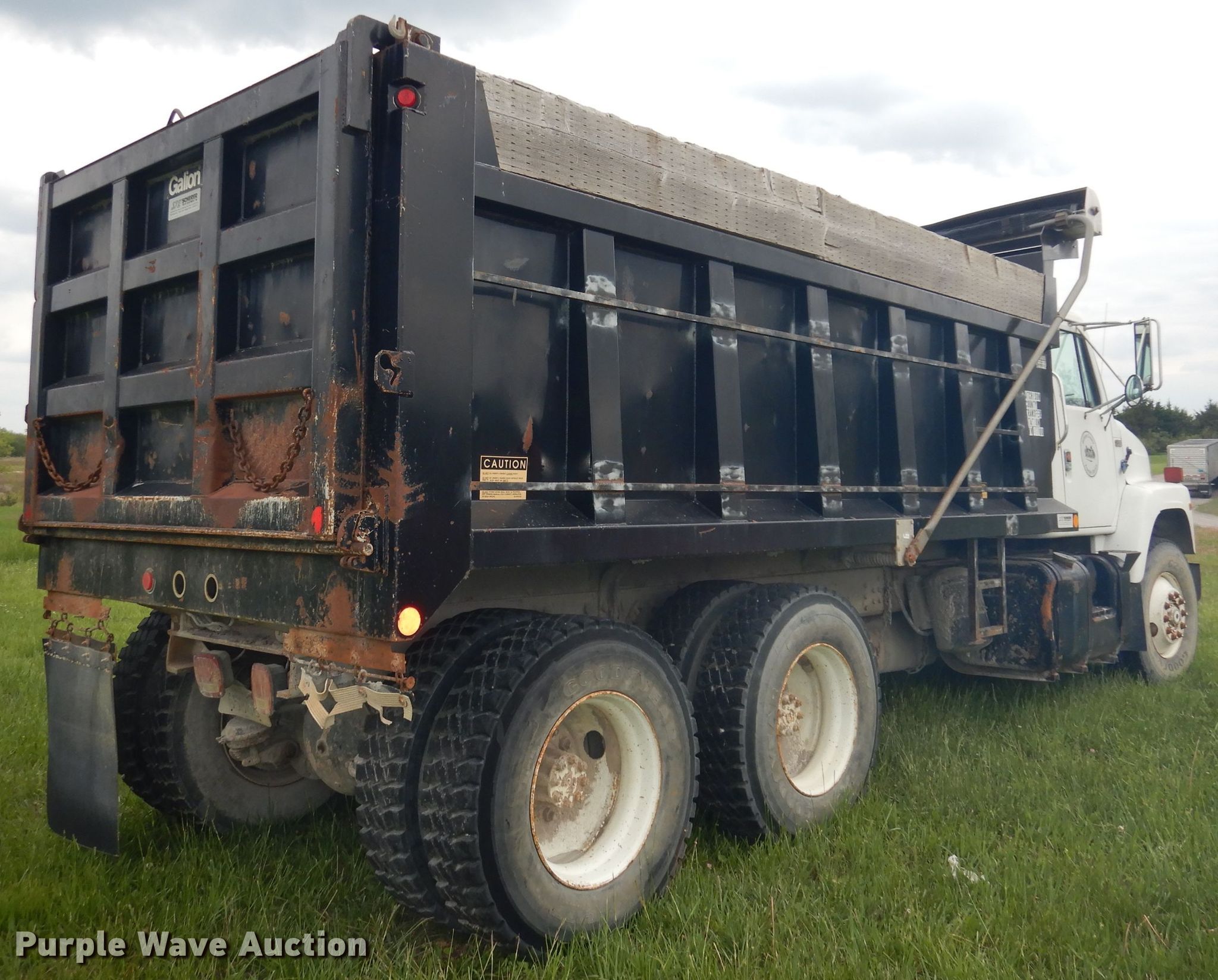 1988 International F2375 dump truck. 140,202 miles on odometer. Engine Cummins L10, Displacement: 10.0L, Cylinders: 6, Fuel type: Diesel. Transmission Eaton Fuller Road Ranger, Manual, Speed: 9. Chassis Axles: Tandem, Suspension: Spring, Brakes: Air. Interior AC, Heat, Heated mirrors. Operational Dump bed Galion 502F-2, 16' L x 96" W, Side height: 40", Side board height: 12", Bed type: Steel, Roll tarp, Ram: Single , End gate: Air operated. Tires Front: 315/80R22.5, Rear: 11R22.5. Notes Non-operational passenger door latch, Windshield chipped or cracked. Kansas title. 1HTZEGFRXJH572349. Atchison, KS 66002