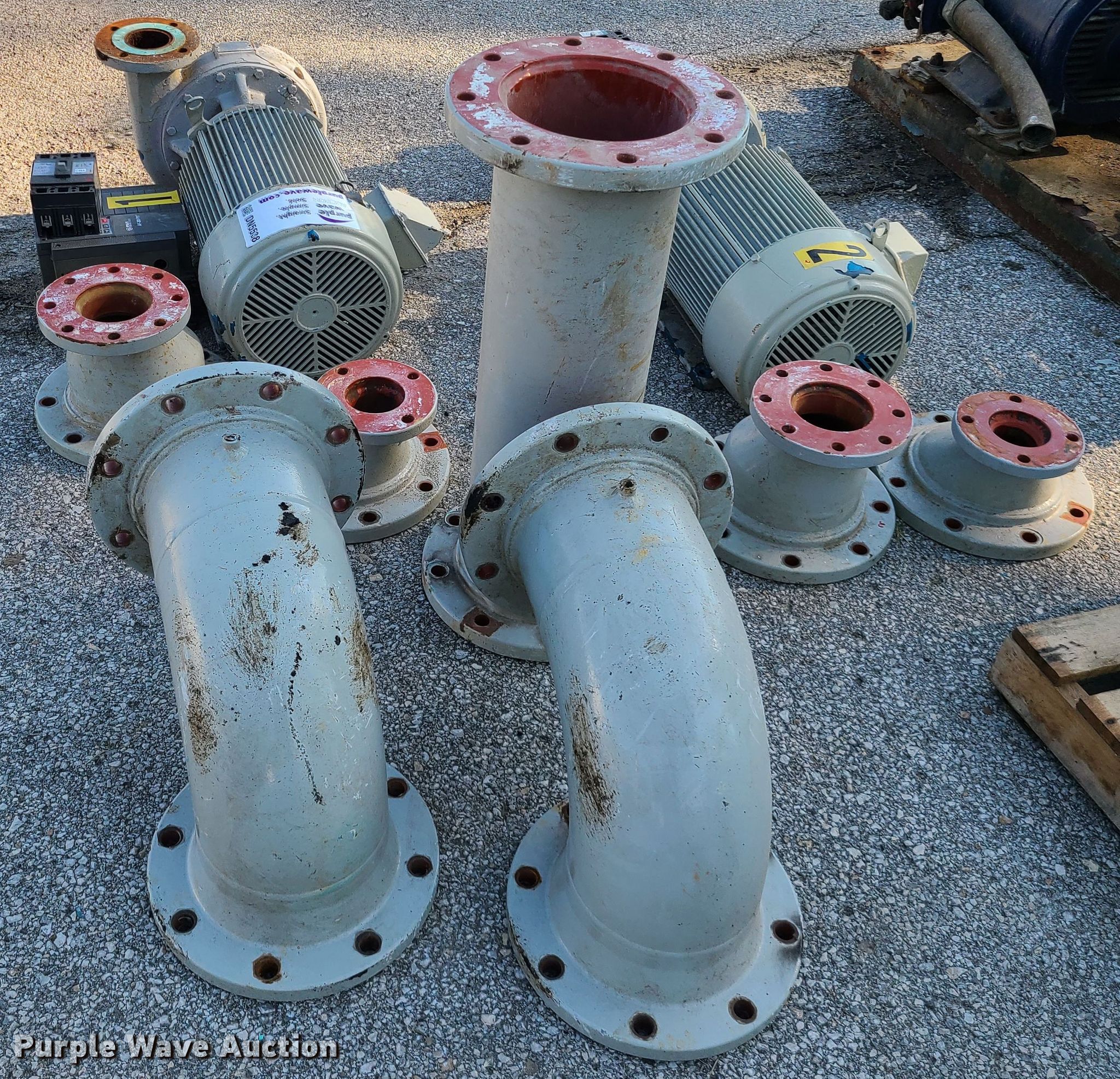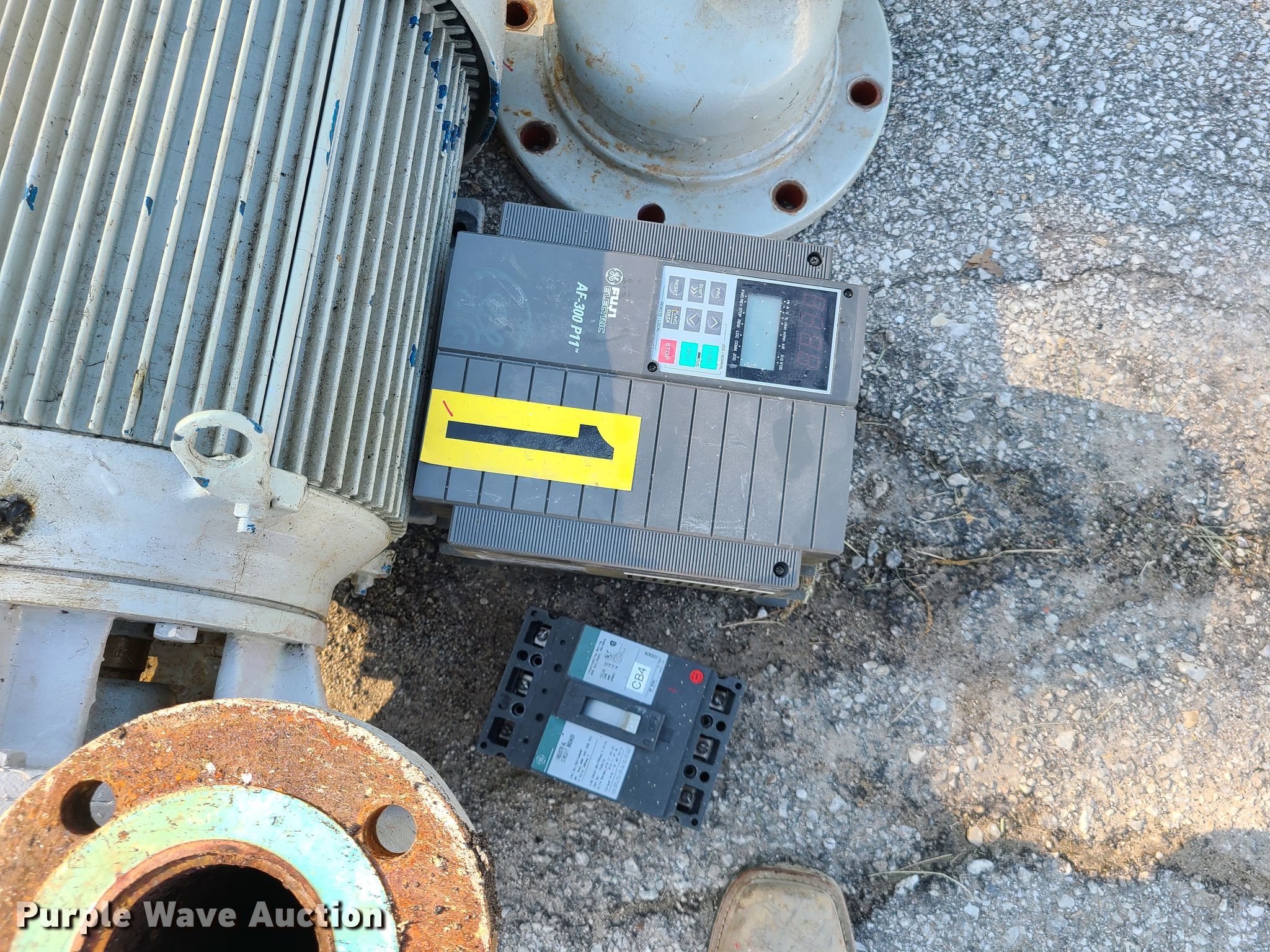 (2) 4" water pumps. Electric motors 15 HP, Three phase, Controllers, Unknown operating condition. City of Grain Valley Fleet Maintenance. 618 James Rollo Ct. Grain Valley, MO 64029