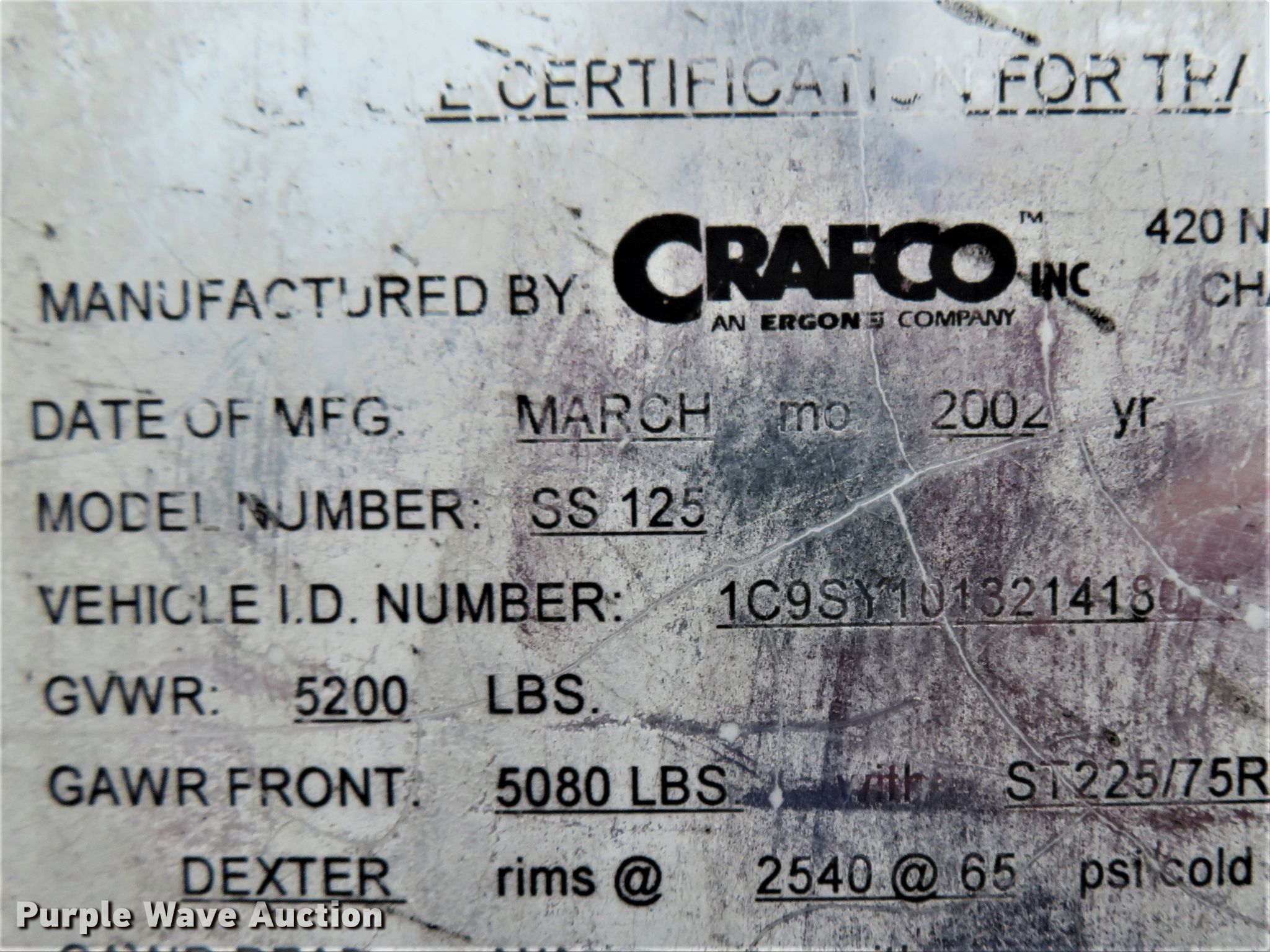 2002 Crafco SS125 melter applicator. 1,607 hours on meter. Engine Isuzu 3LB1, Cylinders: 3, Fuel type: Diesel, HP: 25. Operational Tank capacity: 125 gallons, Burner: Diesel, Heating rating: 250,000 BTU, Spray wand. Chassis Axles: Single, Suspension: Spring, GAWR: 5,080 lbs. Tires Size: ST225/75R15. Transfer of ownership documentation will be a bill of sale. 1C9SY101321418075. City of Wentzville, MO. Wentzville, MO 63385