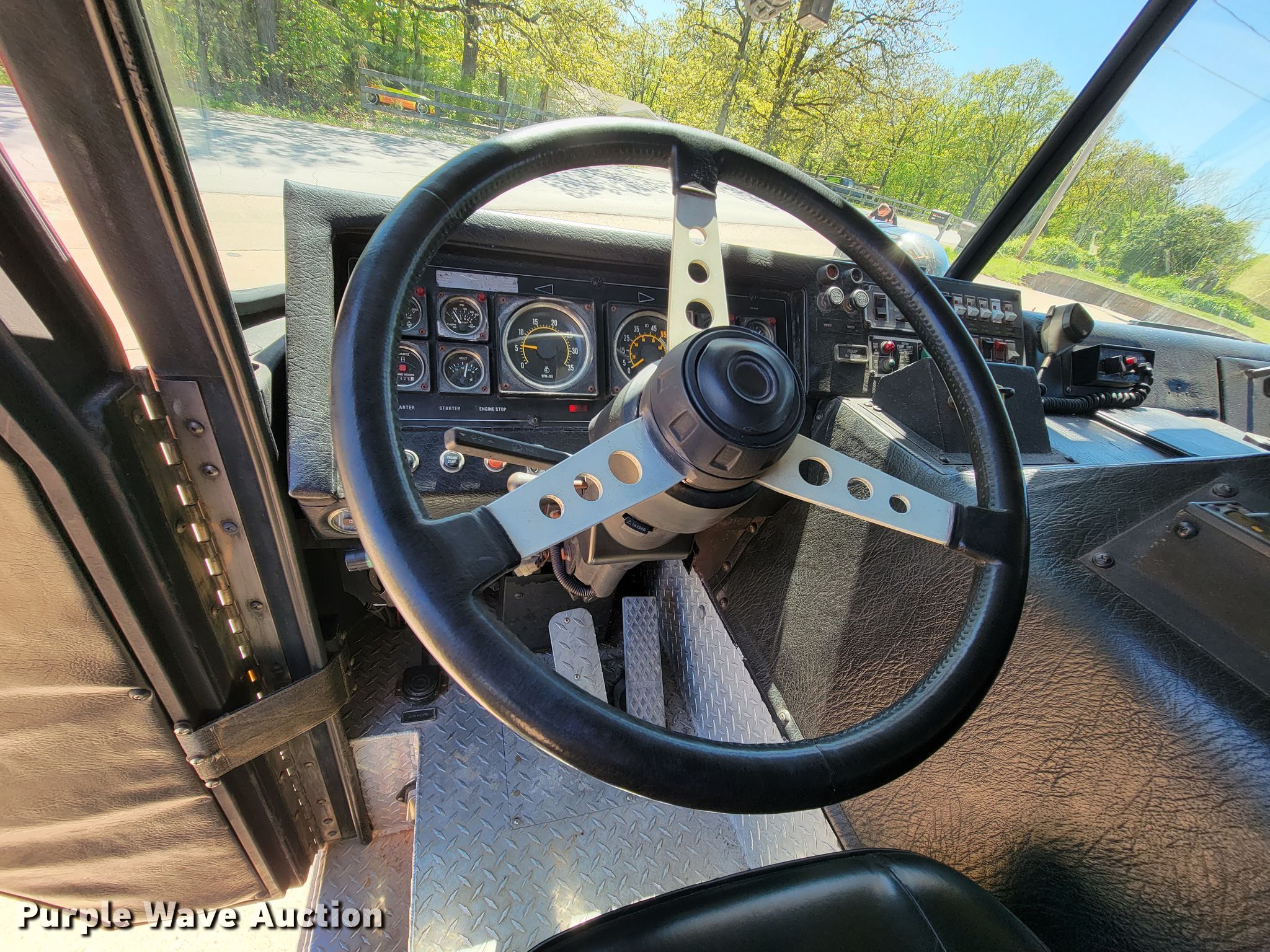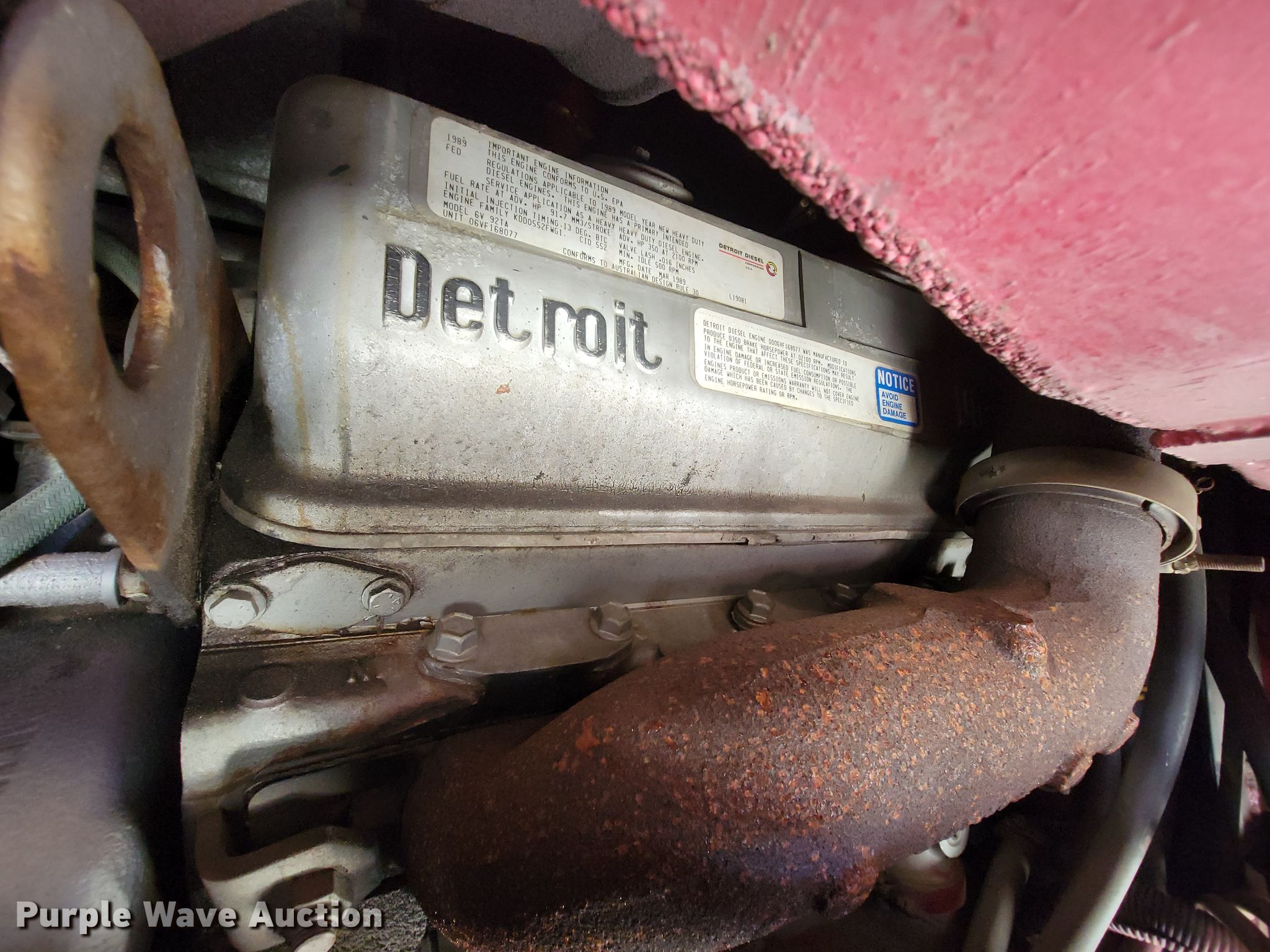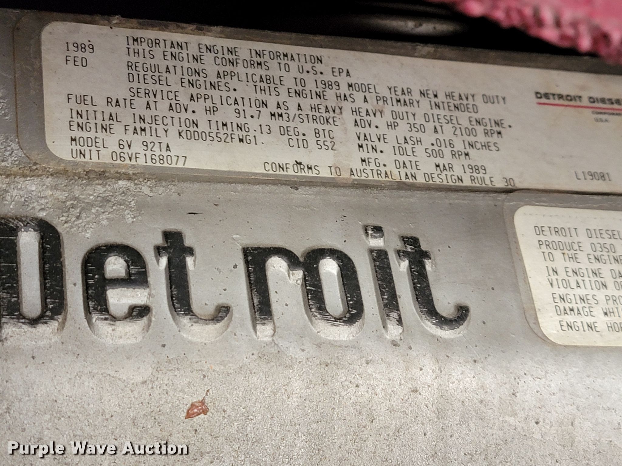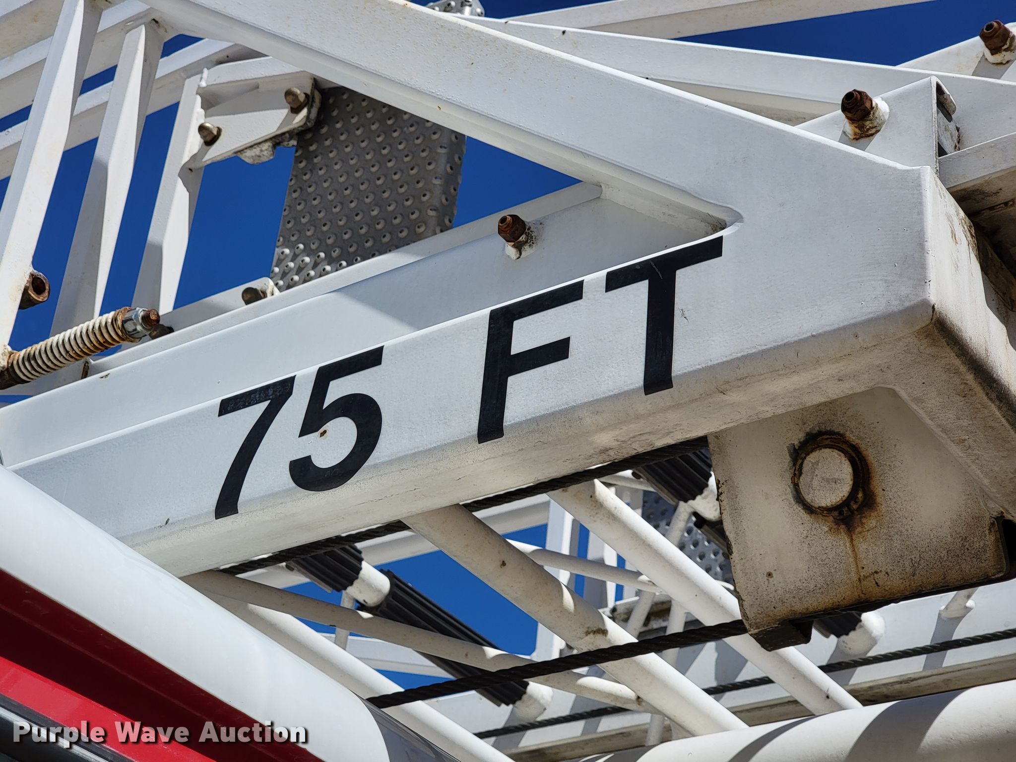 1989 Pierce ladder fire truck. 12,310 miles on odometer. Engine Detroit Diesel 6V92TA, Displacement: 552 C.I.D, Cylinders: 6, Fuel type: Diesel. Transmission Automatic. Chassis Axles: Single, Suspension: Spring, Brakes: Air, GVWR: 50,000 lbs, Wheelbase: 216". Interior Heat. Operational Fire truck Aerial Maximum height: 75', Elevated deck gun, Pump 1,250 gpm.. Tires Front: 385/65R22.5, Rear: 315/80R22.5. Missouri prior salvage title. 1P9CT02D5KA040503. Rocky Mount Fire Prot. Dist.. 20401 Brendel Blvd. Rocky Mount, MO 65072