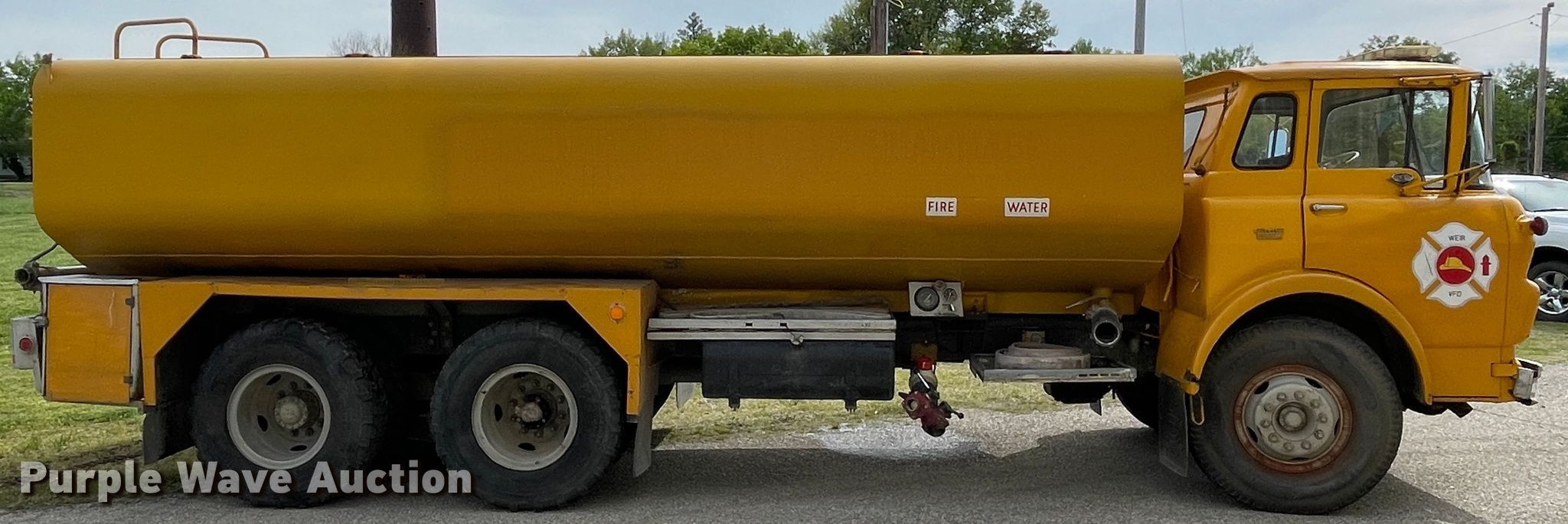 1968 GMC 8500 water truck. 28,732 miles on odometer. Engine Cylinders: 6, Fuel type: Diesel. Transmission Allison, Automatic. Chassis Axles: Tandem, Suspension: Spring, Brakes: Air. Interior AC, Heat. Operational Bed / tank Capacity: 5,000 gallons, Length: 20' 5", Side discharge, Top fill, Sight tube, Rear drain: 3". Tires Size: 12.00-20. Kansas title. Mileage has not been verified. Exempt will be written in the odometer disclosure on the title. XWM8720AED2085K. Weir Kansas Fire Department. 306 N Washington St. Weir, KS 66781