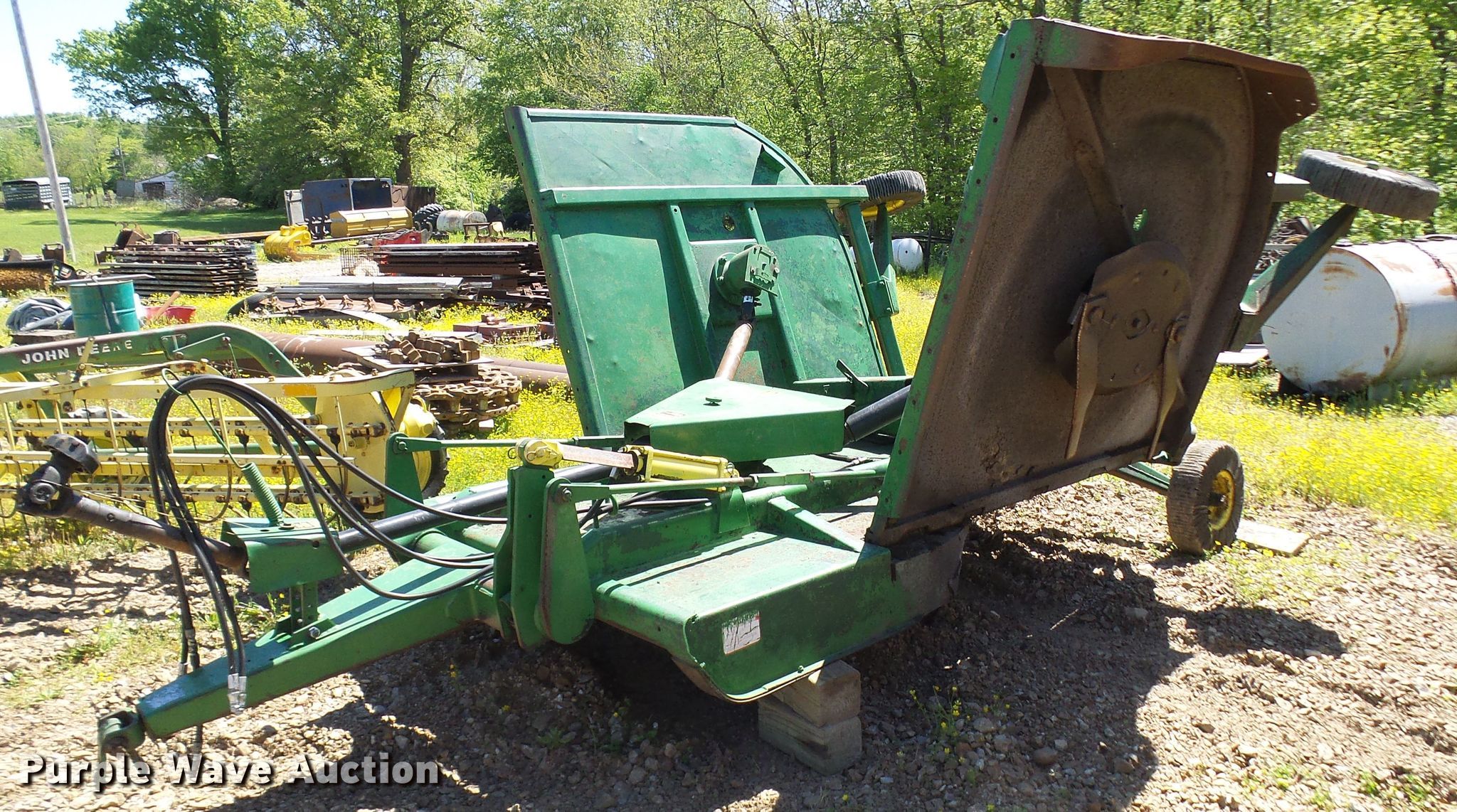 Purple Wave is selling a used Mower, Cutter, Shredder in Missouri. This item is a John Deere 1508 batwing rotary mower with the following: Width: 15', Hydraulic lift, Hydraulic fold, PTO: 1000