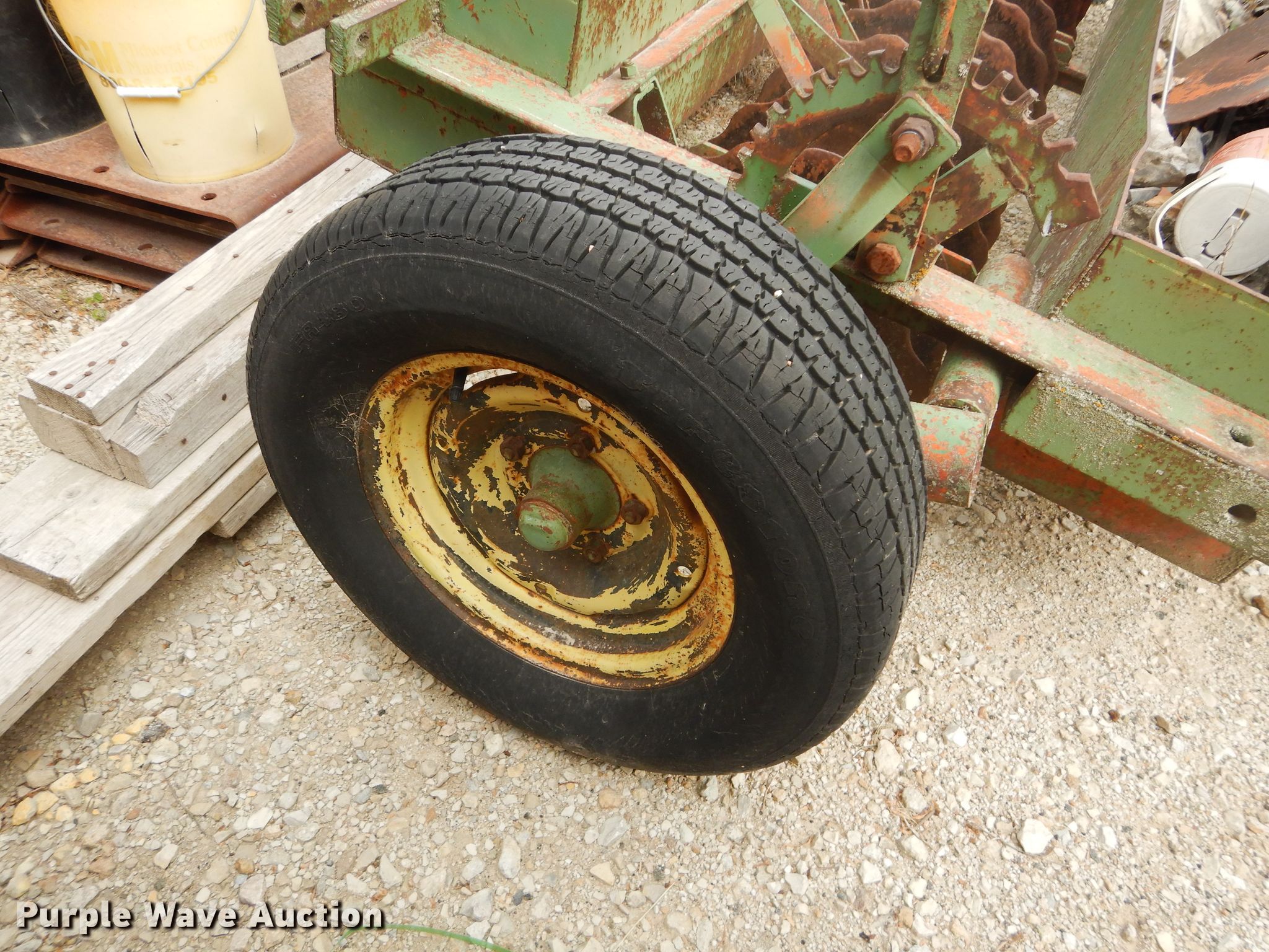 Disk. Overall width: 11'. Operational Blade diameter Front: 19", Rear: 19". Tires Tire size: P215/70R15. Notes Broken disk, Left tire flat and dry rotted. Ebert construction. 1307 14th St. Wamego, KS 66547