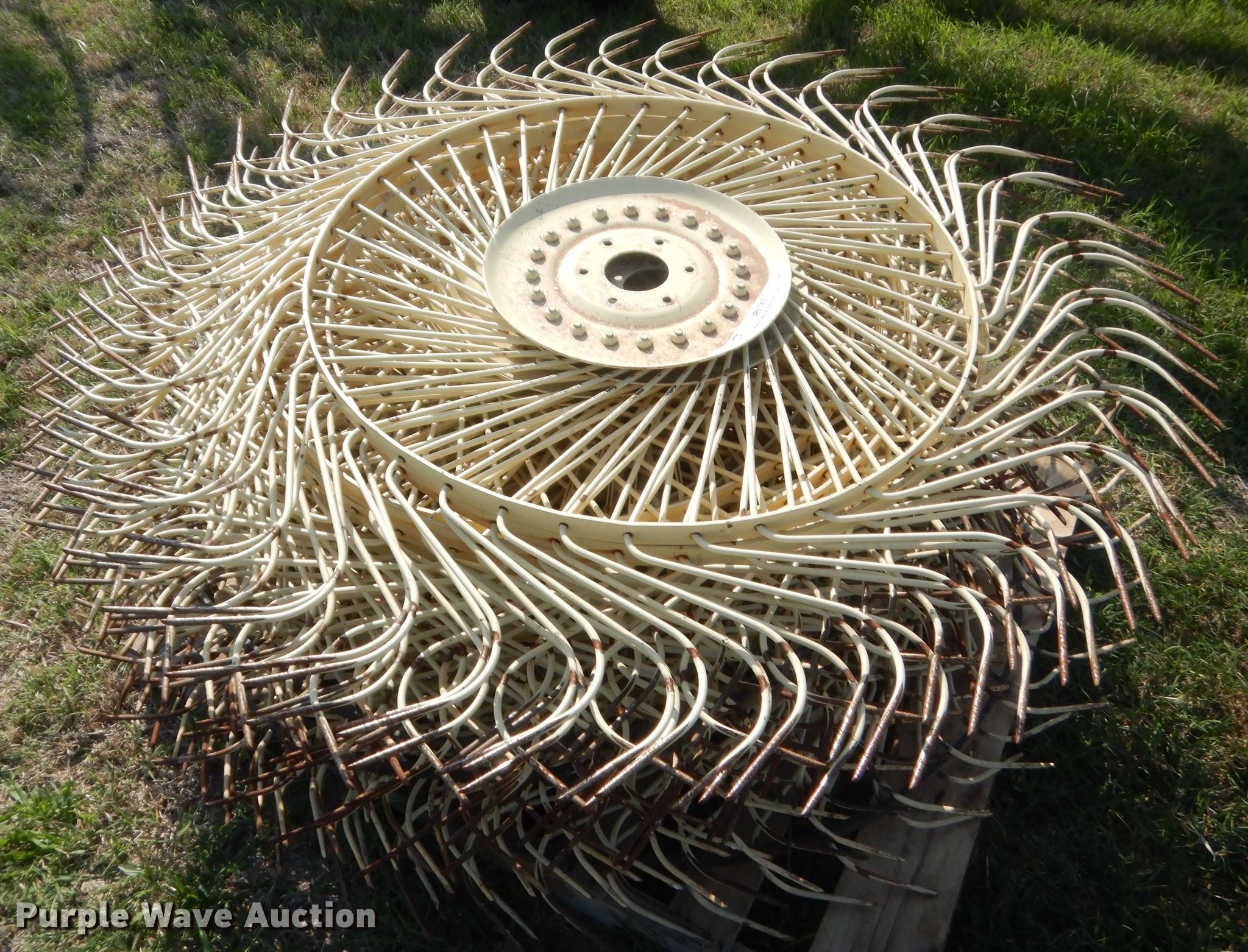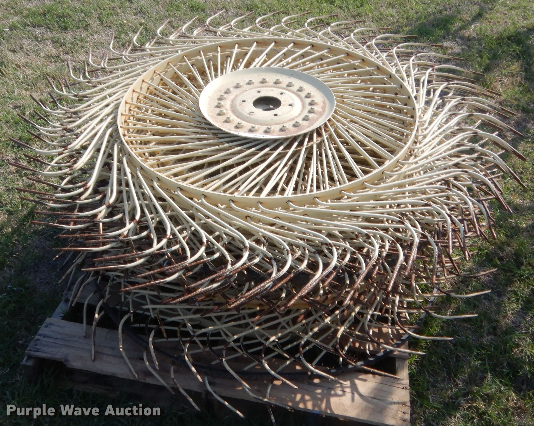 Purple Wave is selling a used Hay Equip. Attach. in Oklahoma. This item is a H&S BF16 hay rake parts with the following: Wheels, J-hooks, Arms, Bolts and more, Fits H&S BF16 hay rake