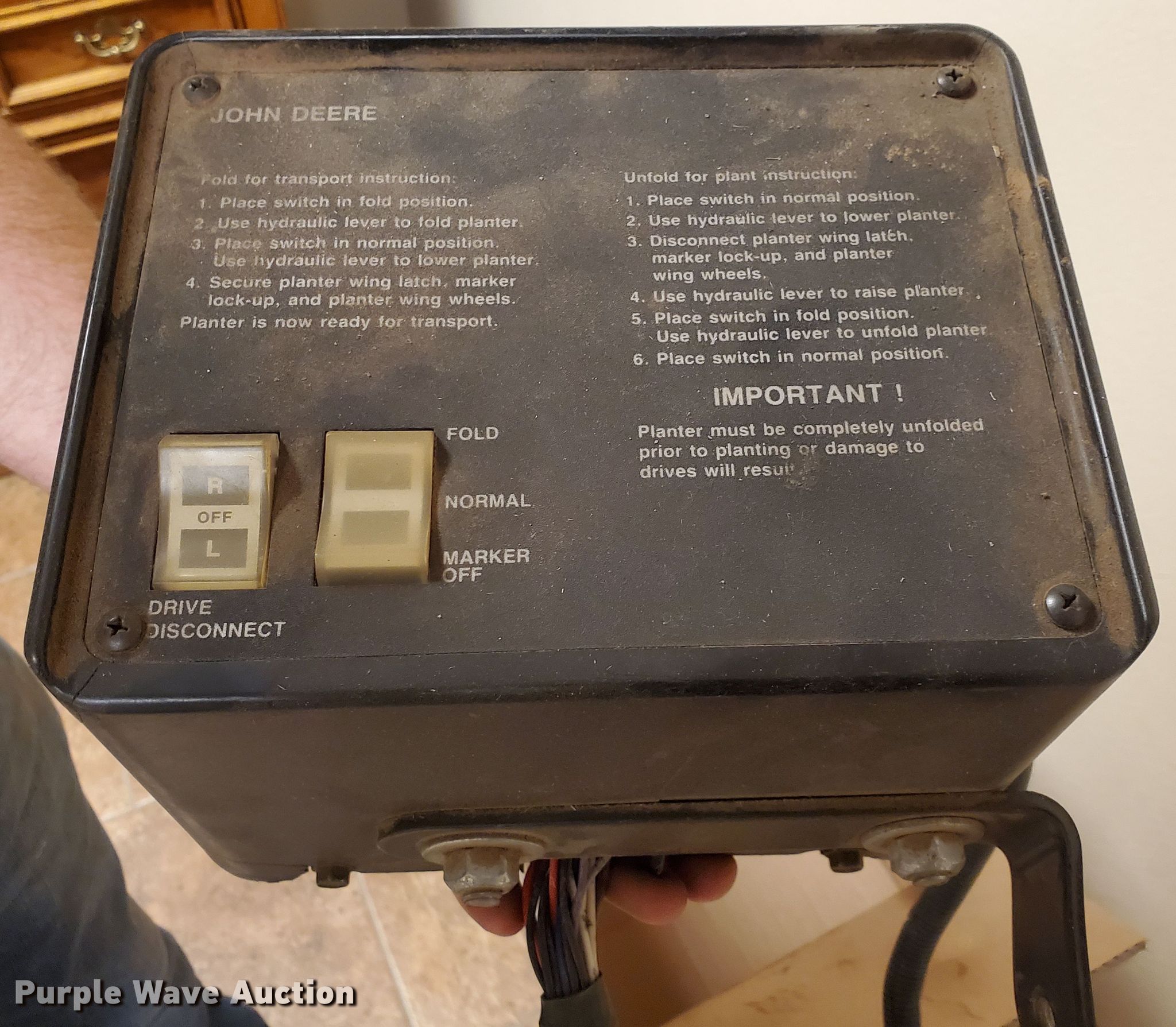 John Deere 7200 Max Emerge 2 planter. Row units: 12, Row spacing: 30", Serial: H07200G660304. Operational Frame Hitch: Two point, Marker arm, Wing fold, Seed delivery Individual seed hoppers, Row units Vacuum metering, Meter drive: Ground, Down pressure: Spring, Disk openers: Double, Gauge wheels: Double, Closing system: Double Type: Rubber, Fertilizer/ insecticide Fertilizer Liquid capacity: 420 gallons, Coulter type: Off-set, Pump: Squeeze, Electronics Monitor John Deere Computer-Trak 250.. Tires Transport tire size: 7.80-15 Quantity: 4, Drive/ outside tire size: 7.80-15 Quantity: 4. KanEquip Inc.. 704 Kunkle Dr. Ellsworth, KS 67439