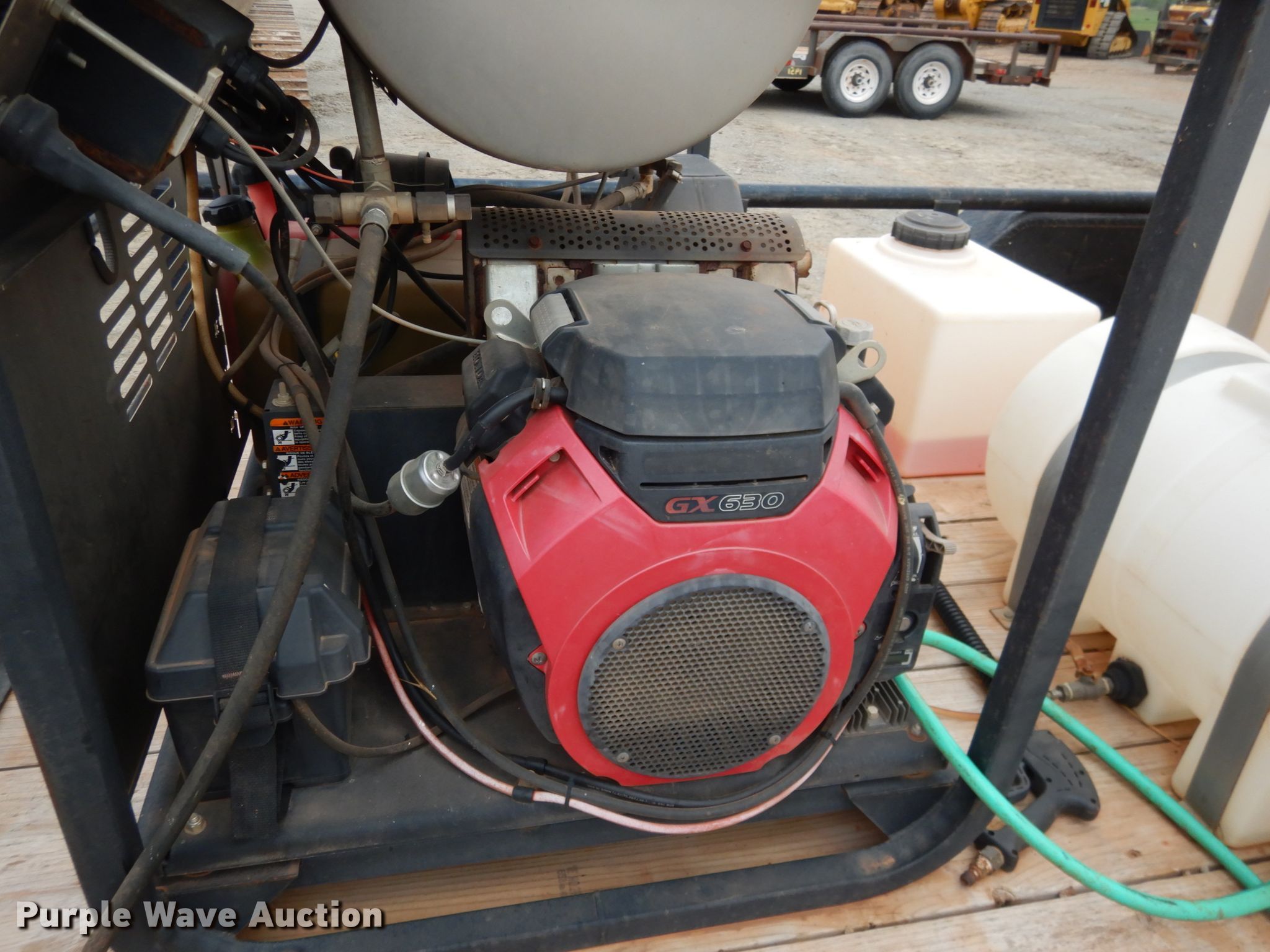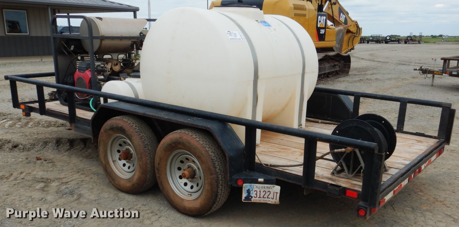 2012 Maxey pressure washer trailer. Dimensions. Overall: 20' L x 108" W, Deck: 16' L x 88" W. Engine Honda GX630, Cylinder: Single, Fuel type: Gasoline, Volts: 115, Amps: 3.0. Operational Pressure washer Nitro HDS-3506-1H6G, Maximum PSI: 3,500, Maximum GPM: 5.6, Maximum temperature: 250 F, Tank type: Poly Gallon capacity: 550, Gallon capacity: 35, Hose length: 50', Nozzle. Chassis Ball hitch: 2", Landing gear: Single, Suspension: Spring, Brakes: Electric, Axles: Tandem. Oklahoma title. 5R8U81623CM022296. RK&R Dozer - Open inspection June 9. 15200 W 6th Ave. Stillwater, OK 74074