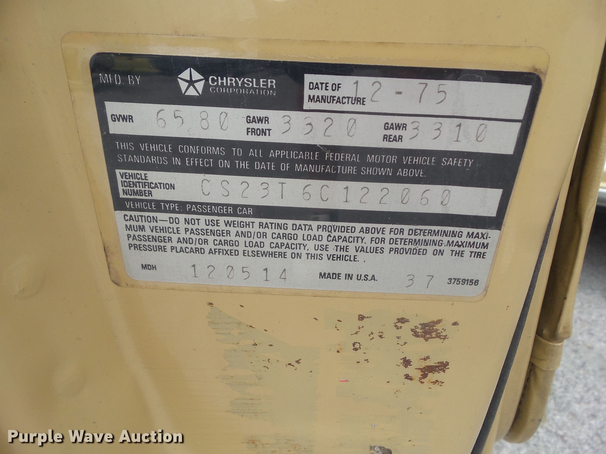 1976 Chrysler New Yorker. 19,135 miles on odometer. Engine Displacement: 440 CID, Cylinders: 8, Fuel type: Gas. Transmission Automatic. Interior AC, Heat, Seat: Power driver, Power passenger, Power windows. Tires Size: 235/75R15. Notes AC needs charged. Iowa title. Seller is an Iowa licensed motor vehicle dealer. The buyer may be required to pay sales tax and/or registration fees to the dealer prior to taking possession. Title will be assigned and distributed by the dealer. Please contact the seller for distribution questions. CS23T6C122060. Motor Kars II. 802 1st Ave. Perry, IA 50220