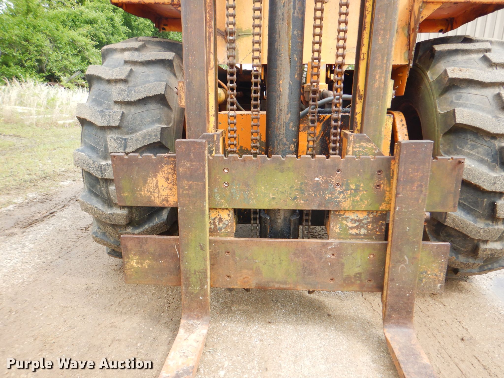 Purple Wave is selling a used Strt. Mast Rough Terr. Forklift in Oklahoma. This item is a Case 584 forklift with the following: Unknown hours on meter, Serial: 5423619
