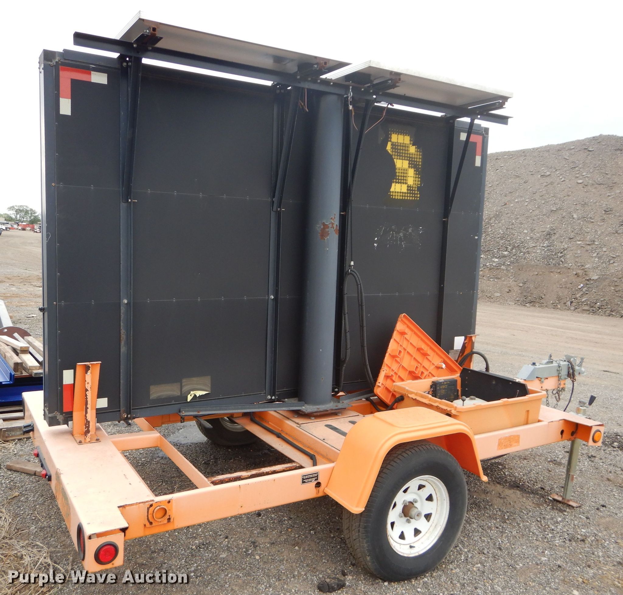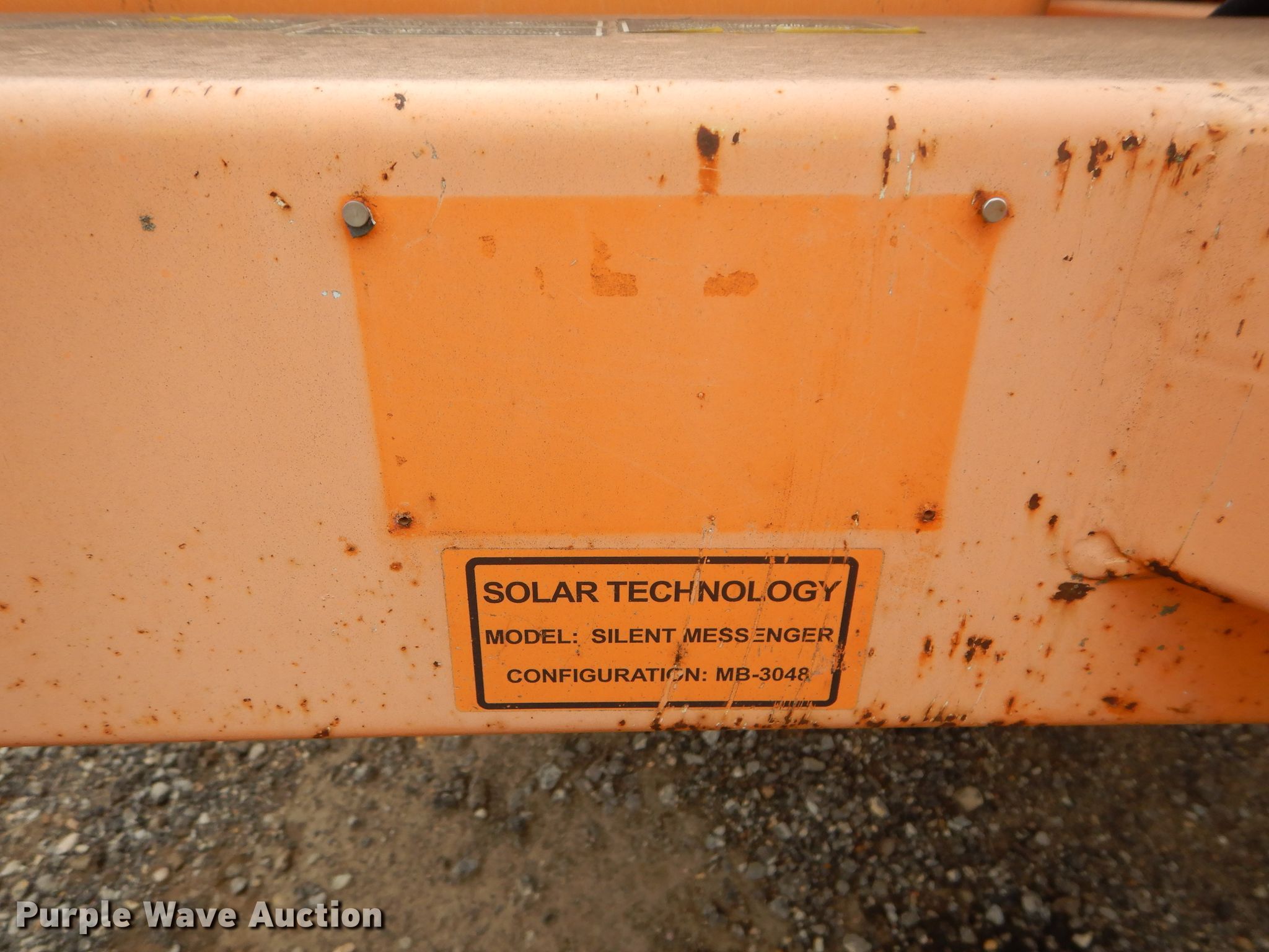 Purple Wave is selling a used Road Safety Equip. in Kansas. This item is a Solar Tech MB-24-318 message board trailer with the following: 126"L x 76"W message board, 2" ball hitch, Spring suspension, ST225/75R15 tires