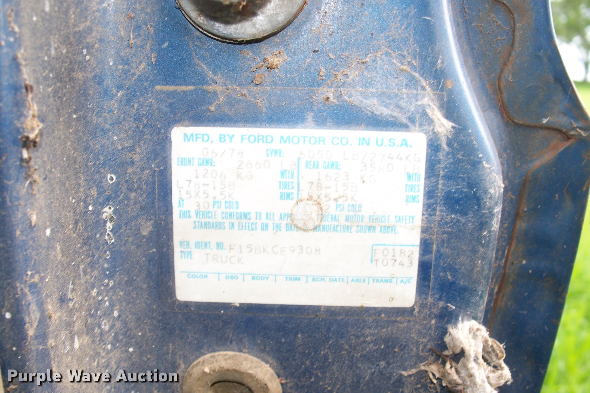 1978 Ford F150 pickup truck. 92,405 miles on odometer. Engine Cylinders: 6, Fuel type: Gas. Transmission Manual, Speed: 4. Interior Heat. Tires Size: 235/75R15. Notes Non-operational unit. Kansas title. Title distribution may be delayed up to 14 days from verification of funds. F15BKCE9308. Field Service Co.. Minneapolis, KS 67467