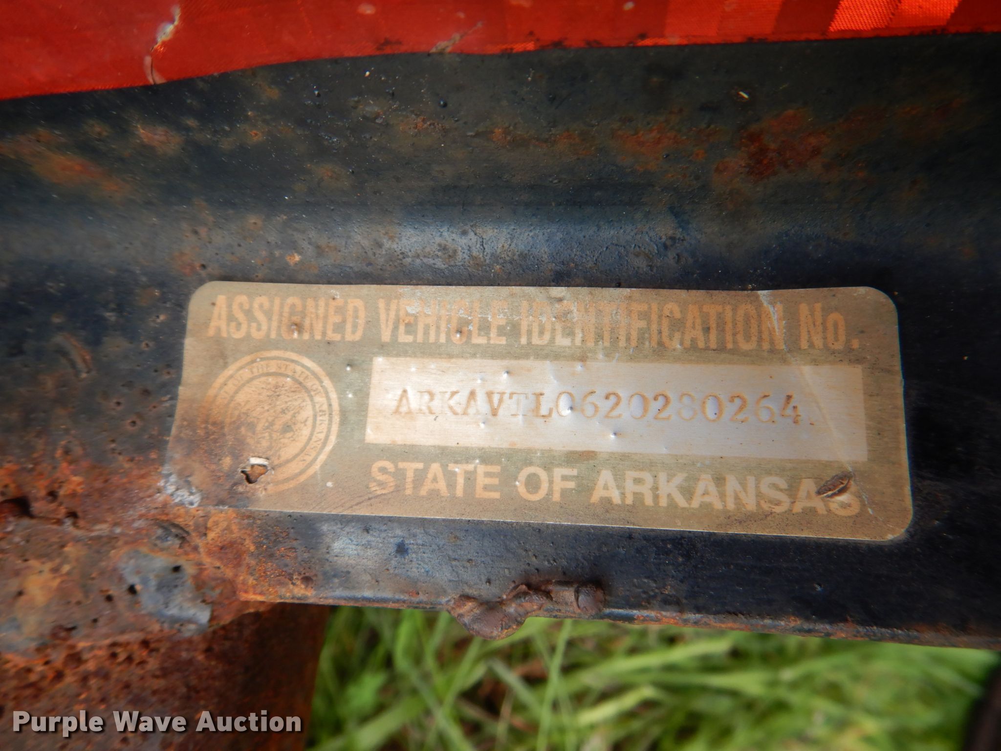 2002 shop built utility trailer. Dimensions. Overall: 24' x 78" W, Deck: 18' 2" L x 102" W. Operational Deck type: Steel. Chassis Ball hitch: 2", Landing gear: Single, Suspension: Spring, Axles: Tandem. Tires Size: ST205/75R14. Transfer of ownership documentation will be a bill of sale. ARKAVTL0620280264. Serenidad Ranch. 18818 S 540th Rd. Tahlequah, OK 74464