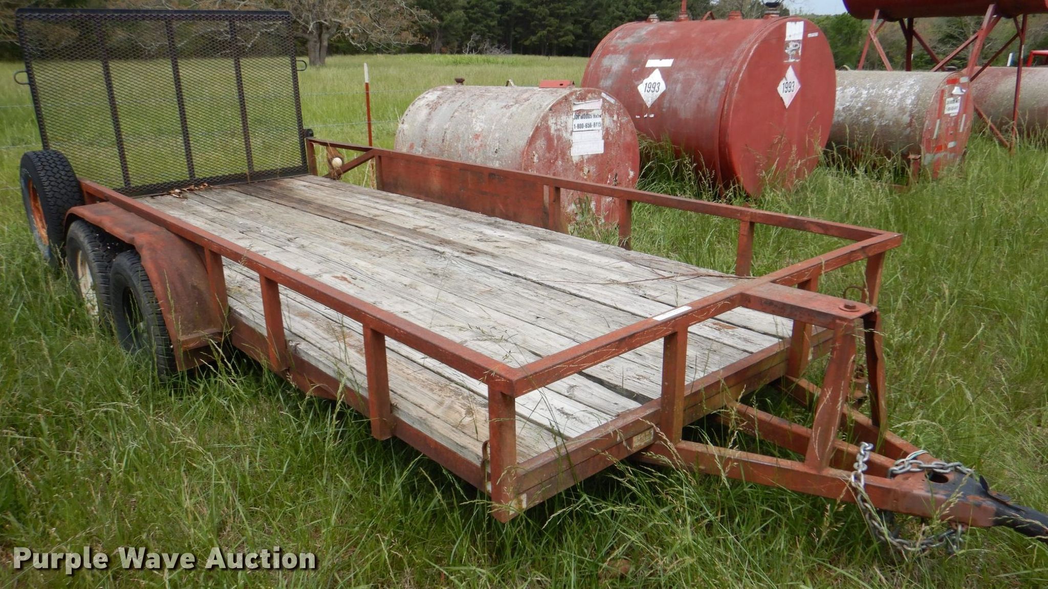 Purple Wave is selling a used Car or Utility Trailer in Oklahoma. This item is a 1989 Utility trailer with the following: Overall: 234" L x 96" W, Deck: 16' x 77" W, Ramps: Manual, Length: 51"
