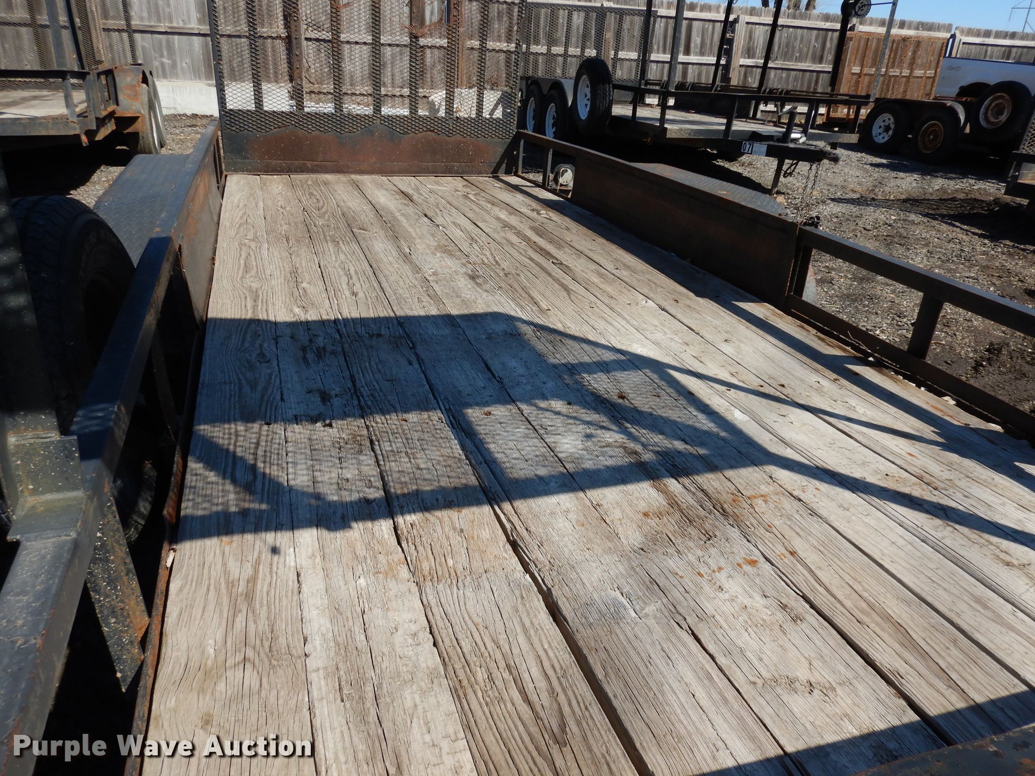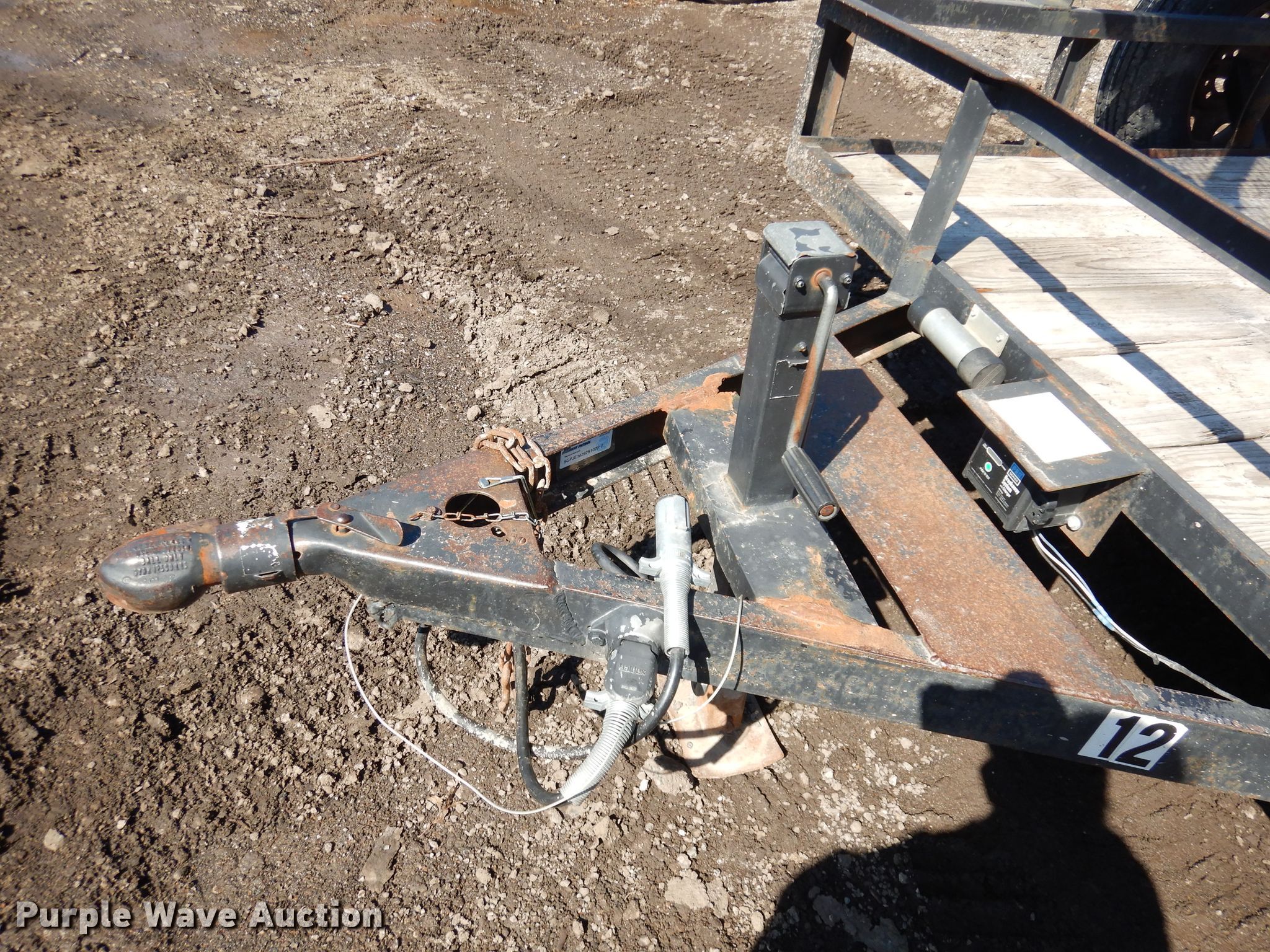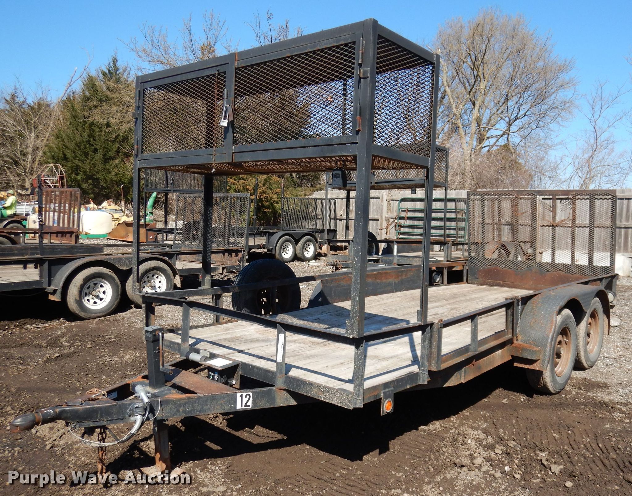 Purple Wave is selling a used Car or Utility Trailer in Kansas. This item is a 2002 Eagle utility trailer with the following: 16'L x 98"W overall, 75"W deck, 4' ramp, 2 5/16" ball hitch, Wood deck, Single leg landing gear, Tandem axle, 225/75R15 tires, Unit # 12