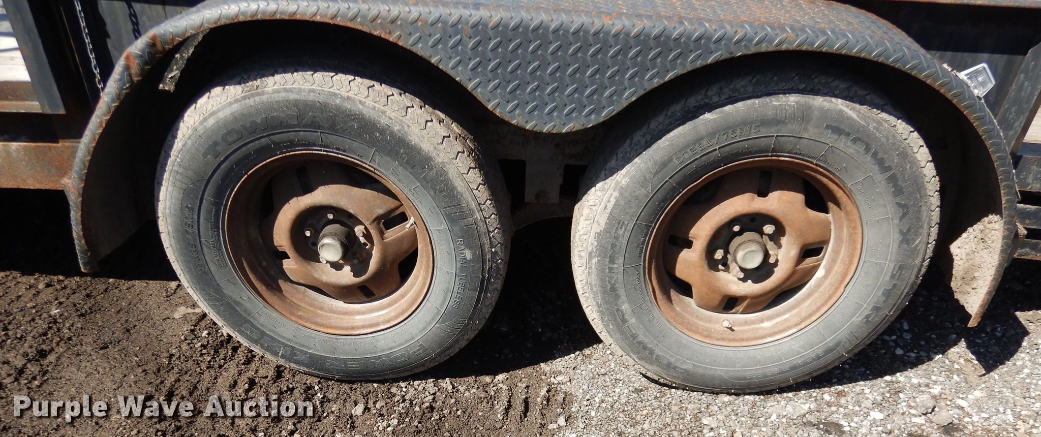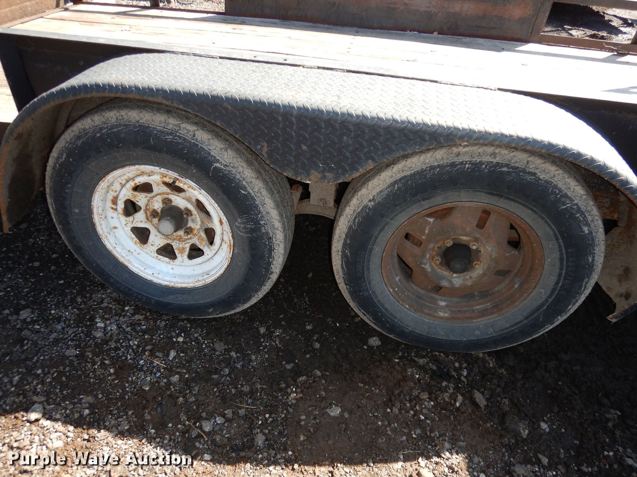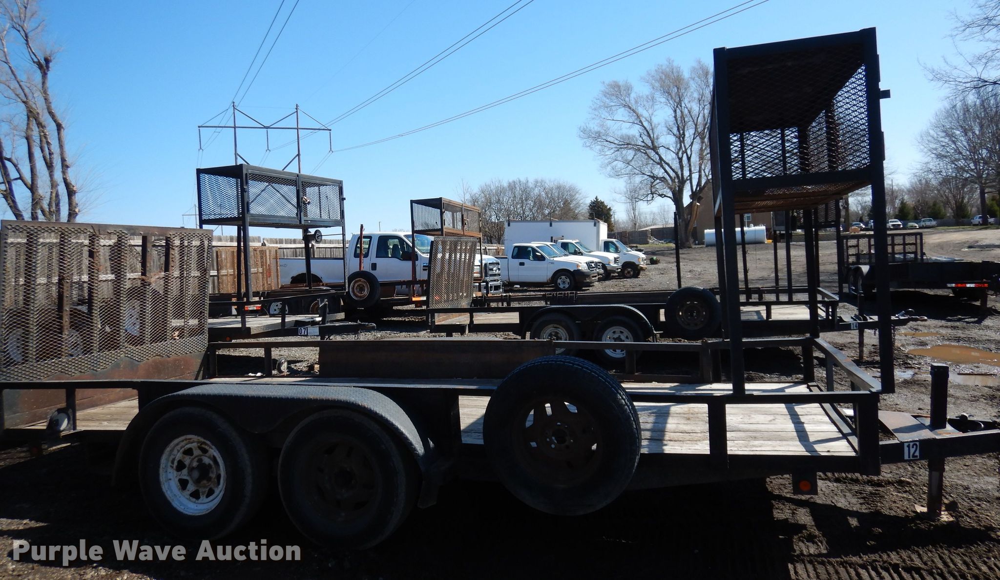 Purple Wave is selling a used Car or Utility Trailer in Kansas. This item is a 2002 Eagle utility trailer with the following: 16'L x 98"W overall, 75"W deck, 4' ramp, 2 5/16" ball hitch, Wood deck, Single leg landing gear, Tandem axle, 225/75R15 tires, Unit # 12
