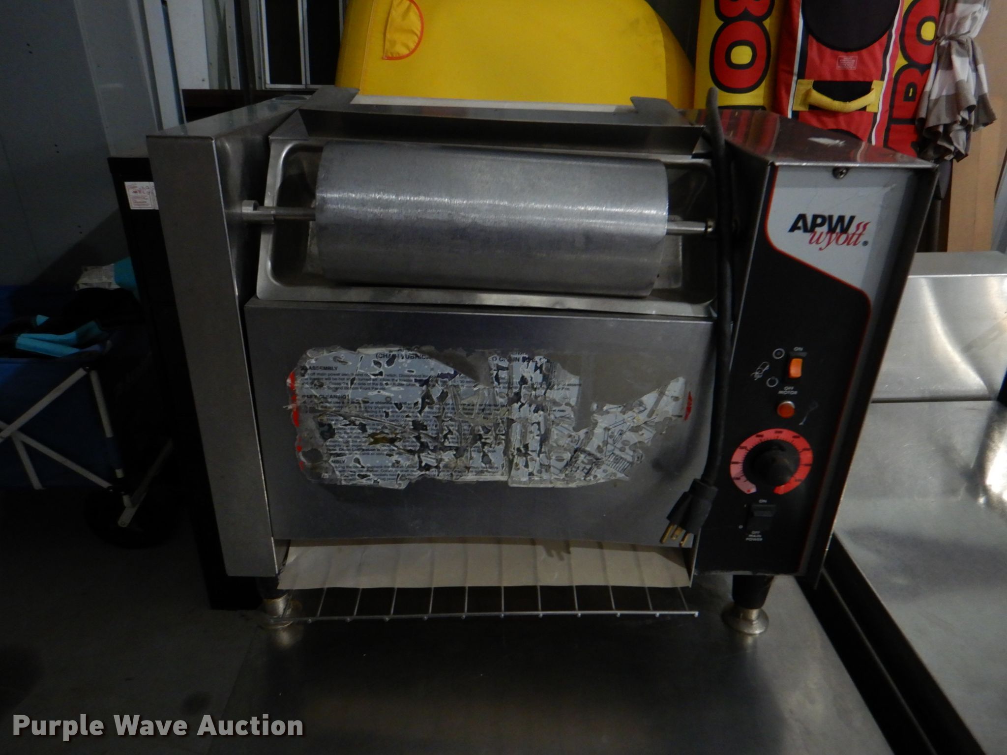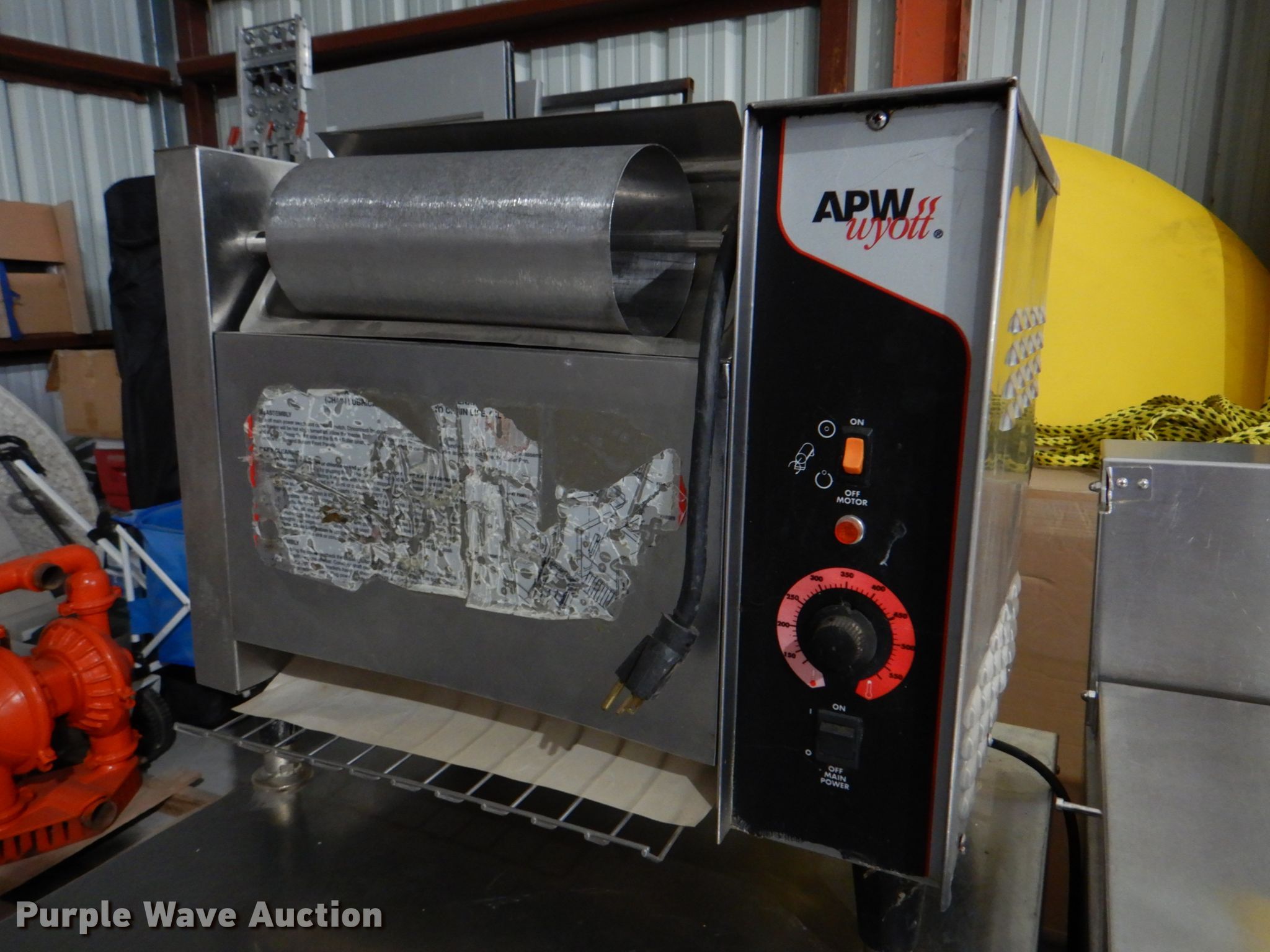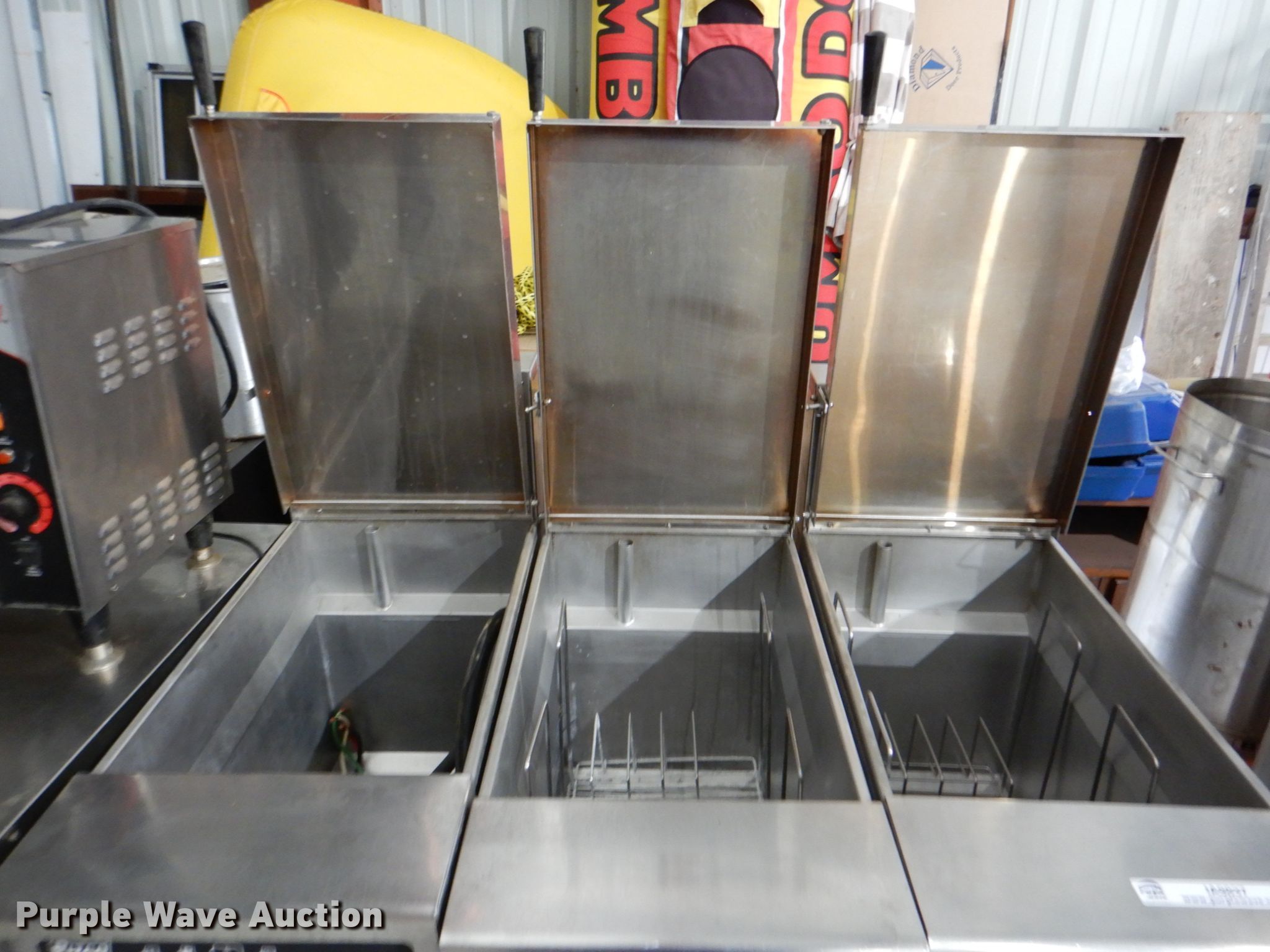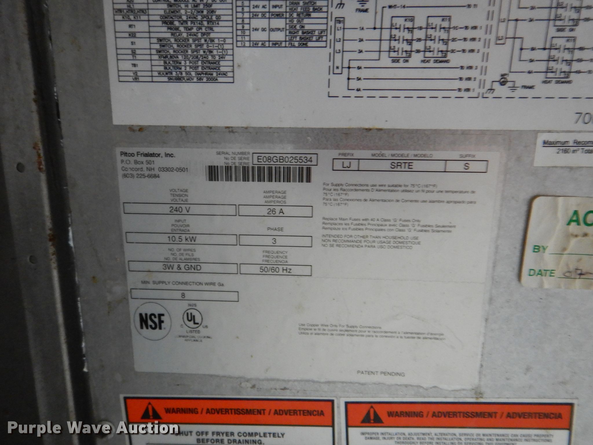 Purple Wave is selling a used Restaurant Equip. in Oklahoma. This item is a Restaurant equipment with the following: (3) Pitco Freshside grill, Three phase, 240V, APW bun toaster, Single phase, 120V, Holding and transport system, Single phase, 120V, (14) beverage urns