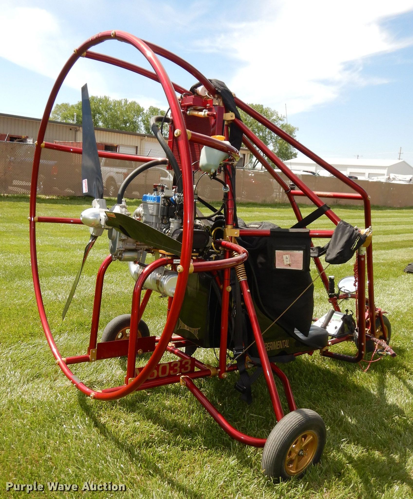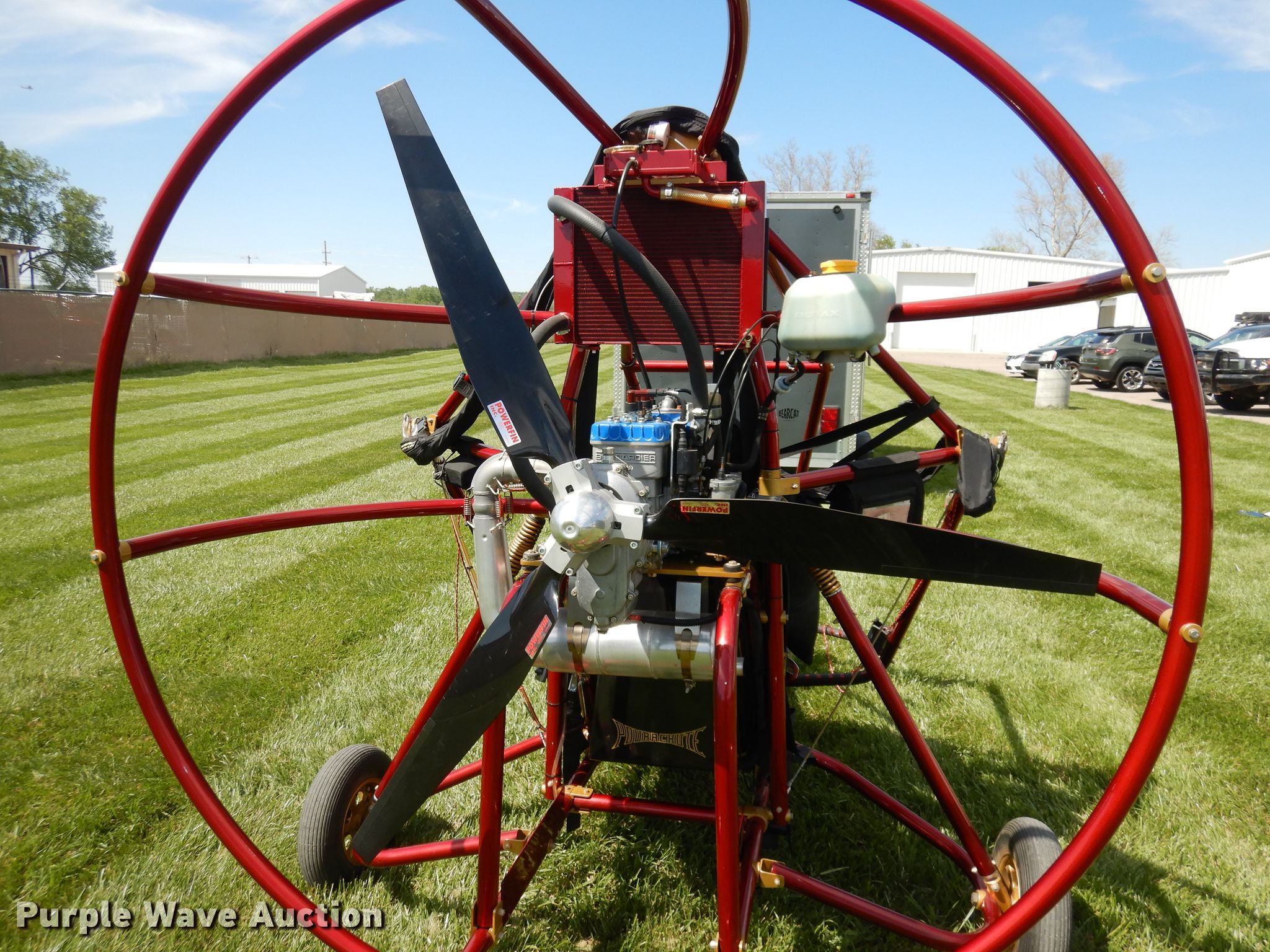 Purple Wave is selling a used Aircraft in Kansas. This item is a 2002 Powrachute PC2000 power parachute with the following: 194 hours on meter, 2002 Bombardier Rotax P02000 582cc four cylinder gas engine, 65 HP, Serial: 287POW, Electric start, Passenger: 2, Four point harnesses, Grand Rapids EIS system, Three blade powerfin propeller, 51" diameter, Quantum Advantage 500 sq.ft. chute, Chute bag, Line socks, 10 gallon fuel tank, Disc brakes, Strobe light, PPC nylon cover, (2) helmets, Communication system, Manual, 4.80/4.00-8 tires, 8.00-6 additional tires