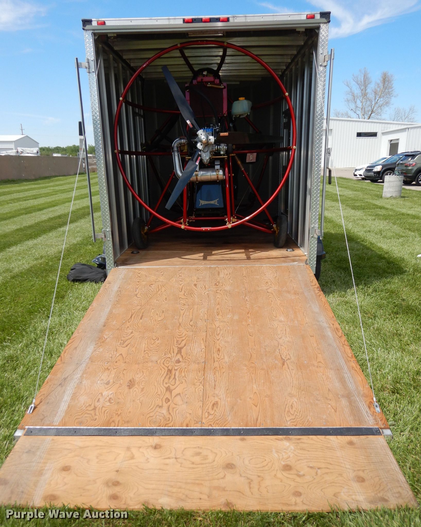 2002 Powrachute PC2000 power parachute. 194 hours on meter, 2002 Bombardier Rotax P02000 582cc four cylinder gas engine 65 HP, Serial: 287POW, Electric start, Passenger: 2 Four point harnesses, Grand Rapids EIS system, Three blade powerfin propeller 51" diameter, Quantum Advantage 500 sq.ft. chute Chute bag , Line socks, 10 gallon fuel tank, Disc brakes, Strobe light, PPC nylon cover, (2) helmets Communication system, Manual, 4.80/4.00-8 tires, 8.00-6 additional tires. 2004 Bearcat enclosed cargo trailer 12'L x 7'W overall, Wood deck, 2" ball hitch, Spring suspension, 5.30-12 tires, Unit# N5033. Transfer of ownership documentation will be a bill of sale. 4X3PE13114G000384. Manhattan, KS 66503