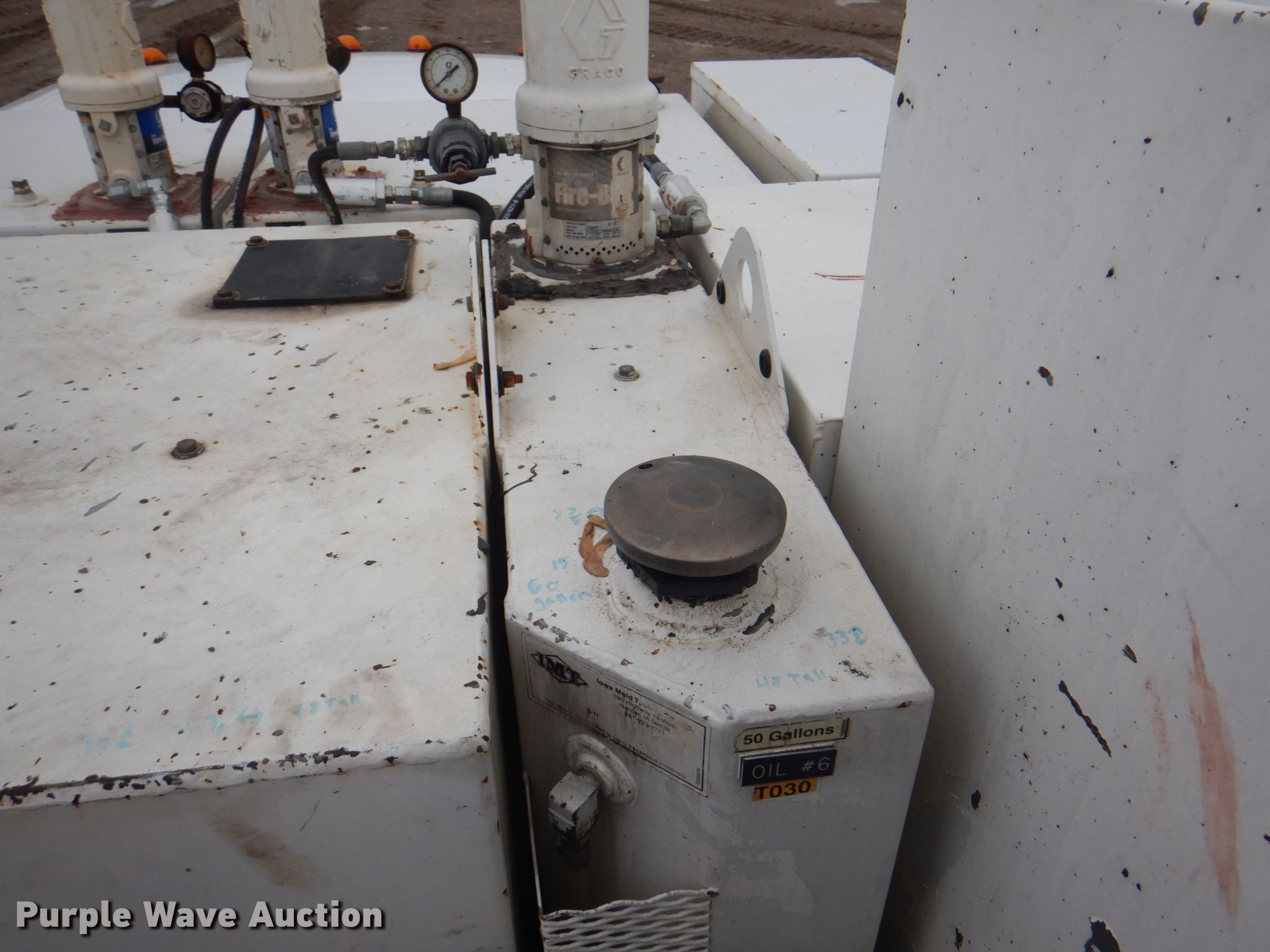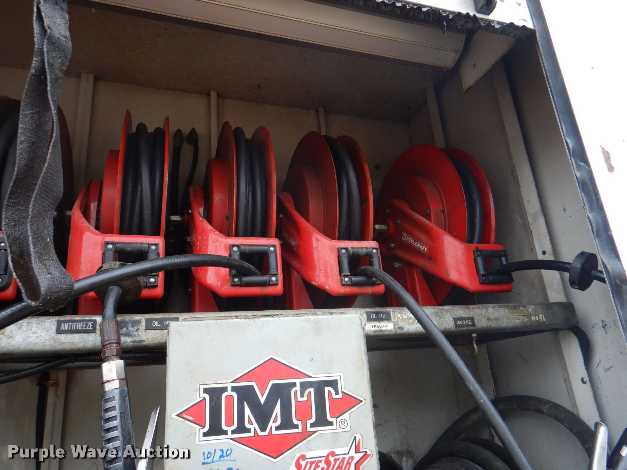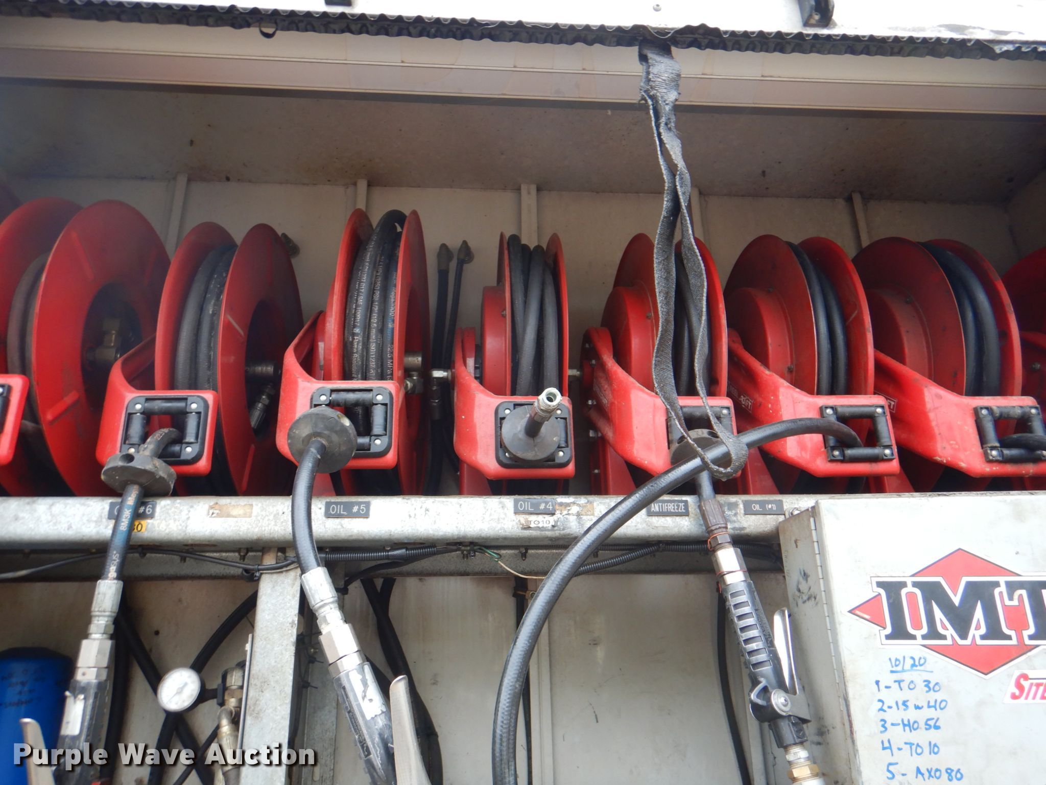 2012 Ford F750 XL lube truck. 50,332 miles on odometer, Engine hours: 3,850. Engine Cummins , Displacement: 6.7L, Cylinders: 6, Fuel type: Diesel. Transmission Automatic. Chassis Axles: Single, Suspension: Air, Brakes: Air, GVWR: 11,792 lbs. Interior AC, Heat, Cruise control, Auxiliary controls. Operational Bed / tank IMT Lube J366906, Serial: LUBE041025, Length: 14', Width: 94.5", Hose reel Quantity: 10, Air compressor Boss BA435, Serial: 107670, Graco Fire-Ball 225 pumps, (8) storage tanks. Tires Size: 11R22.5. Iowa title. Title distribution may be delayed up to 14 days from verification of funds. 3FRWF7FC8CV174349. Road Machinery & Supplies Co. 3001 Oxbow Ct SW. Bondurant, IA 50035