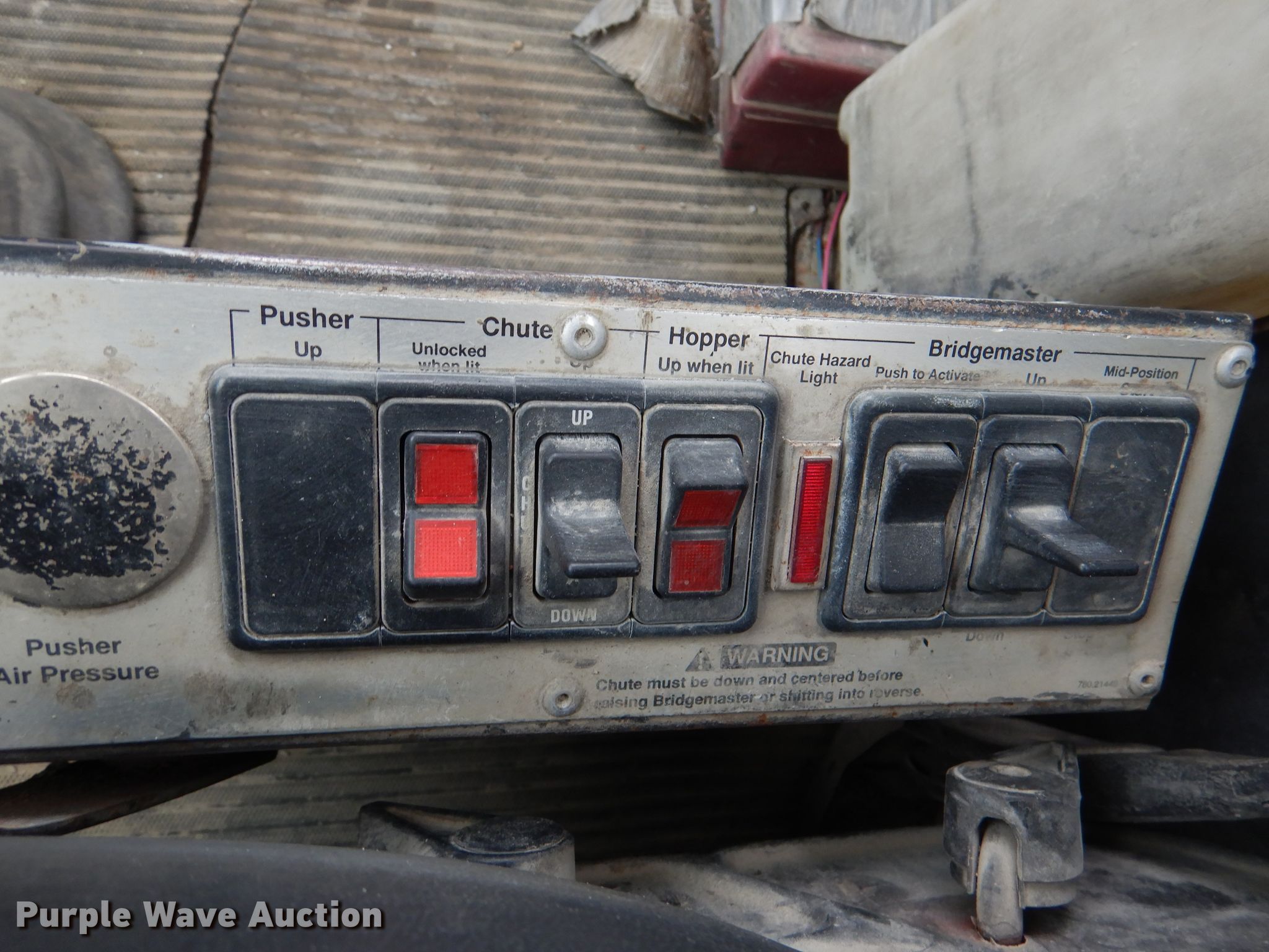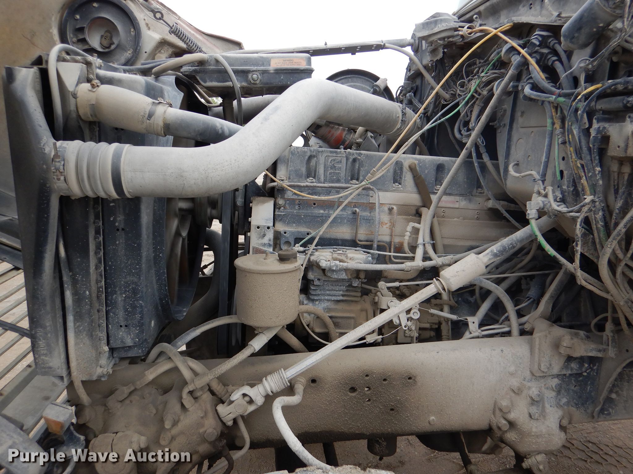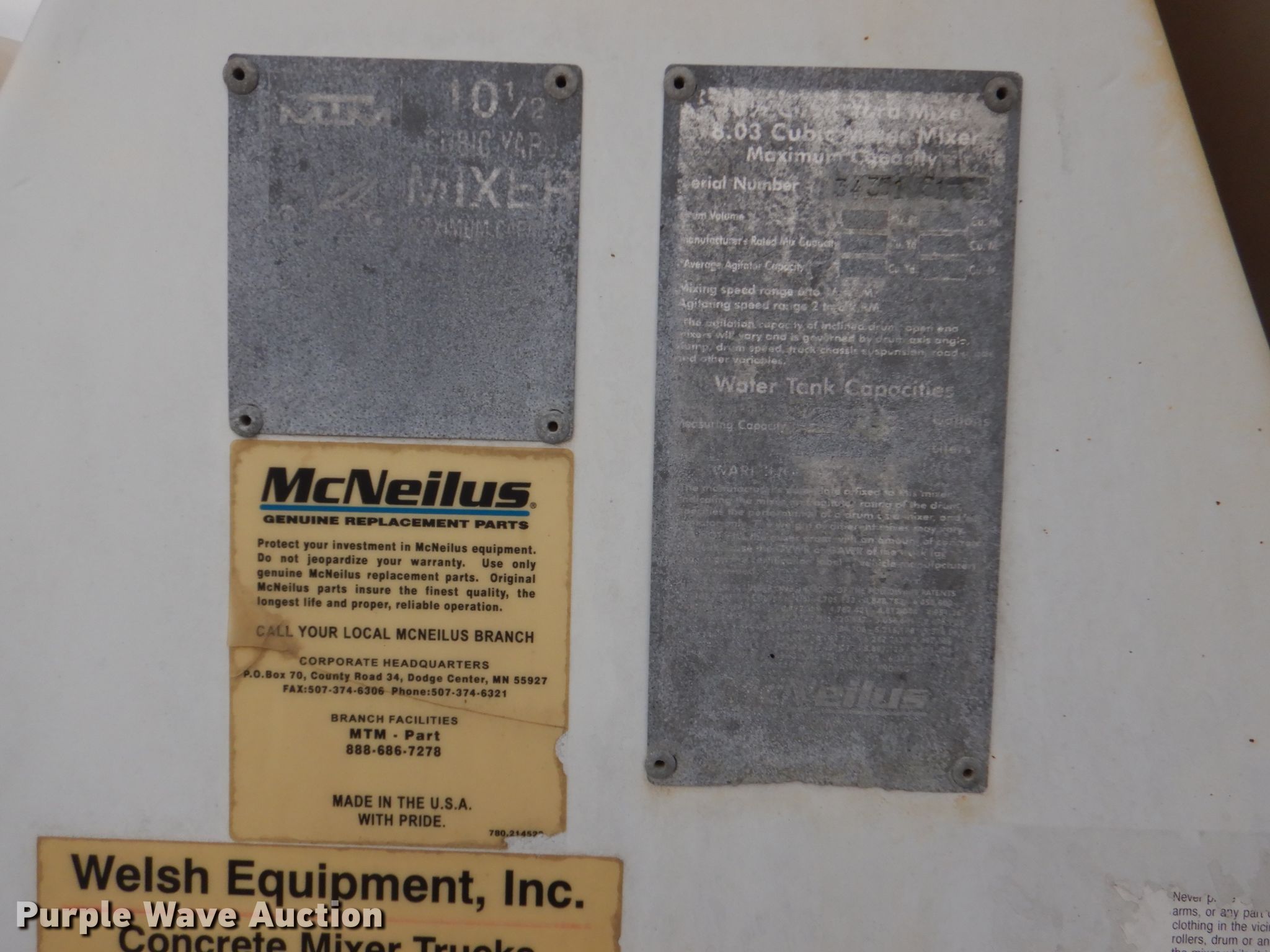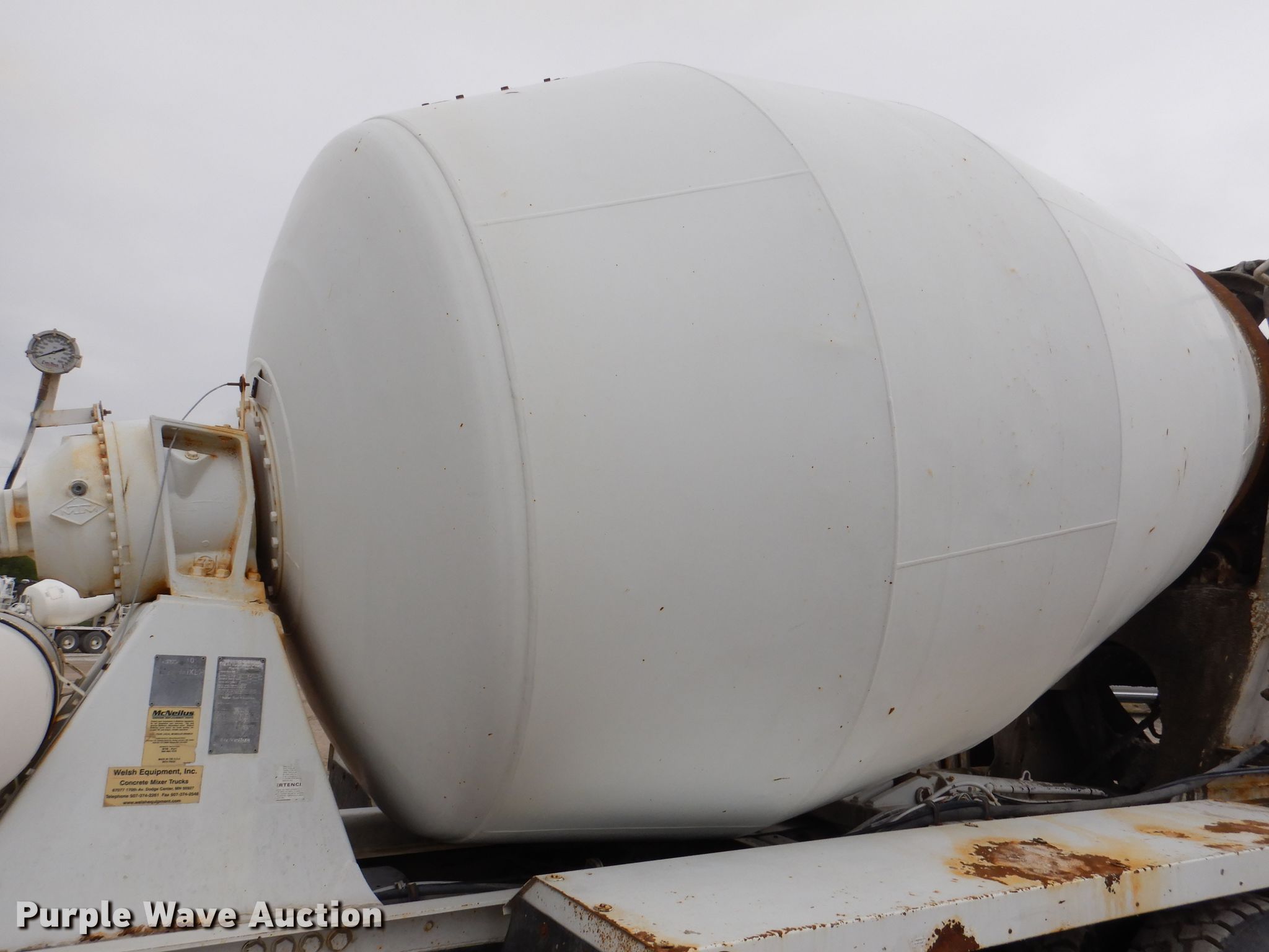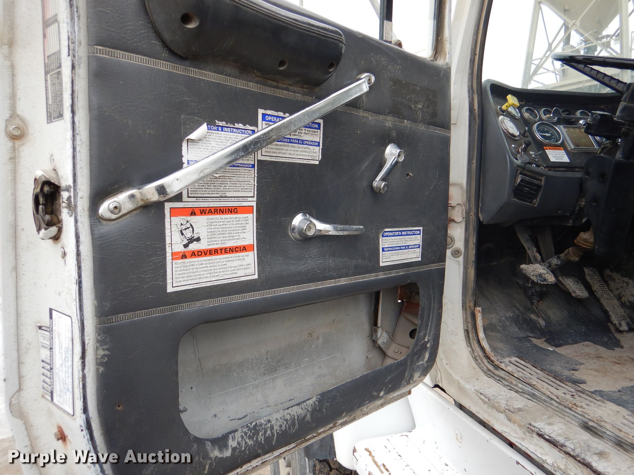 1994 Ford L9000 ready mix truck. 330,894 miles on odometer. Engine Cummins L10-300, Serial: 34708879, Displacement: 10L, Cylinders: 6, Fuel type: Diesel, HP: 300. Transmission Manual, Speed: 7. Chassis Axles: Triple, Tag axle Steerable, Differential lock: Inter-axle, Suspension: Walking beam, Brakes: Air, PTO, Wheelbase: 250". Interior Heat. Operational Mixer McNeilus, Serial: 343515178, Capacity: 10.5 cu.yd., Discharge: Rear, In-cab controls, Rear drum controls, Water tank capacity: 150 gallons, Chute Extensions: 3, Chute type: Steel.. Tires Front: 425/65R22.5, Rear: 11R22.5. Notes Windshield chipped or cracked. Missouri title. 1FDZU90L1RVA26791. Holt County Ready Mix. Mound City, MO 64470