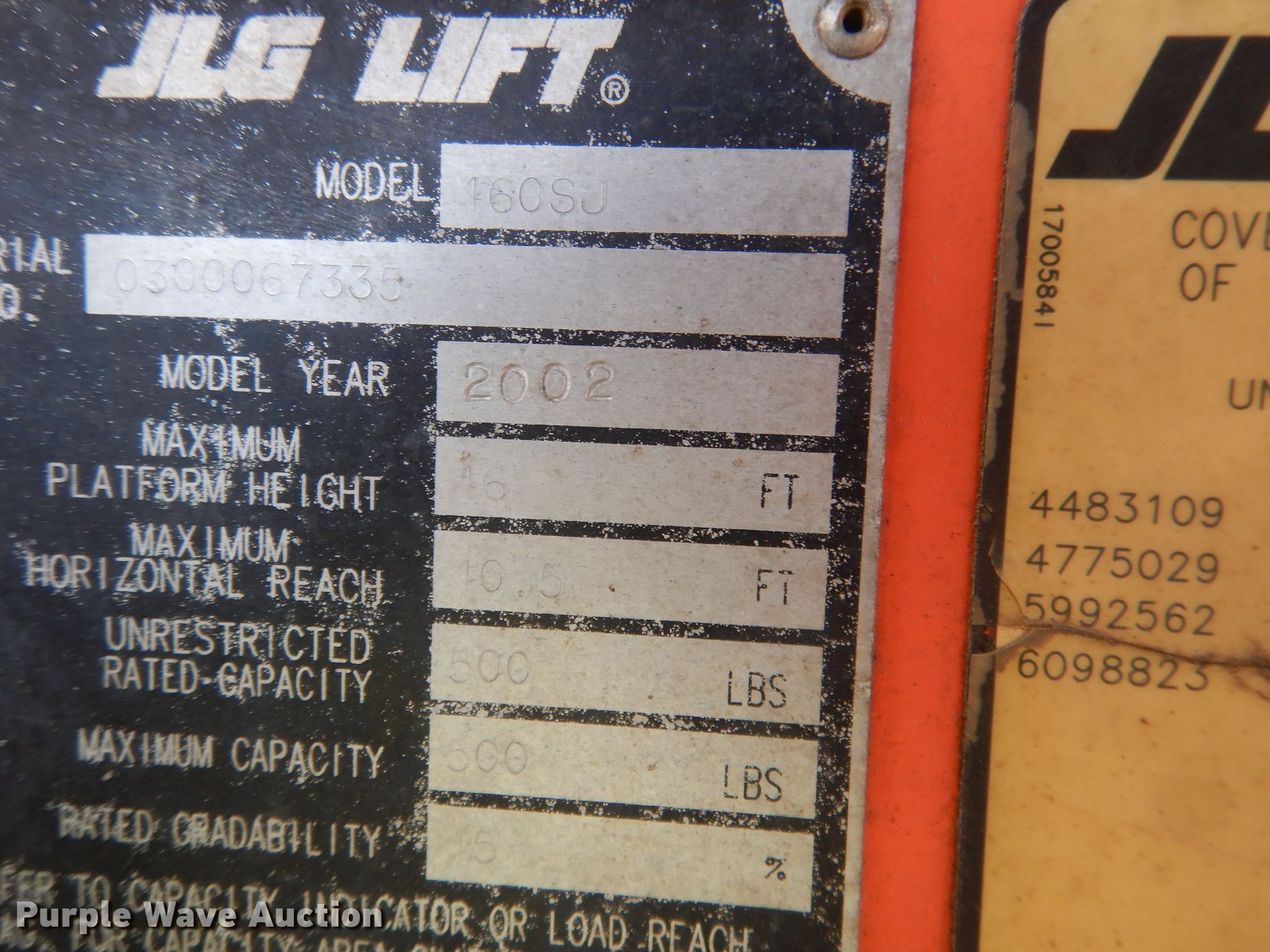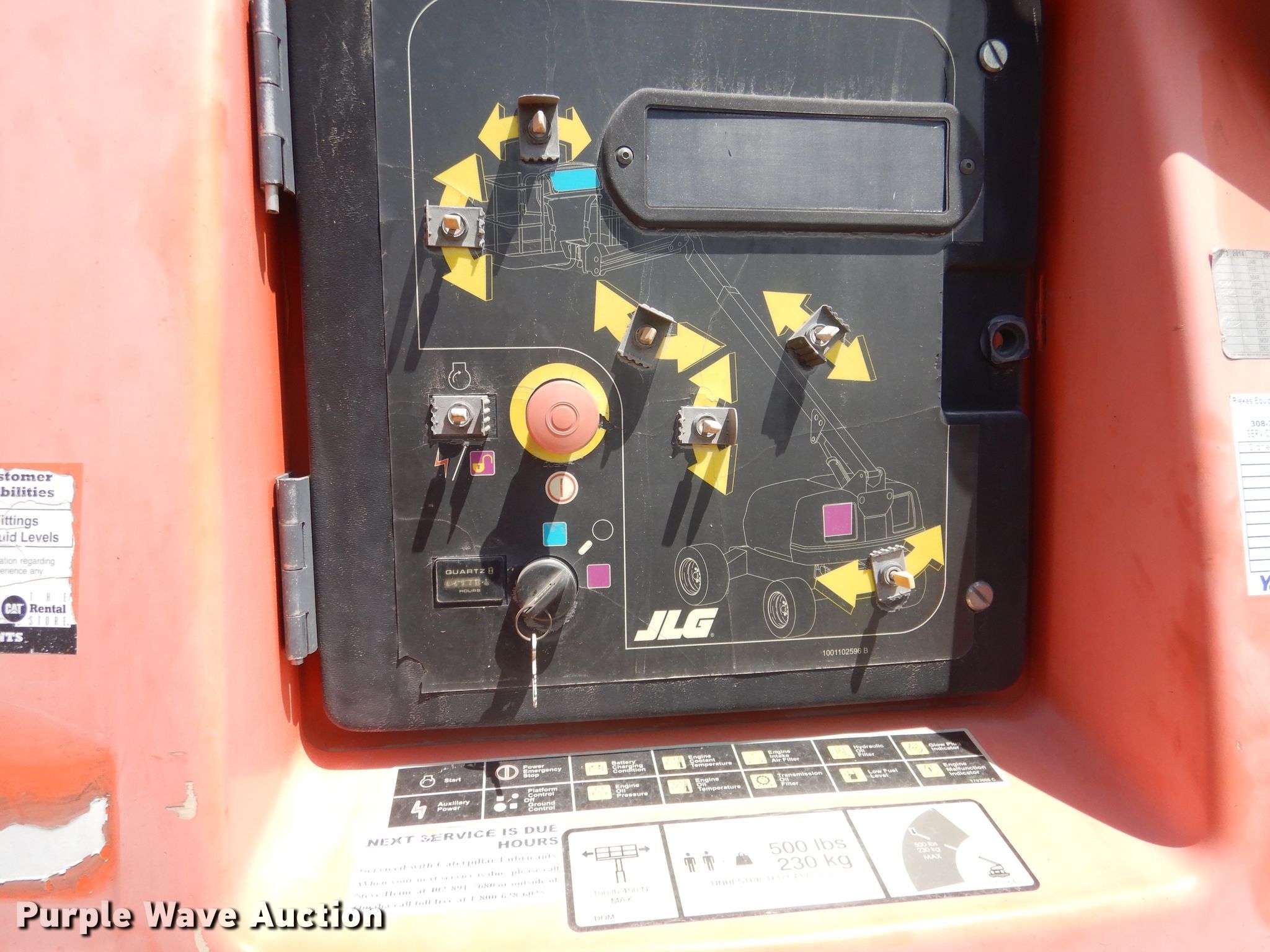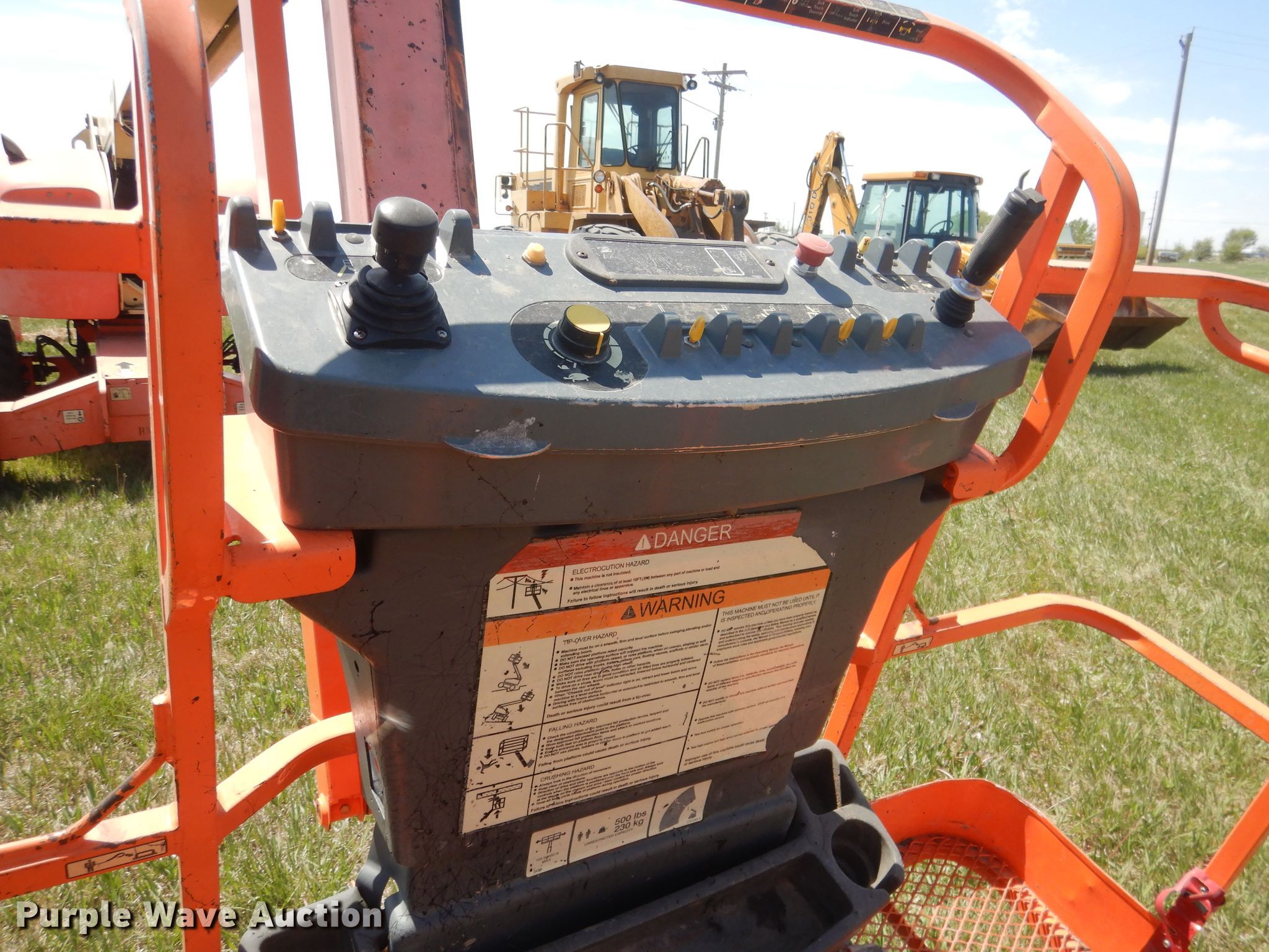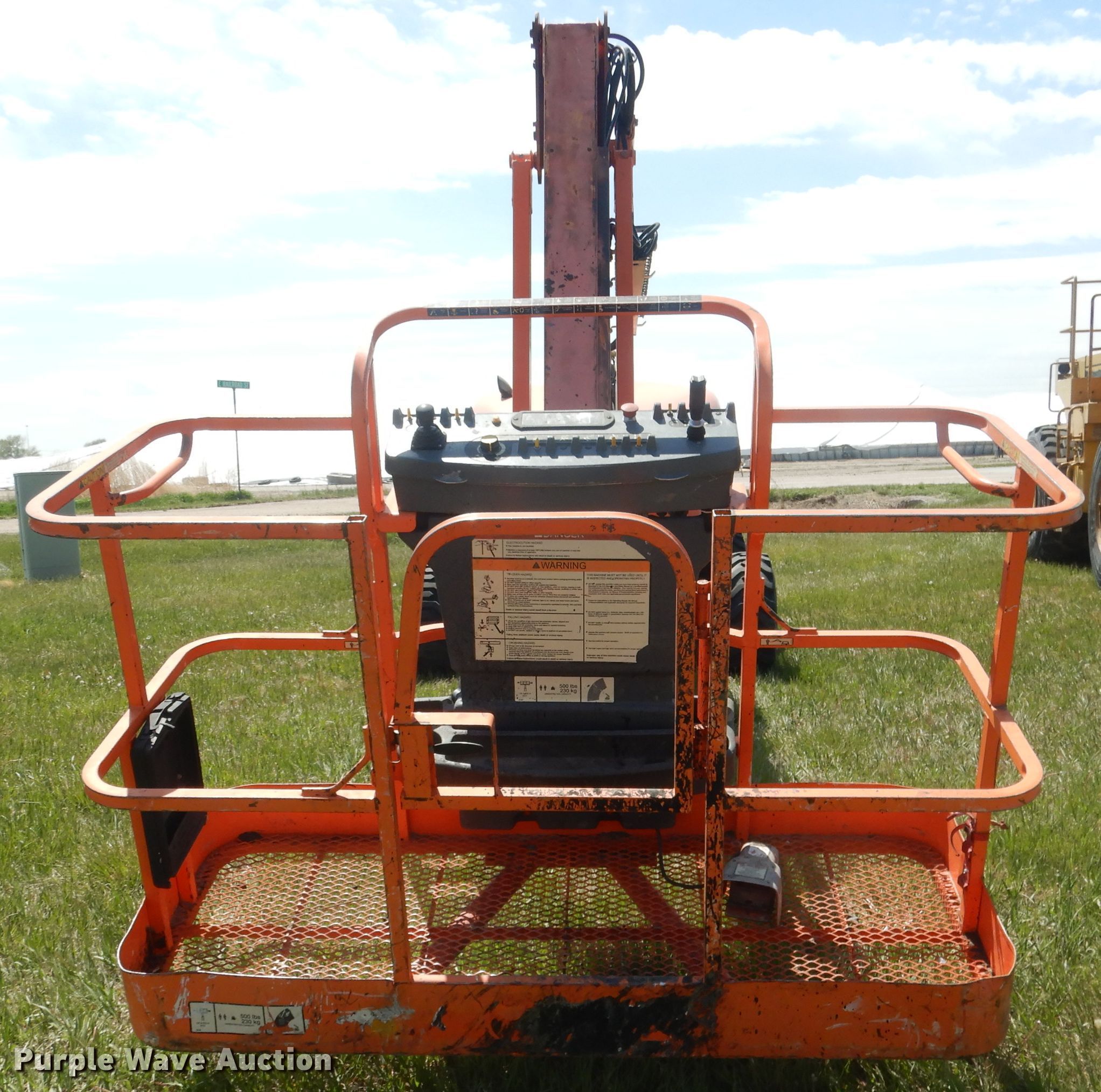 2002 JLG 460SJ boom lift. 4,492 hours on meter, Serial: 0300067335. Engine Cylinders: 4, Fuel type: Diesel. Chassis Four wheel drive. Operational Rough terrain, Maximum lift capacity: 600 lbs, Maximum reach length: 10.5', Maximum lift height: 16', Hydraulic leveling, Platform: 72" L x 30" W, AC power outlet, Controls: Platform, Ground, Platform extensions: Powered, Platform rotation: Hydraulic. Tires Tire size: 12-16.5. Paulsen Inc.. Cozad, NE 69130