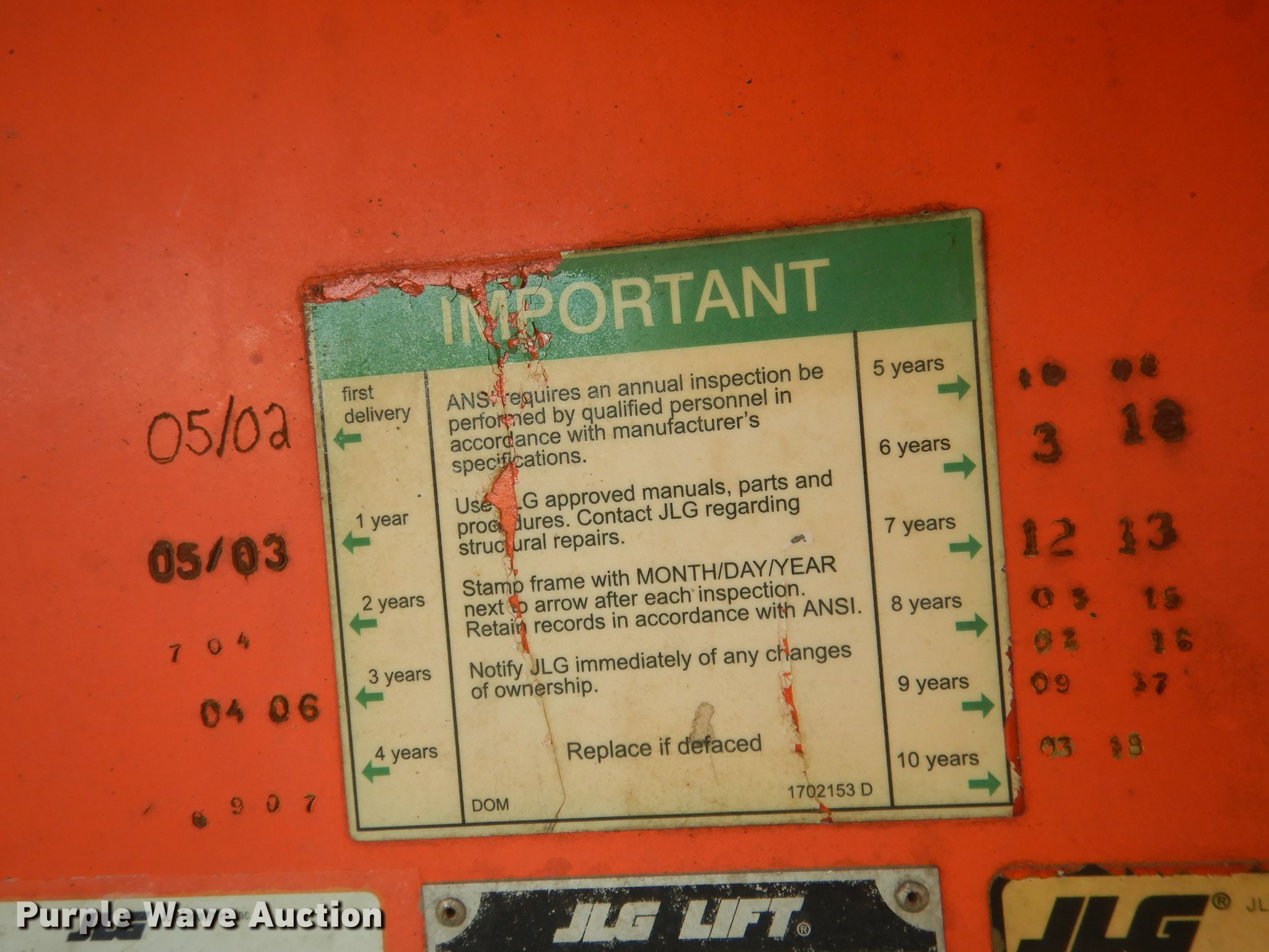 Purple Wave is selling a used Boom Lift in Nebraska. This item is a 2002 JLG 460SJ boom lift with the following: 4,492 hours on meter, Serial: 0300067335