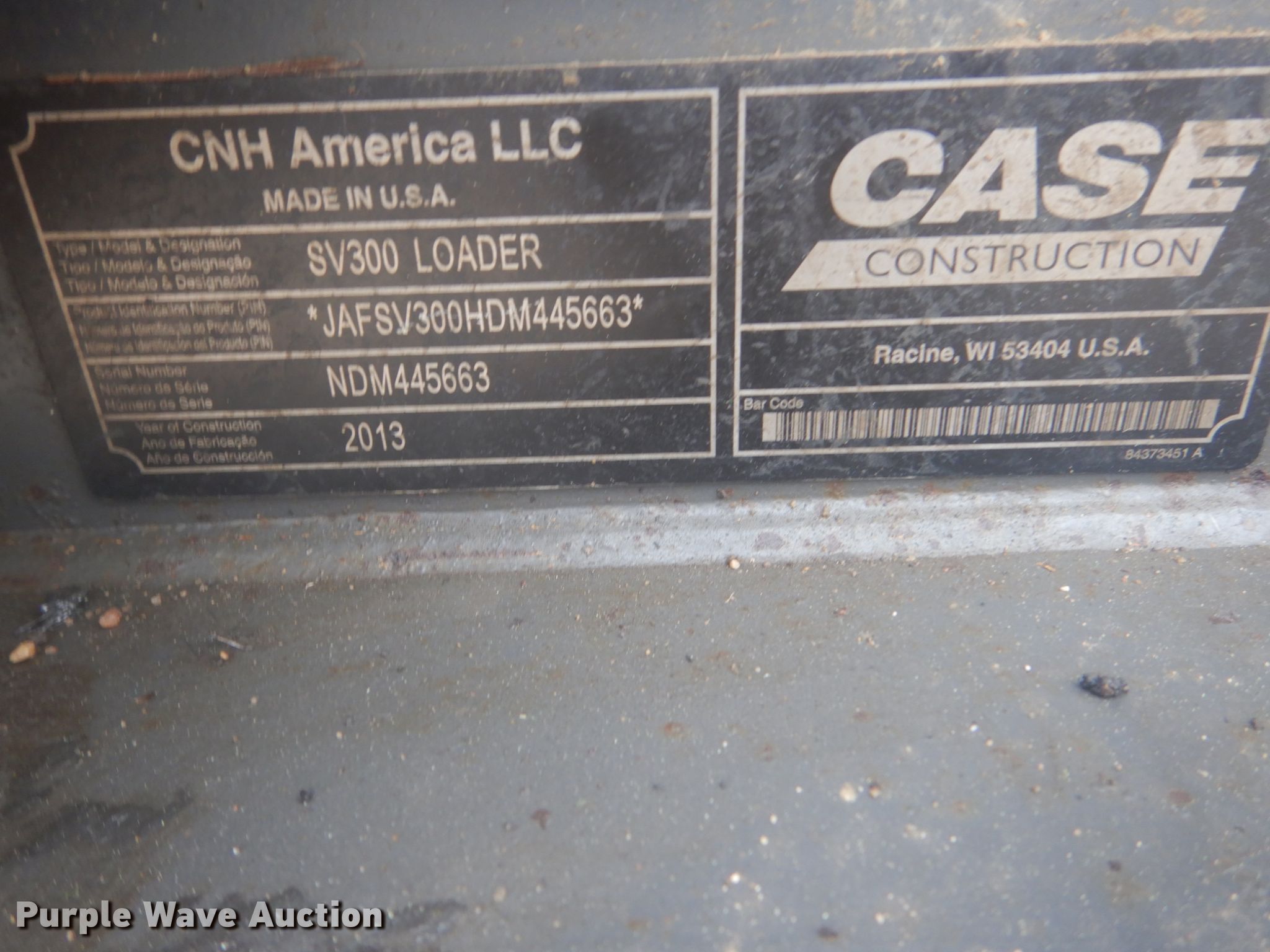 Purple Wave is selling a used Skid Steer Loader in Iowa. This item is a 2013 Case SV300 skid steer loader with the following: 3,004 hours on meter, Serial: NDM445663
