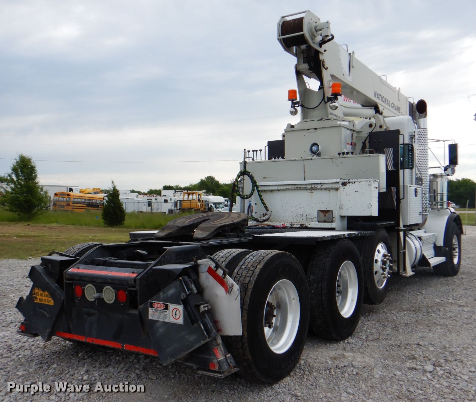 2010 Kenworth T800 crane truck. 495,546 miles on odometer, Engine hours: 13,184. Engine Cummins ISX 15, Serial: 1024775, Displacement: 14.9L, Cylinders: 6, Fuel type: Diesel. Transmission Manual, Speed: 18. Chassis Axles: Triple, Pusher axle, Suspension: Air, Brakes: Air, PTO, GVWR: 78,350 lbs FAWR: 20,000 lbs, IAWR: 12,350 lbs, RAWR: 23,000 lbs. Interior AC, Power windows, Power locks, Cruise control, Auxiliary controls. Operational Crane National Crane Corp. 638E2, Boom length: 15', Sections: 3, Maximum lift capacity: 40,000 lbs, Boom controls Ground, Crane block Sheaves: 1, Capacity: 25,000 lbs, Lift chart. Tires Size: 425/65R22.5, Brand: Goodyear. Notes Windshield chipped or cracked. Oklahoma title. 1XKDP4EX3AJ270768. 15801 N 145th Ave.. Collinsville, OK 74021