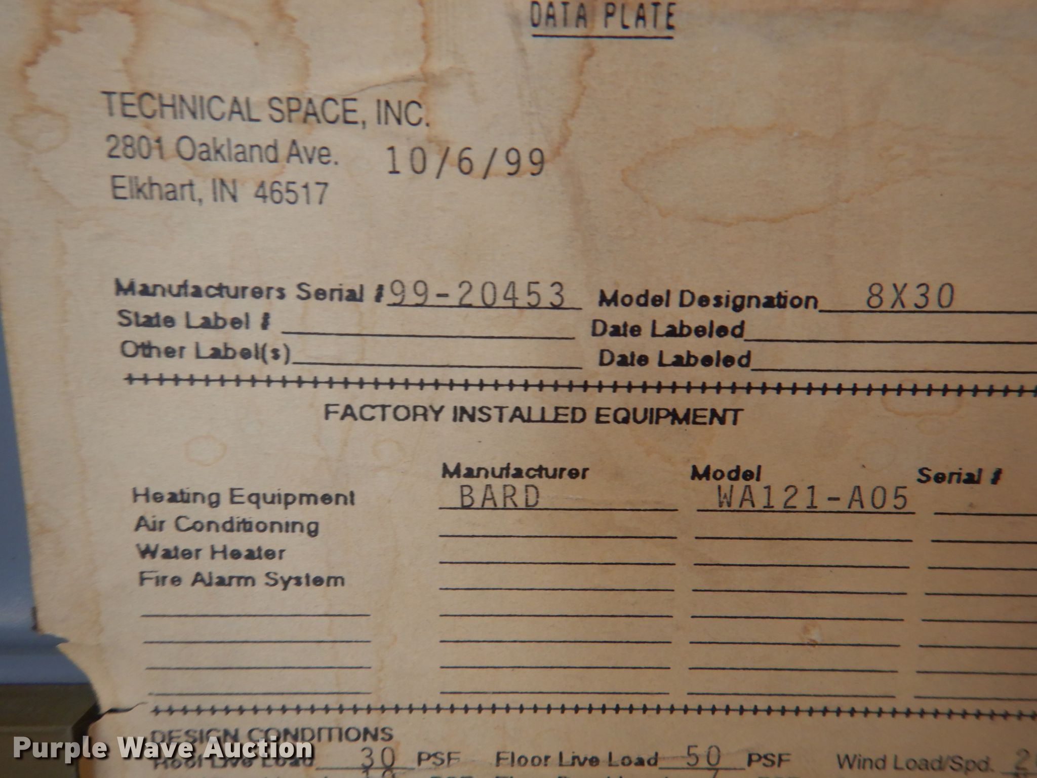 Purple Wave is selling a used Manufactured Home or Office in Missouri. This item is a 1999 Bard WA121-A05 jobsite trailer with the following: 29'3"L overall, 26'L x 96.5"W body, (2) offices, (2) window A/C units, Central heating unit, Spring suspension, 7-14.5 tires, Serial 158J99136985201