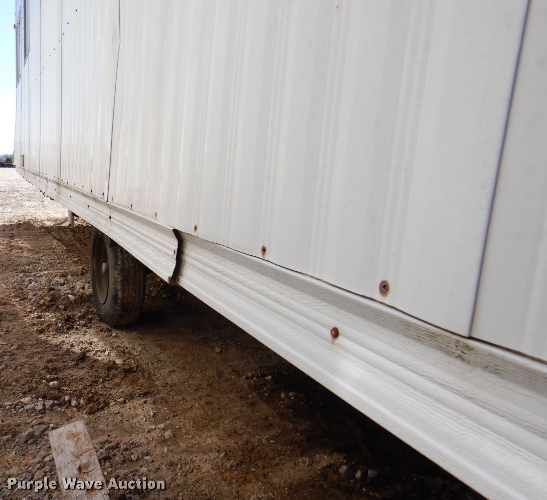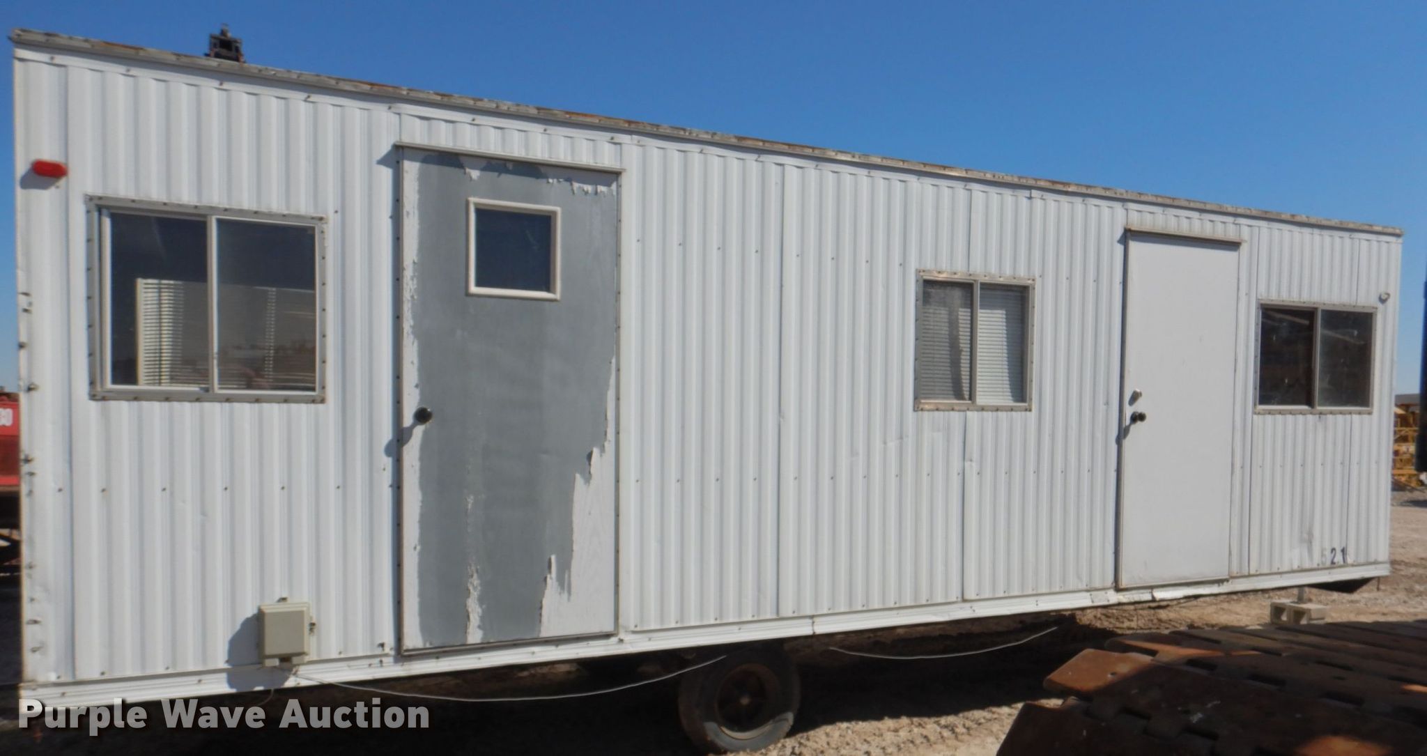 Purple Wave is selling a used Manufactured Home or Office in Missouri. This item is a 1998 Jobsite trailer with the following: 30'L overall, 26'L x 96.5"W body, Central heating unit, Bathroom, Closet, Exterior outlet, Spring suspension, 7-14.5 tires, Window broken, Serial 98817-521