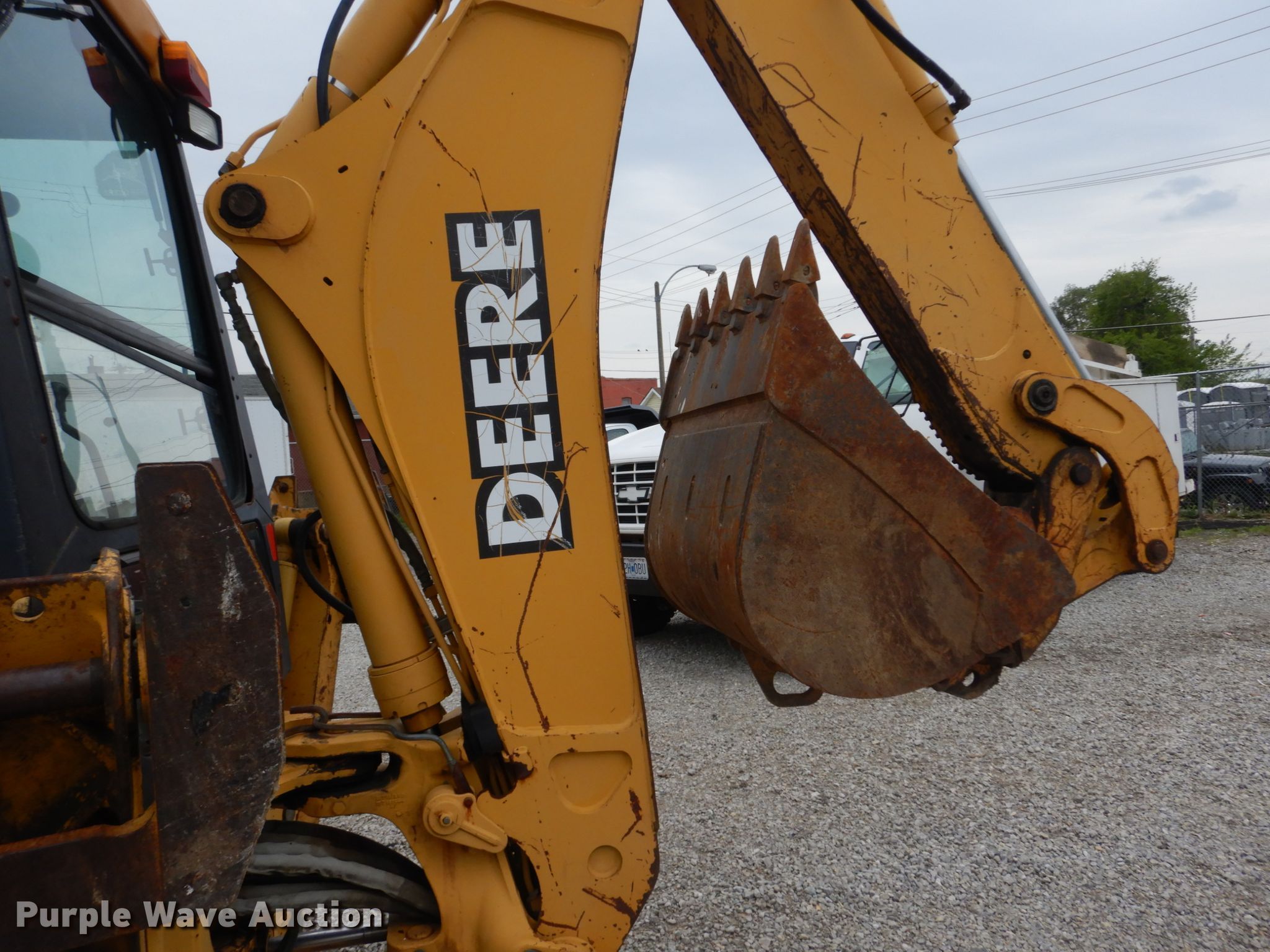 1998 John Deere 310E backhoe. Serial: T0310EX840184. Engine John Deere, Cylinders: 4, Fuel type: Diesel, HP: 78. Transmission Shuttle shift, 4F - 4R. Chassis Four wheel drive, Differential lock. Operators station Enclosed cab, Heat, Backhoe controls: Wobble stick / two stick. Operational Loader Bucket Bucket leveler, Width: 84", Cutting edge: Weld-on, Backhoe Extendable stick, Quick coupler: Manual, Bucket Width: 36", Teeth: 6, Bucket Width: 24", Teeth: 5. Tires Front: 12-16.5, Rear: 19.5L-24. Lulic LLC. Saint Louis, MO 63114