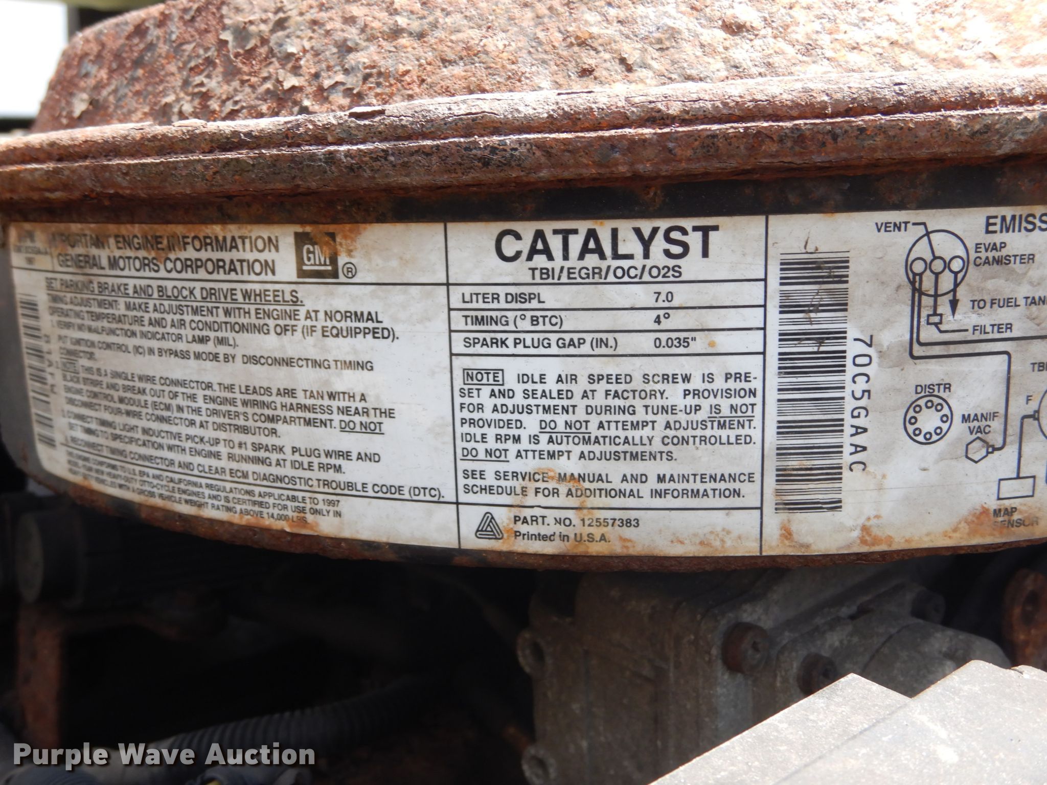 1997 Chevrolet C6500 dump truck. 38,738 miles on odometer. Engine Displacement: 7.0L, Cylinders: 8, Fuel type: Gas. Transmission Automatic. Chassis Axles: Single, Suspension: Spring, Brakes: Hydraulic, PTO, GVWR: 25,380 lbs FAWR: 9,220 lbs, RAWR: 16,160 lbs, Wheelbase: 144". Interior Heat. Operational Dump bed Galion, 9' L x 96" W, Side height: 24", Side board height: 12", Bed type: Steel, Roll tarp, Ram: Single , End gate: Manual. Tires Front: 11R22.5, Rear: 10R22.5. Missouri title. 1GBJ7H1M2VJ115141. BSR Services, Inc.. Maryland Heights, MO 63043