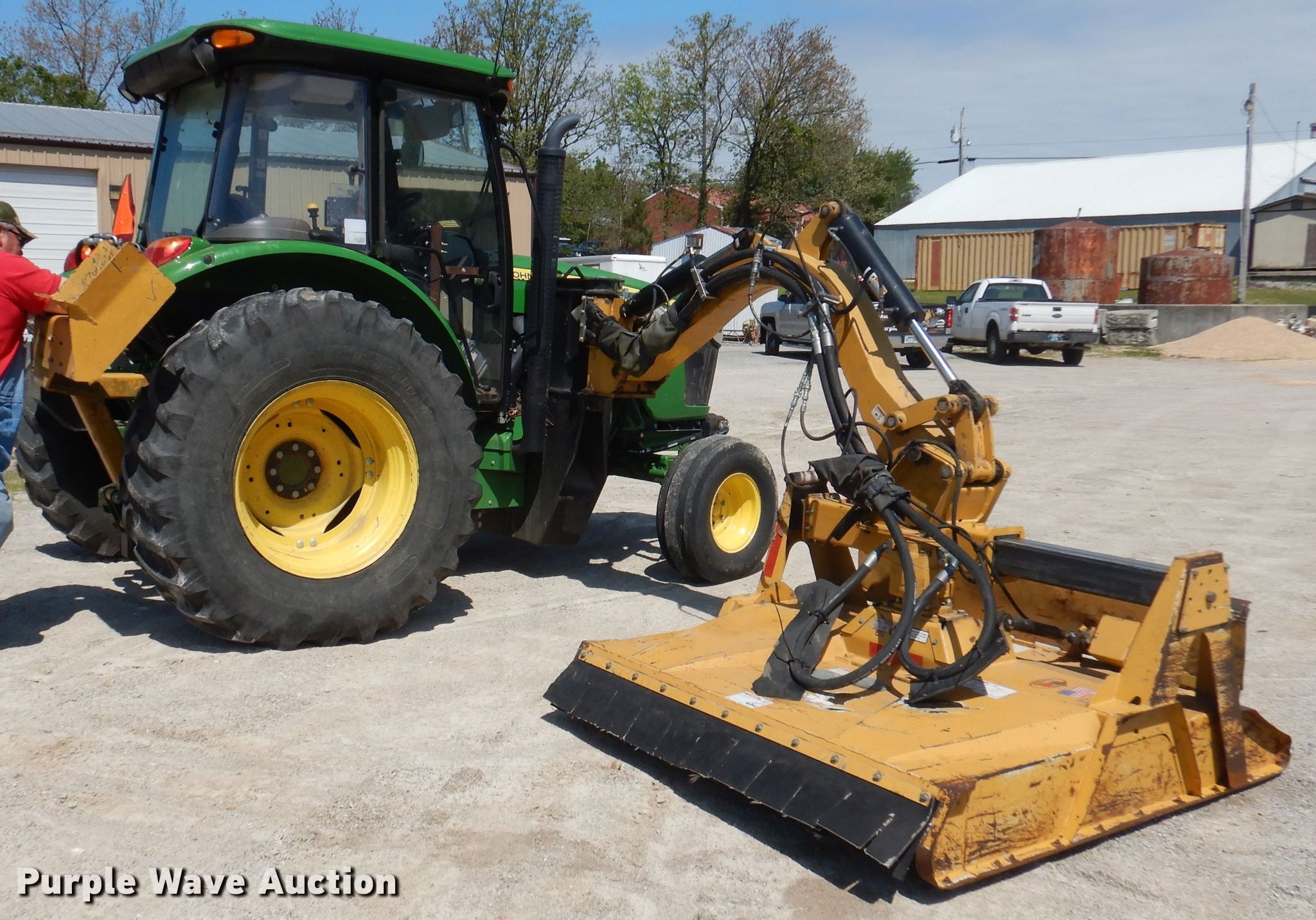 2011 John Deere 5085M tractor. 1,331 hours on meter, Serial: 1LV5085MVGG40034. Engine John deere, Cylinders: 4, Fuel type: Diesel. Transmission Synchro, 16F - 16R. Operators station AC, Heat. Operational PTO: 540, Rear: 2, Loader Controls: Joystick, Tiger side boom rotary mower, Tiger flail mower Serial: TF-3205. Tires Front: 11L-15, Rear: 18.4R30, Wheel weights: 1. Taney County, MO. 20058 Us Hwy 160. Kisse Mills, MO 65680