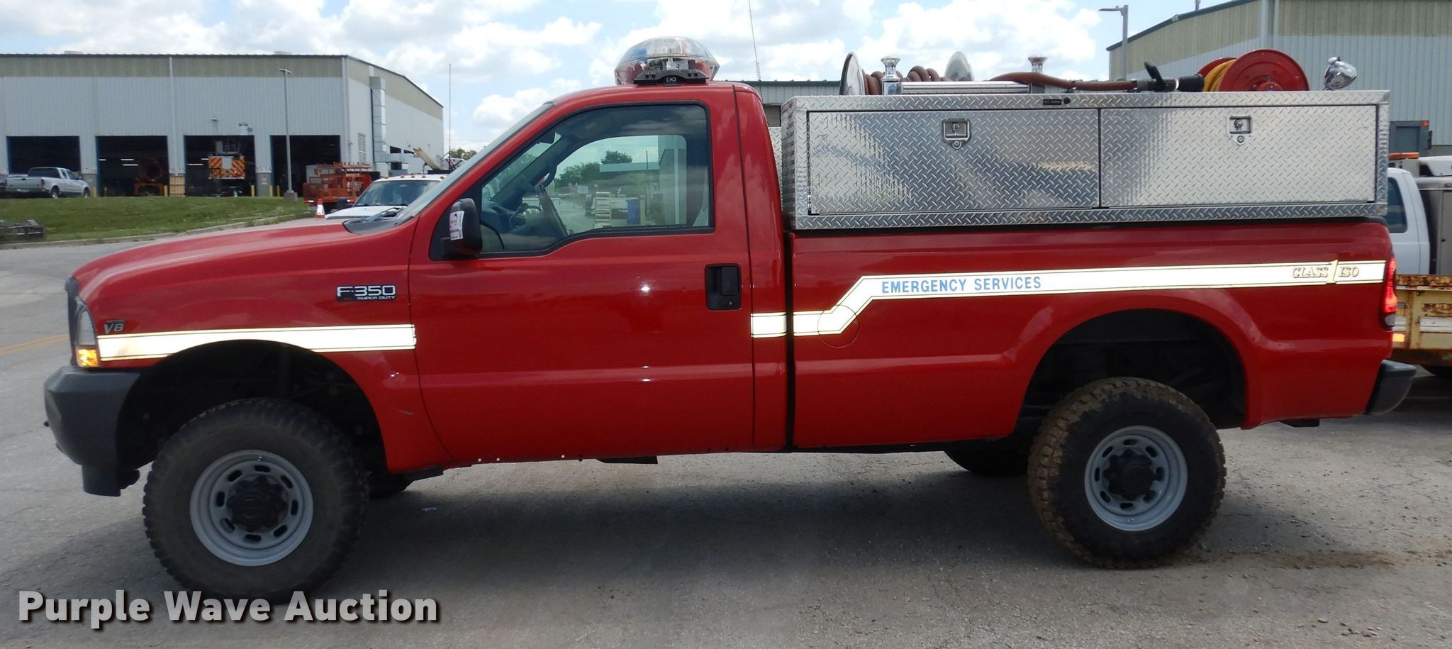 Purple Wave is selling a used Fire Truck or Emergency Vehicle in Kansas. This item is a 2002 Ford F350 Super Duty brush fire truck with the following: 6,603 miles on odometer, Unit #: Brush 57