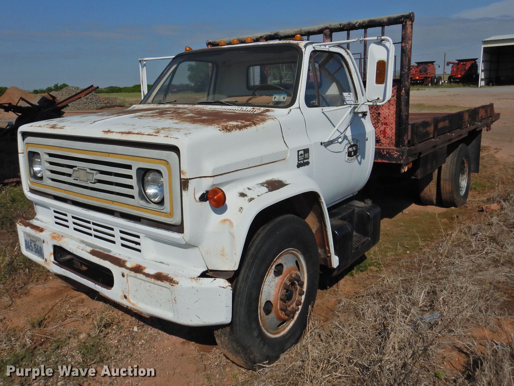 Purple Wave is selling a used Flat Bed Truck in Texas. This item is a 1982 Chevrolet C60 dump flatbed truck with the following: 64,112 miles on odometer