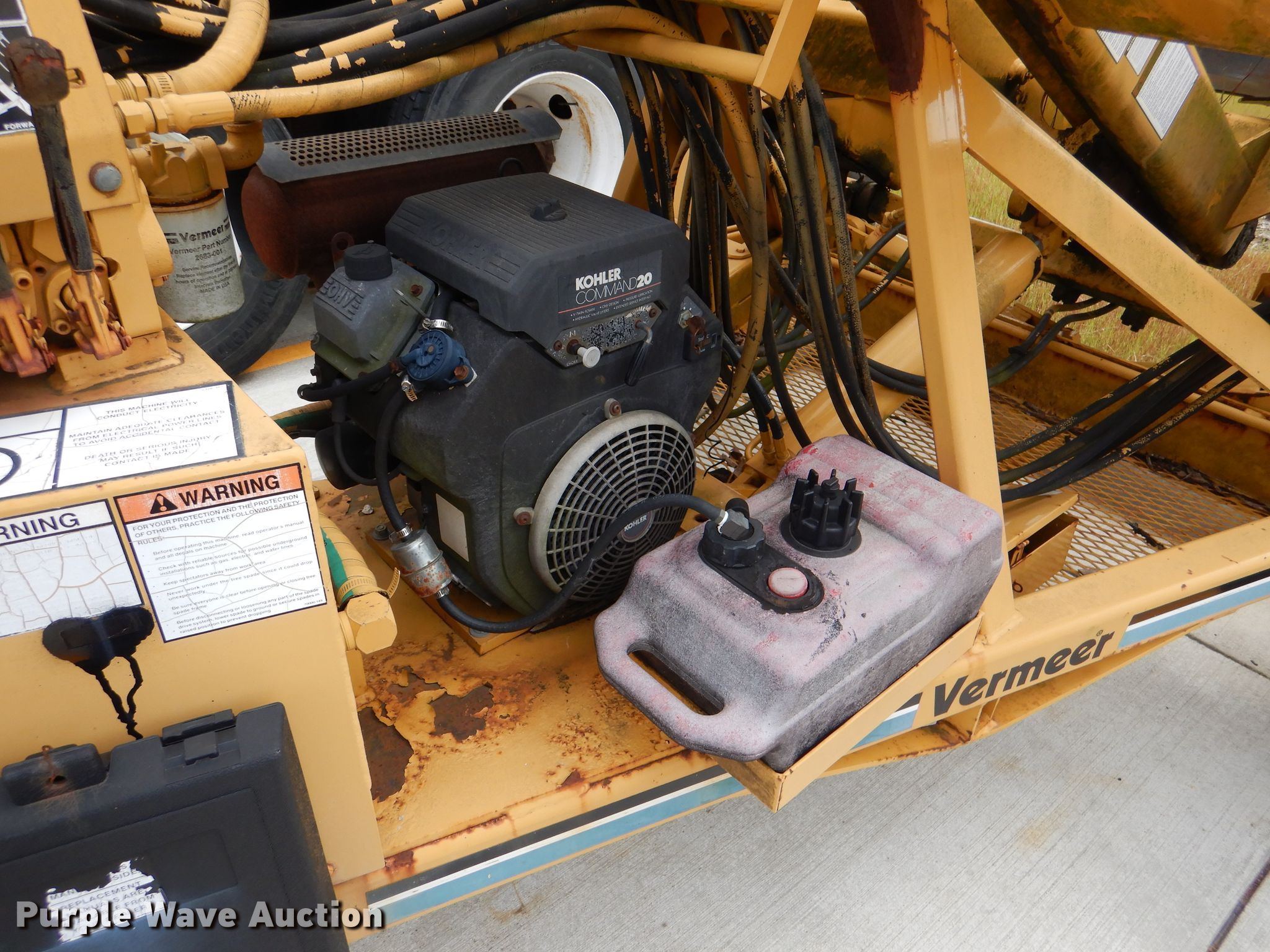 Purple Wave is selling a used Tree Spade in Kansas. This item is a 2000 Vermeer TS44A tree spade with the following: Unit #: 9045, Kohler Command 20 two cylinder gas engine, Pintle hitch, Tire size 12-16.5, Dead battery, Unknown operating condition, Unit #: 9045, Serial 1VRC161P1Y1005285