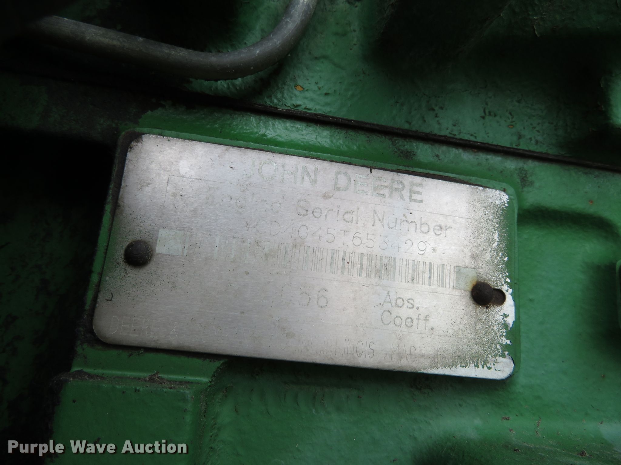 John Deere 6410 tractor. 5,276 hours on meter, Serial: L06410H317354. Engine John Deere 4045T, Serial: CD4045T653429, Displacement: 404, Cylinders: 4, Fuel type: Diesel. Transmission Synchro, 12F - 4R, Differential lock. Operators station AC, Heat. Operational PTO: 540, Seven pin outlet, Hydraulic remote sets Rear: 3. Tires Front: 10.00-16, Rear: 460/85R34, 18.4-34. Notes Hour meter replaced, MODOT ID: 05831. Missouri Department of Transportation (MODOT). 2675 N Main St. Sikeston, MO 63801